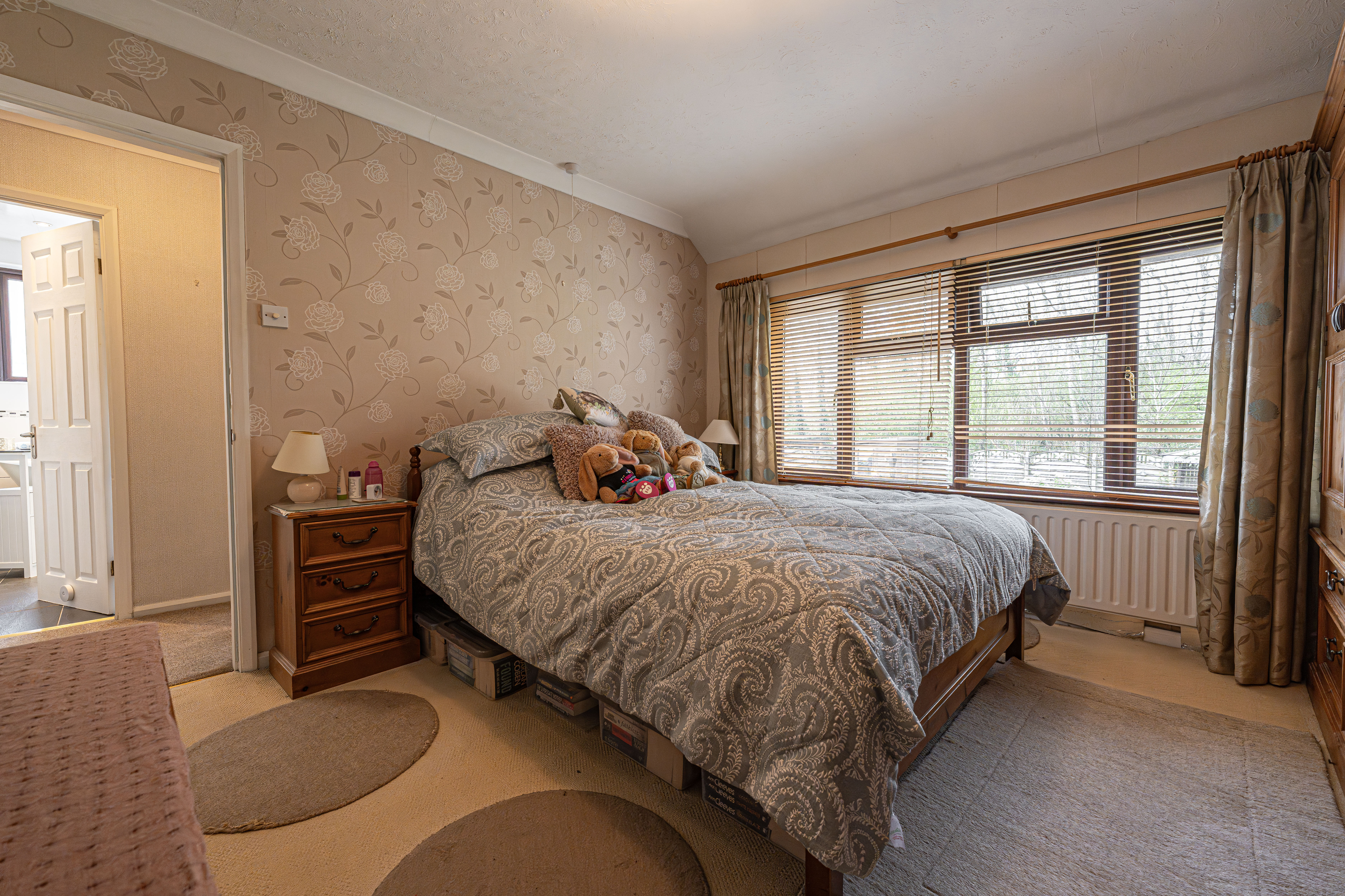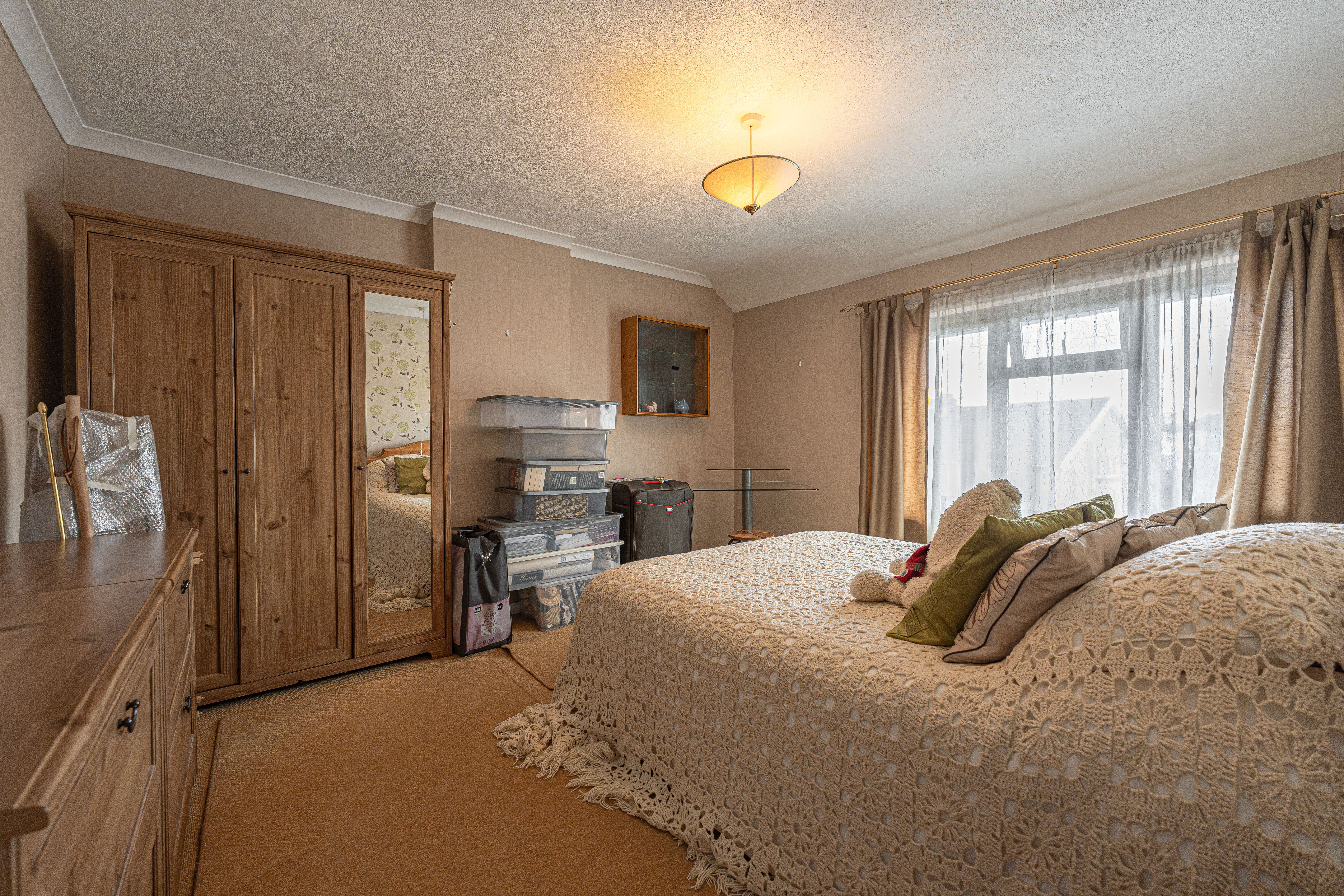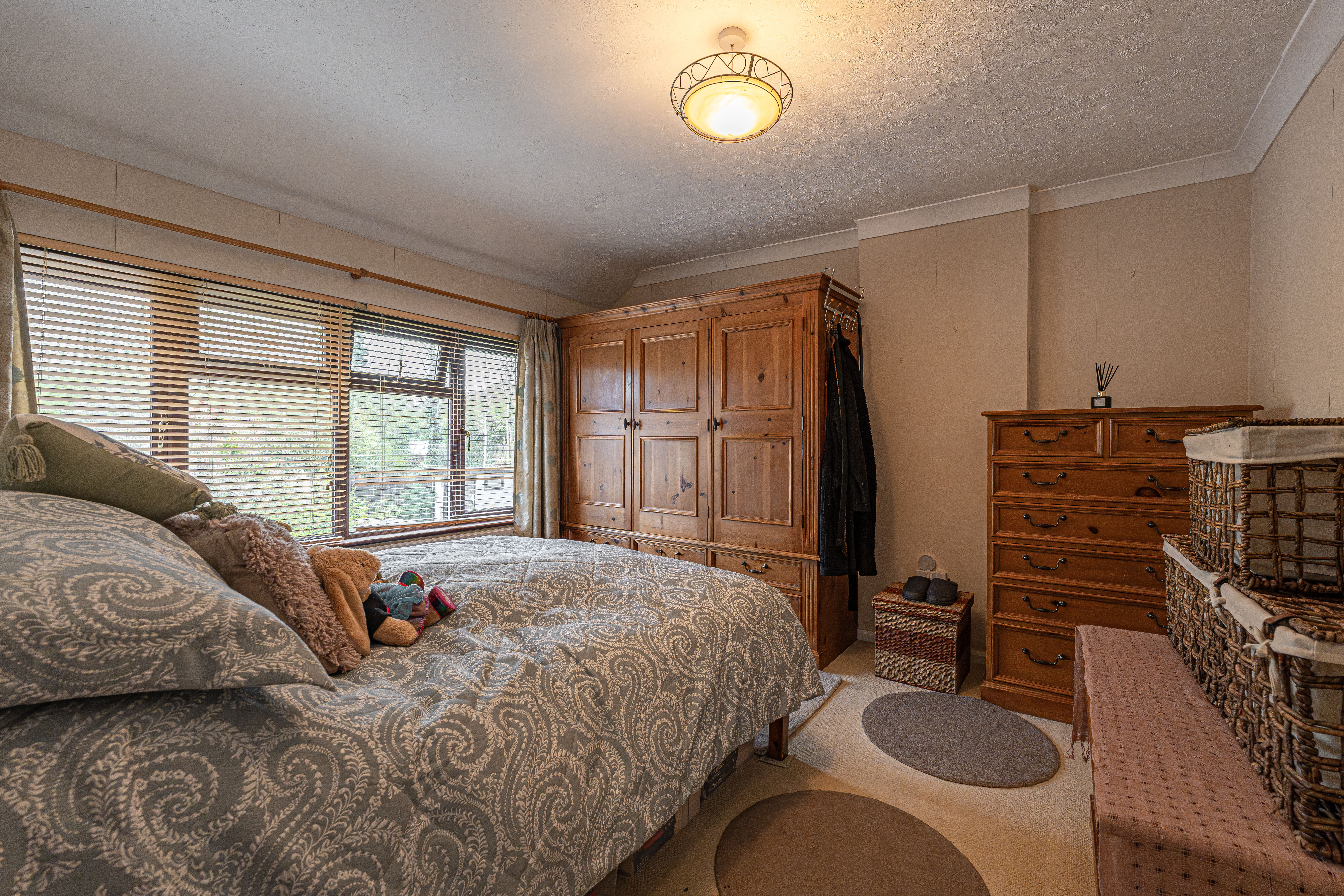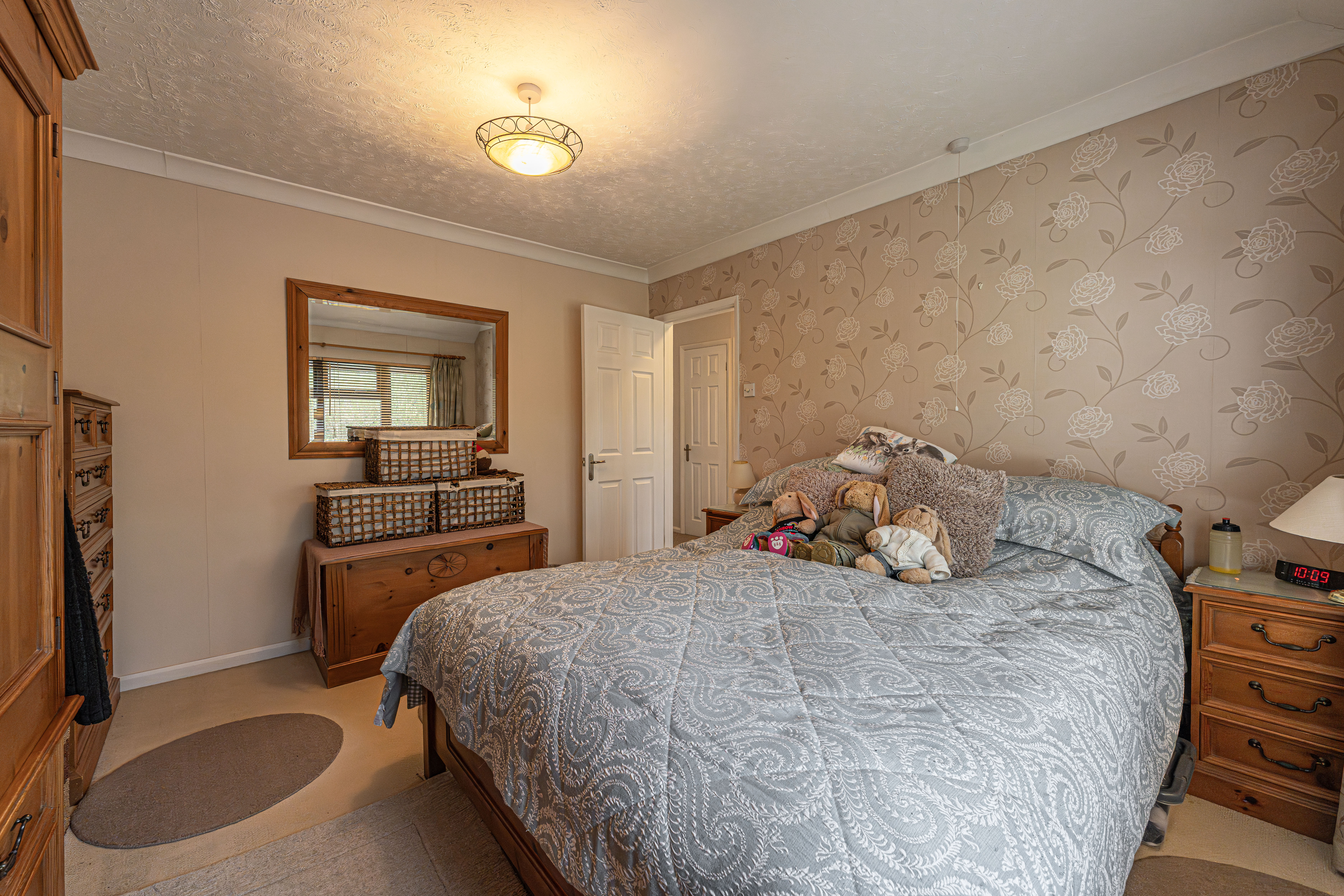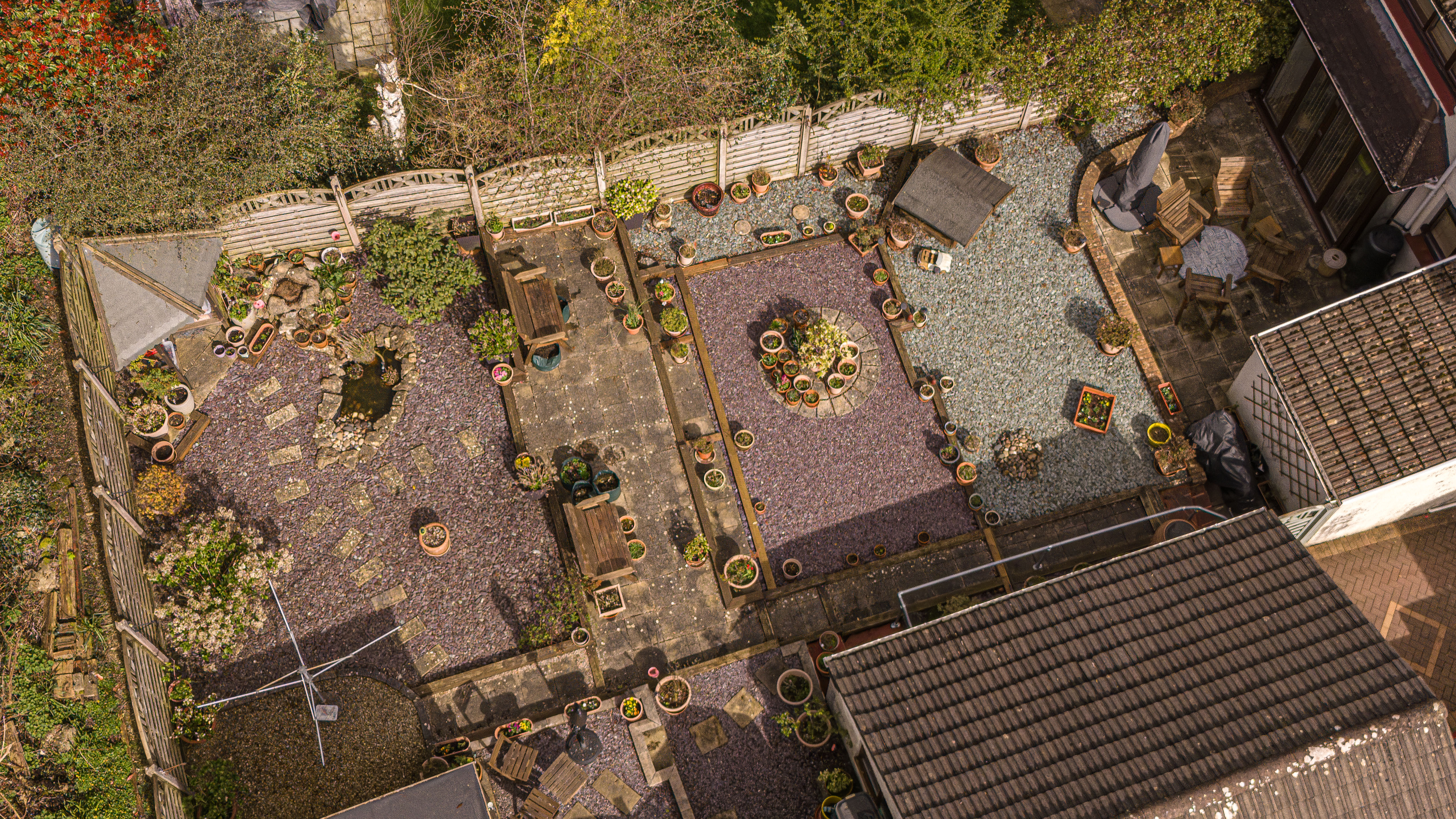 The beautifully landscaped south facing garden sits at the rear of the house, and offers a wide range of space for residents to enjoy. The garden is fully enclosed, and complete with decorative pathways, a pond, and many patio areas ideal for lounging in the sunshine, catching up with friends and family, and dining al-fresco style. A helpful cabin with built in electricity and insulation was erected approximately 4 years ago by a local tradesman and is currently used by the owner as a peaceful environment for relaxing. The detached garage provides added storage and sheltered parking. Additional off-road parking is available with a large driveway to the front and side of the house, offering parking space for at least 3-4 vehicles.