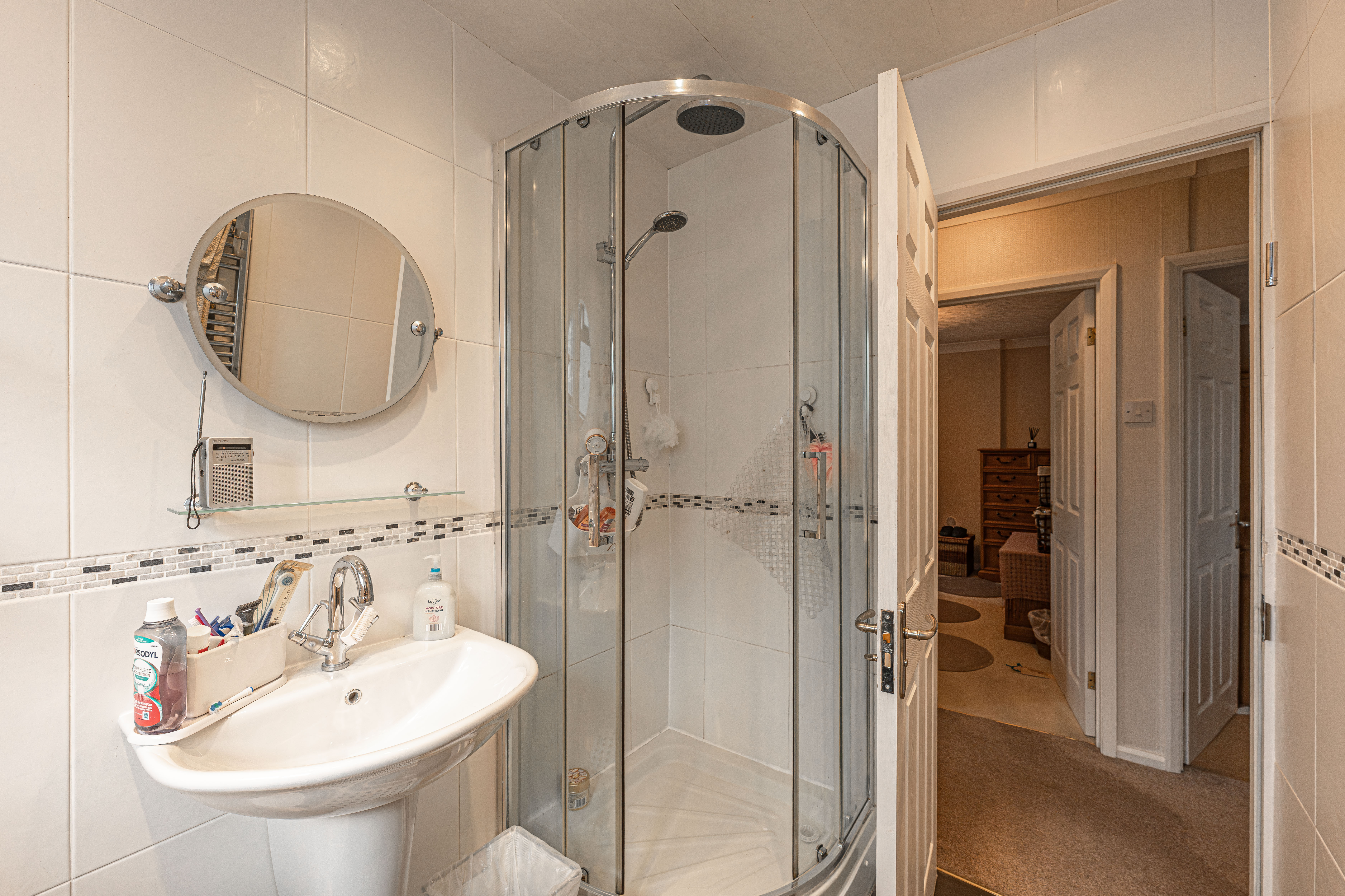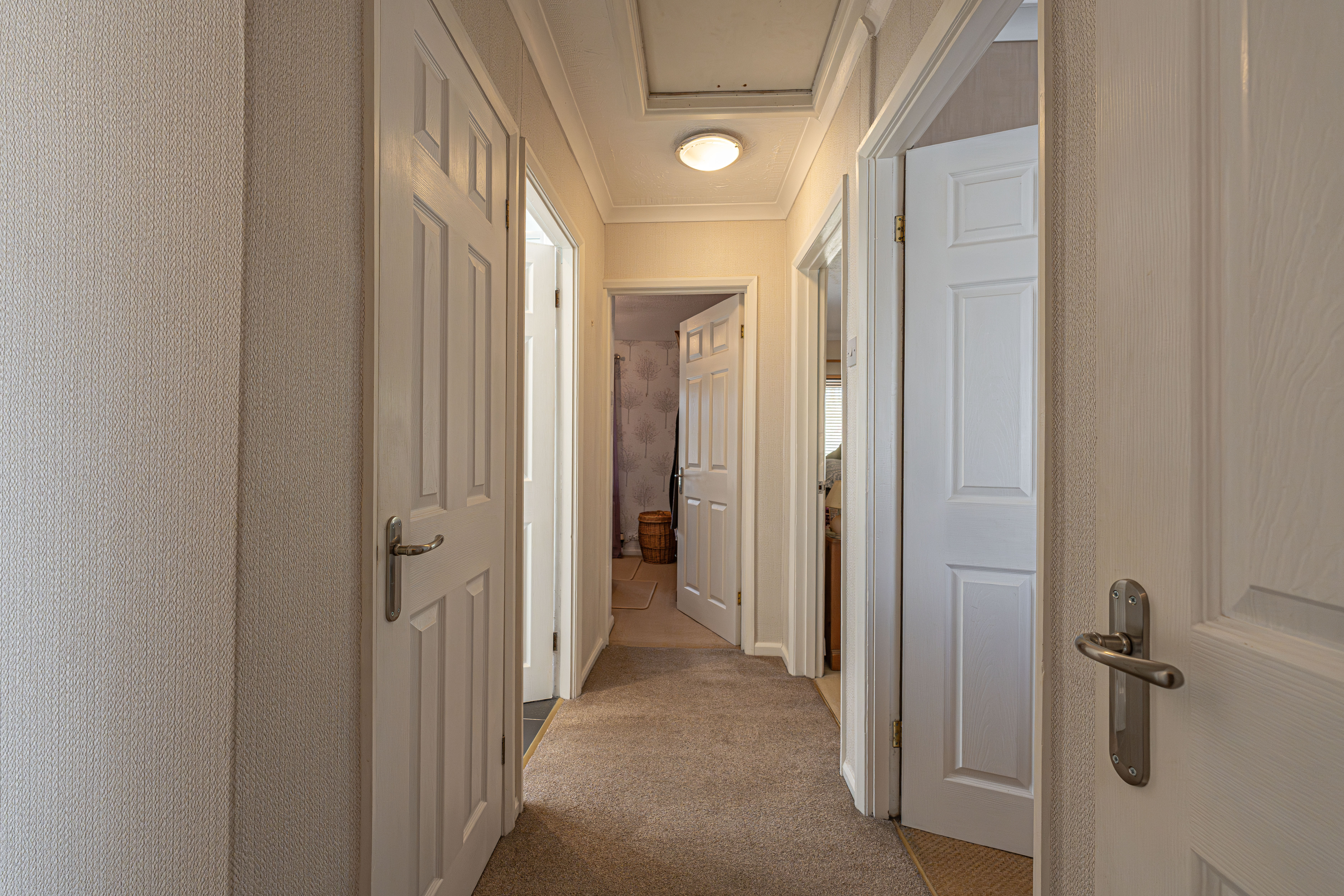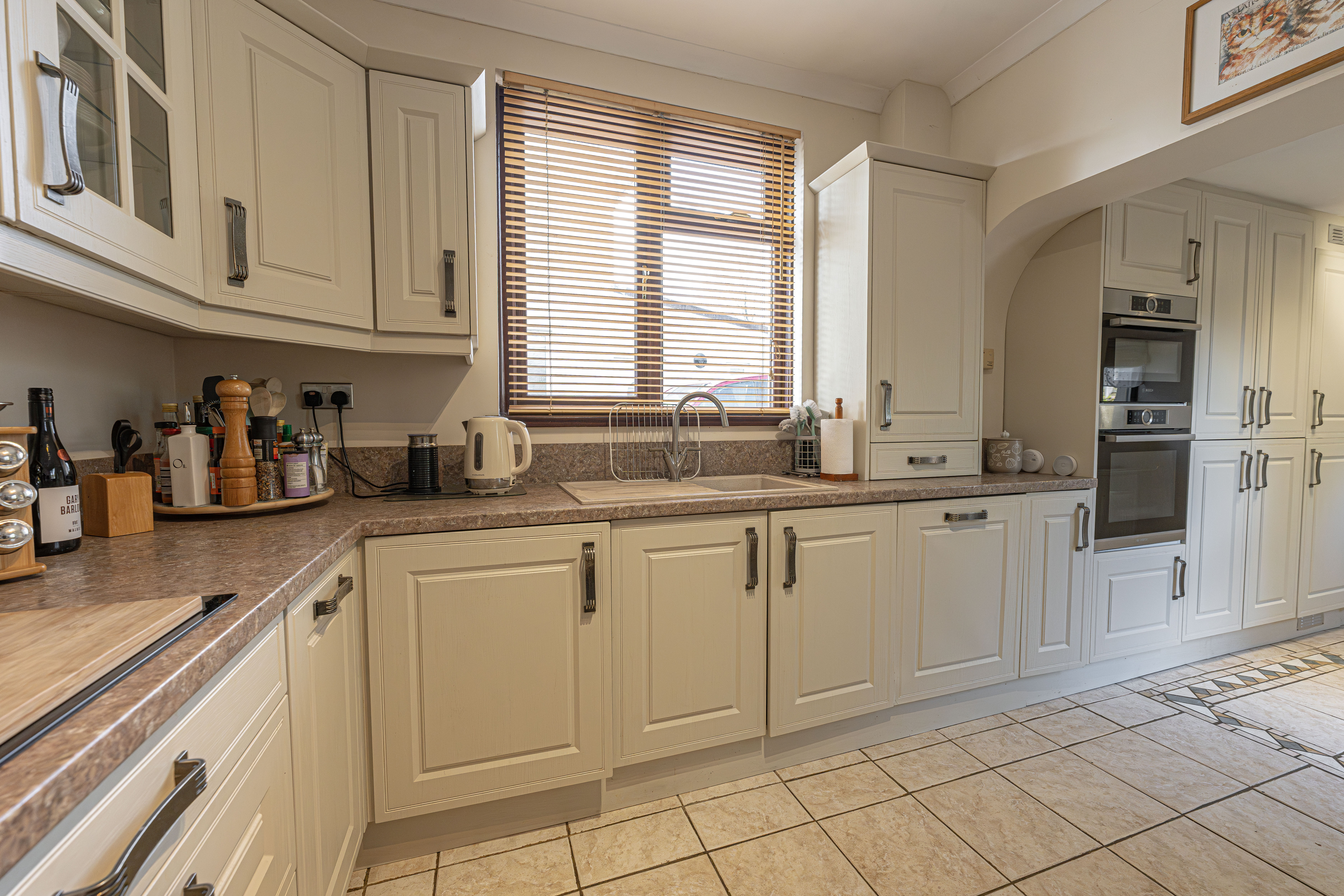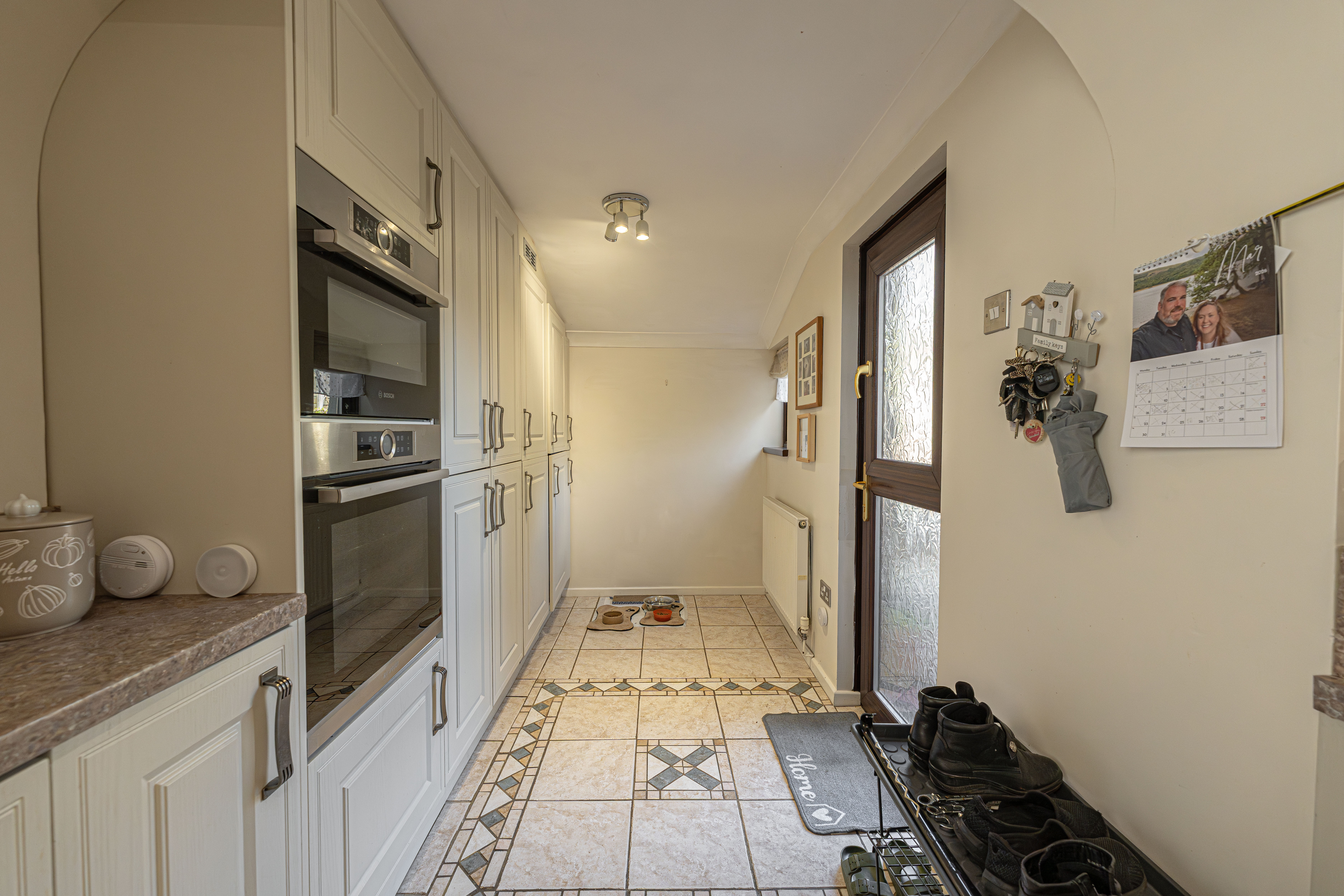 The beautifully landscaped south facing garden sits at the rear of the house, and offers a wide range of space for residents to enjoy. The garden is fully enclosed, and complete with decorative pathways, a pond, and many patio areas ideal for lounging in the sunshine, catching up with friends and family, and dining al-fresco style. A helpful cabin with built in electricity and insulation was erected approximately 4 years ago by a local tradesman and is currently used by the owner as a peaceful environment for relaxing. The detached garage provides added storage and sheltered parking. Additional off-road parking is available with a large driveway to the front and side of the house, offering parking space for at least 3-4 vehicles.