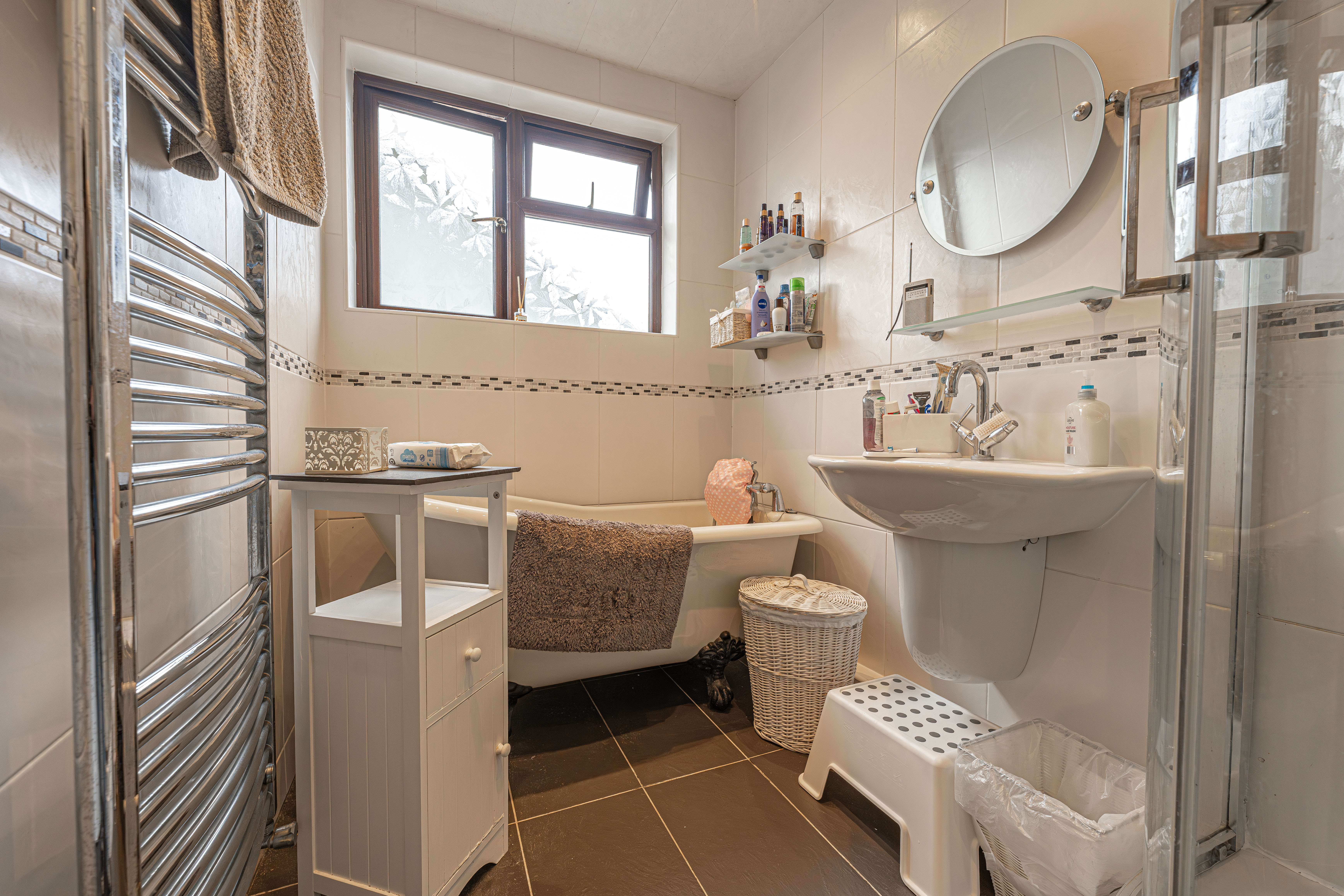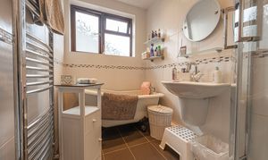To the first floor we can find four well sized bedrooms, three of which are double with the fourth being a cosy single room, ideal for a home office, dressing room or storage. From the hallway we have the family bathroom with a classic clawfoot bathtub and a separate shower unit, and another W.C from the hallway next door.