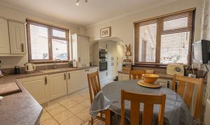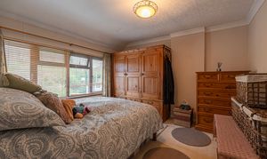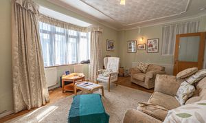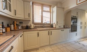 We enter this wonderful family home to the side, which has a W.C from the hallway, and leads into two spacious reception rooms. The main living room is located at the front of the house, and is flooded by light through bay windows, creating a warm and inviting atmosphere for relaxing and entertaining. The second family room features double doors that open directly to the rear garden, and provides versatile space for a further lounge or formal dining room. The kitchen also offers plenty of space for a dining area or breakfast nook, as well as being well equipped with ample storage options and numerous integrated appliances.