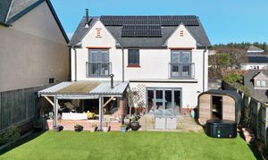 STEP OUTSIDE: As you approach the property along the private road, you immediately get a sense of the space and privacy on offer. The property provides driveway parking for three vehicles, along with a double garage fitted with electric overhead doors and an electric car charging point. Stepping out through the bifold doors to the rear garden, you will find a large patio area with a large electric operated sun awning which is perfect for relaxing in the sun or enjoying outdoor dining. The remainder of the garden is laid to artificial lawn and bordered by fencing and planted pots, creating a low-maintenance outdoor space. Along the side of the property there is an additional area providing space for a washing line, access to the utility room, and a pedestrian door leading into the garage. This area also benefits from an outdoor hot and cold shower, ideal for use after the sauna (Subject to separate negotiation).