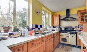 With two windows to the rear elevation, internal door to the garage. Includes Rangemaster cooker with chimney hood over, stainless steel sink and drainer unit, range of wall and base units with work surfaces over, plumbing for washing machine, wine rack, tiled flooring, wall-mounted boiler, and radiator.