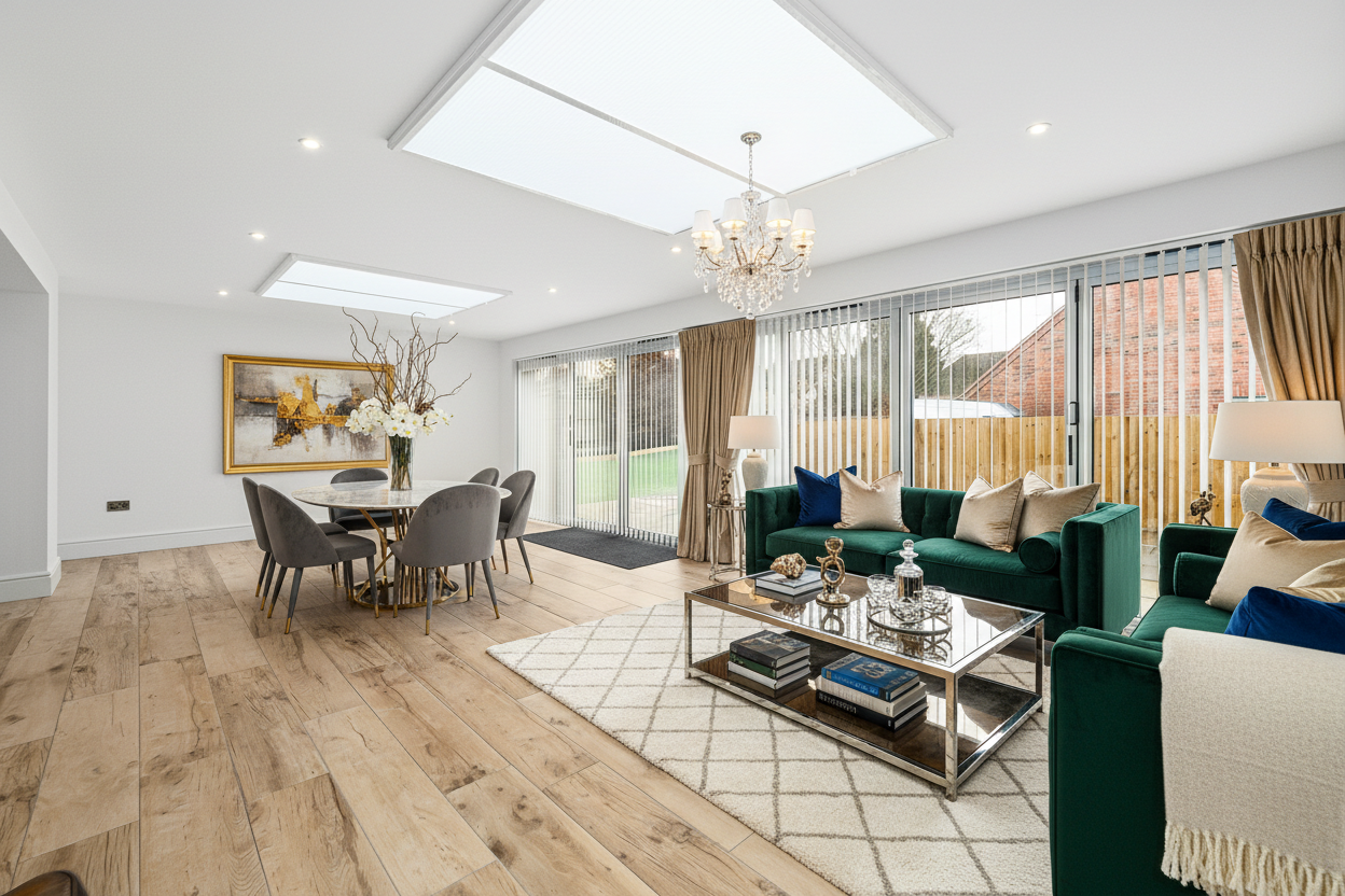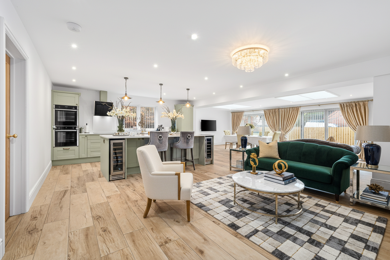 Built by the current homeowners back in 2022, no expense was spared when creating this impressive property with underfloor heating throughout the ground floor. One thing that this home certainly does not lack is open plan living; an impressive statement living / kitchen / dining room offers a space perfect for entertaining and certainly a room that the current homeowners very rarely stray from. A separate living room offers further bi-fold entry onto the rear garden and a room perfect for those evenings in, as well as a further reception space that could be utilised as a formal dining room or study. Also benefitting from a utility housing the warm-air heating system and a w/c.