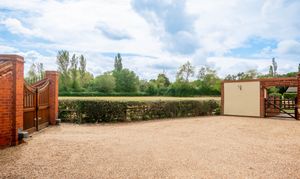 Outside, the west-facing garden extends approximately 150ft and provides a quiet and private space to enjoy, whether that’s relaxing in the sun, dining outdoors, or watching children play. To the front, electric gates open onto a large driveway with parking for 6+ cars, along with additional storage options and potential for garaging.