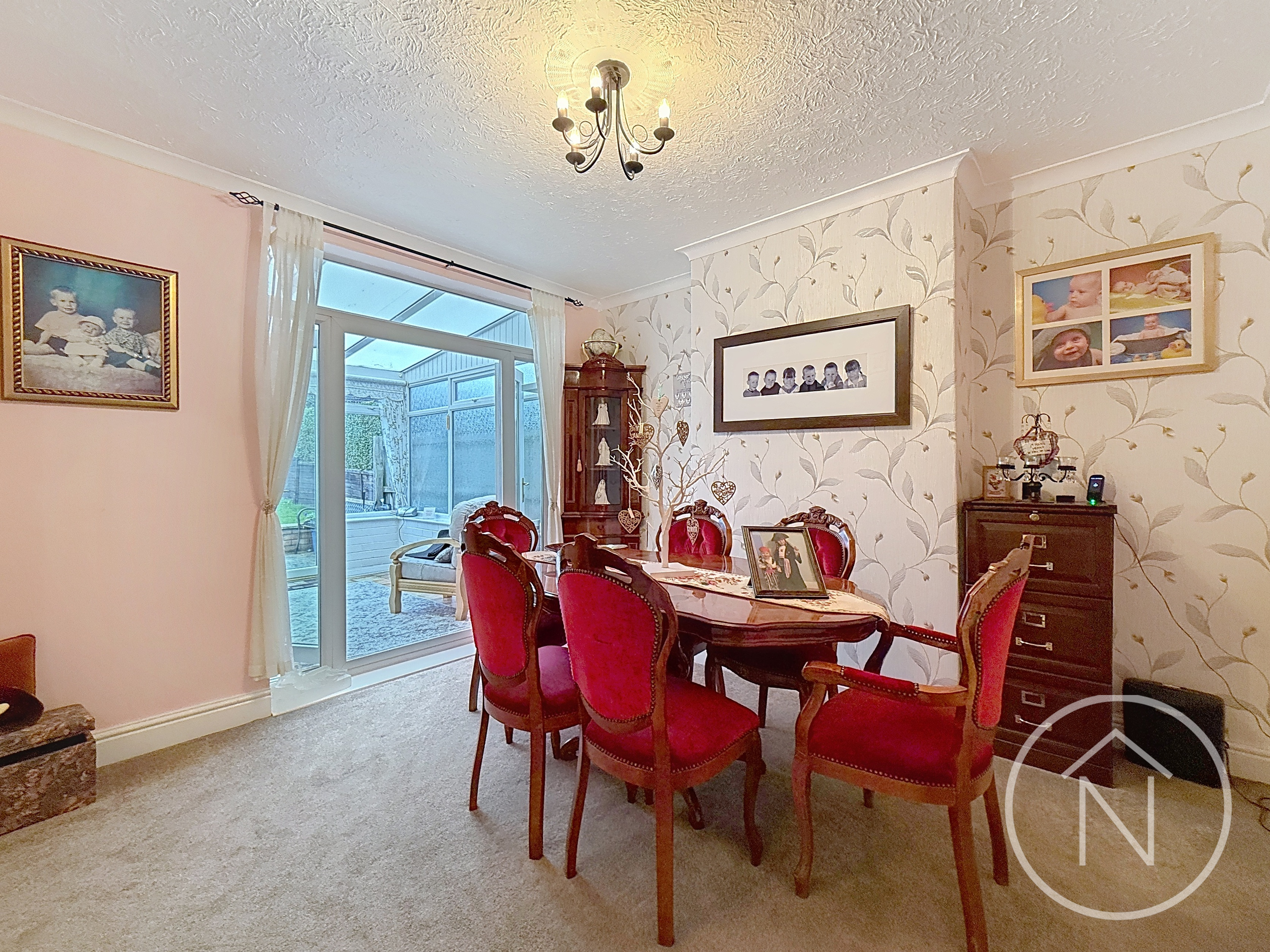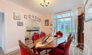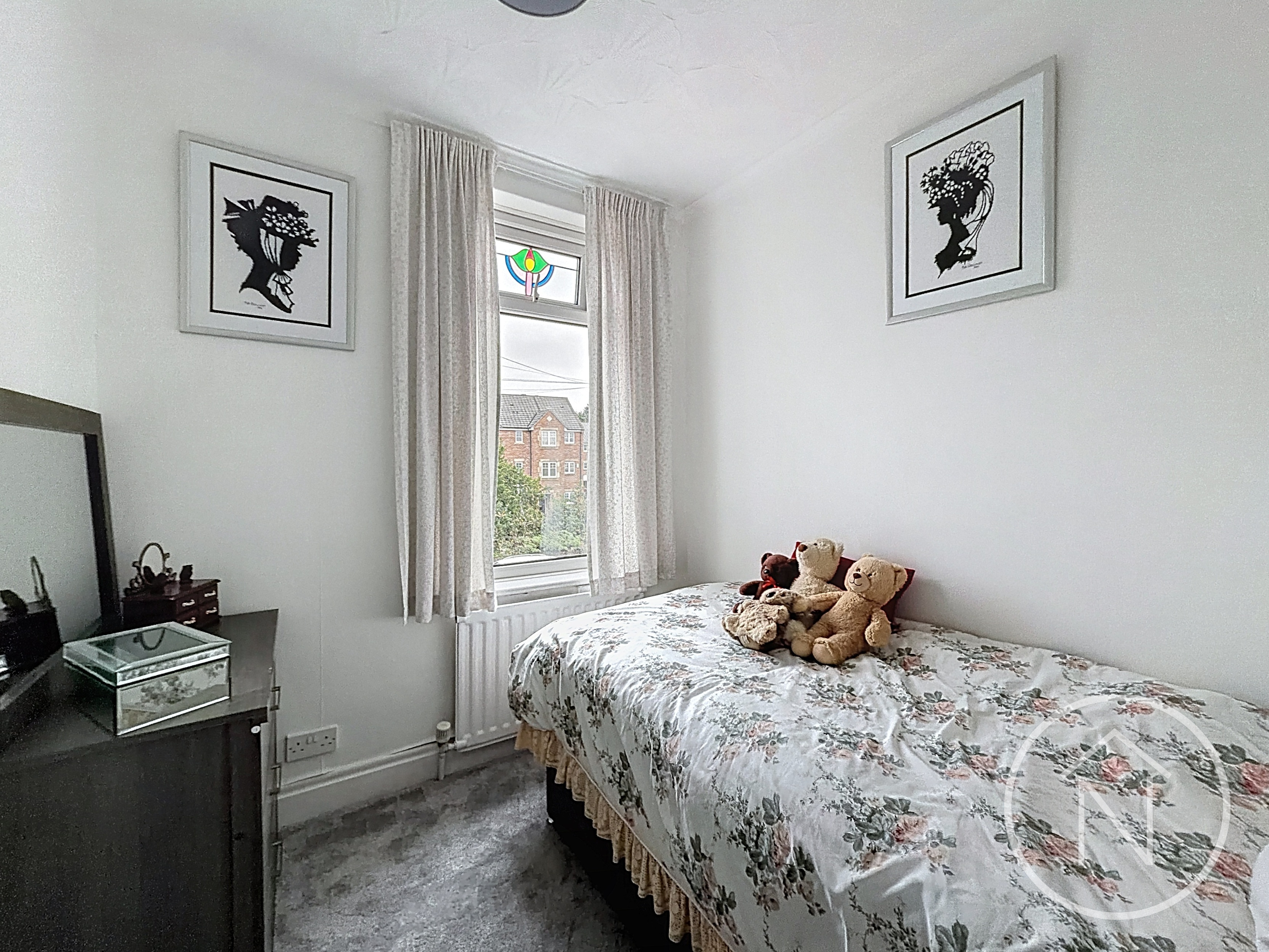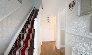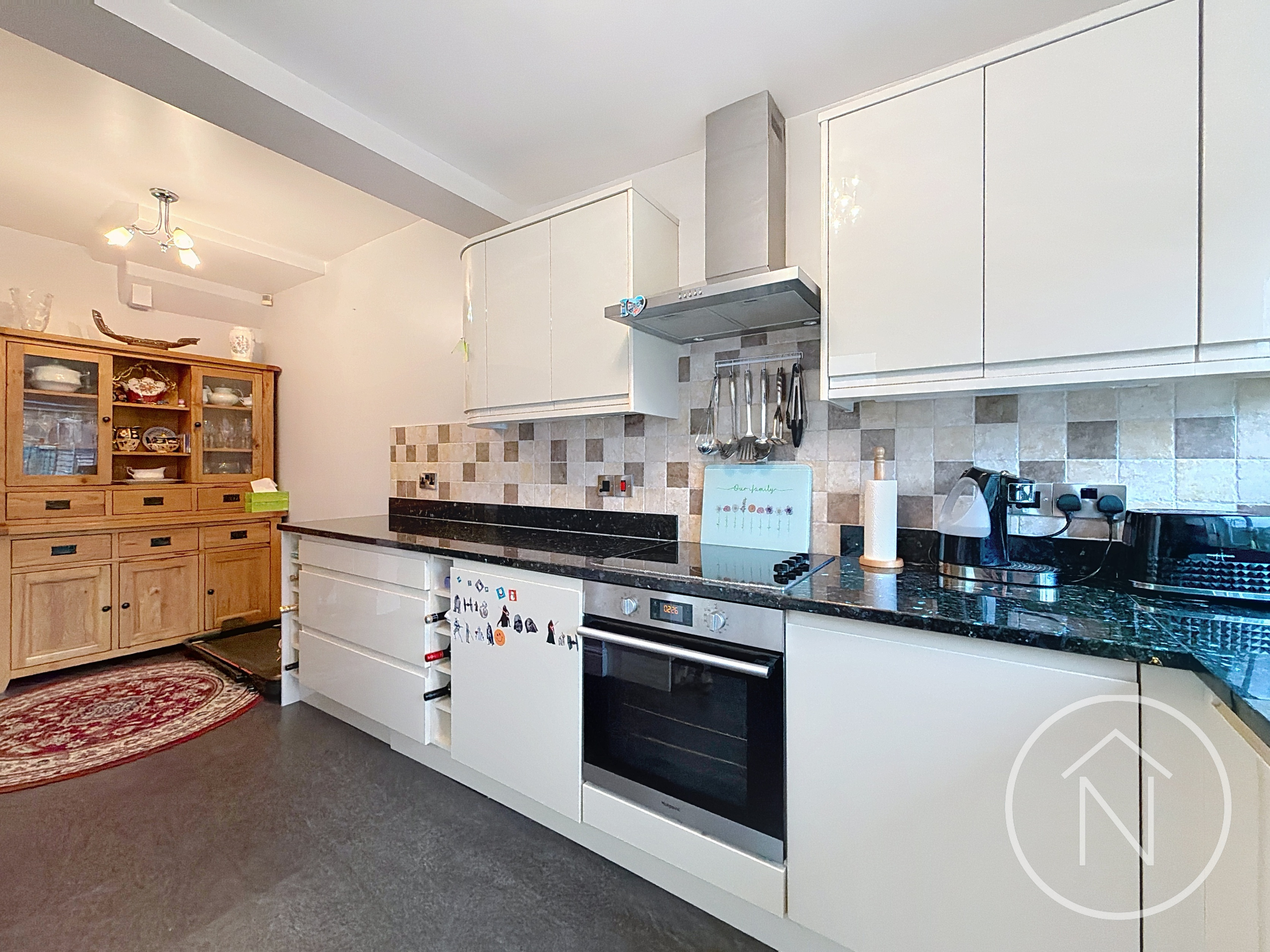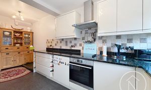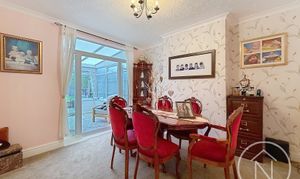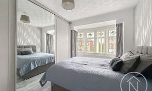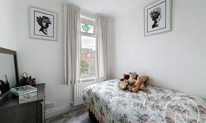 This stylish three-bedroom, mid-terraced house offers an impressive blend of modern finishes and period charm across three spacious reception rooms. The property features a contemporary kitchen equipped with sleek units, integrated appliances, ample countertop space, and abundant natural light, creating an inviting setting for home cooks and entertainers alike. The open plan dining area connects seamlessly to both the kitchen and a bright conservatory, which in turn provides direct access to the generous rear garden. The elegant living room boasts a decorative fireplace, modern chandelier, and a large bay window, flooding the space with natural light. Upstairs, three well-appointed bedrooms offer built-in wardrobes, bay windows, and tasteful décor, while the modern family bathroom is finished with tiled walls, a heated towel rail, and a bath with overhead shower.