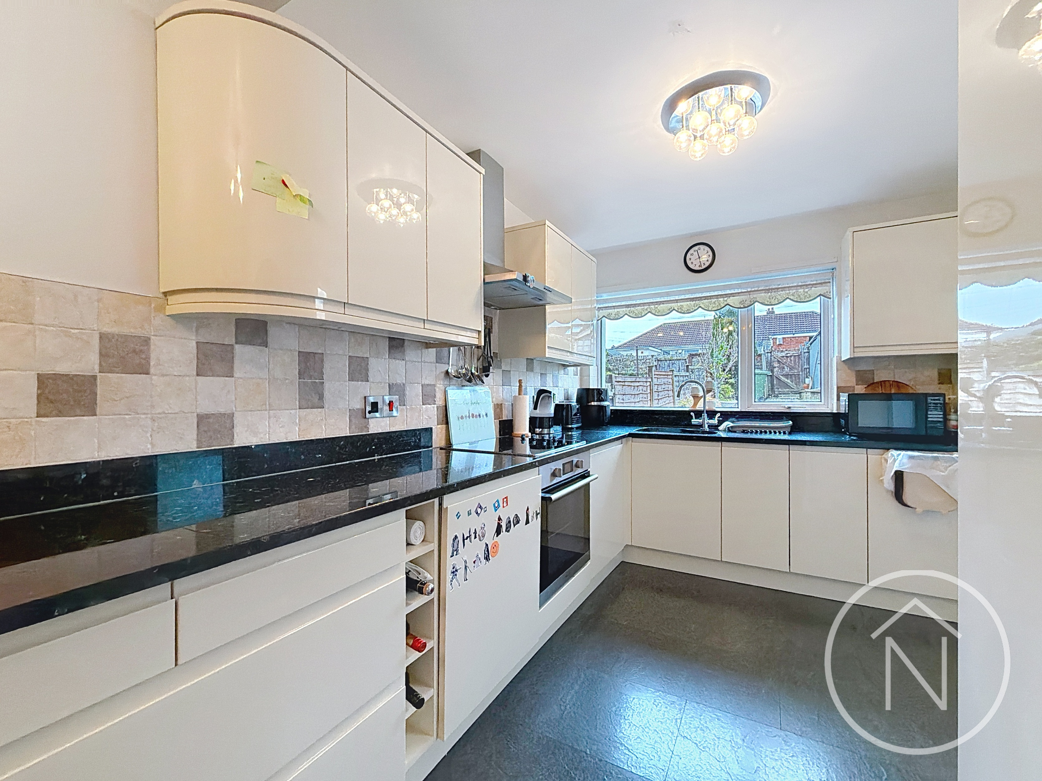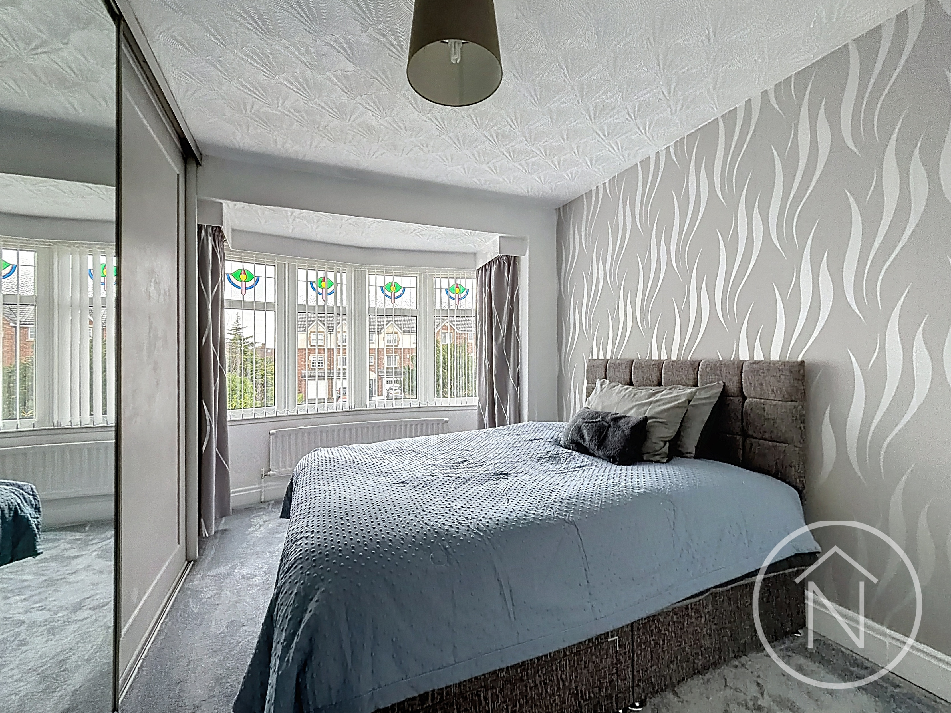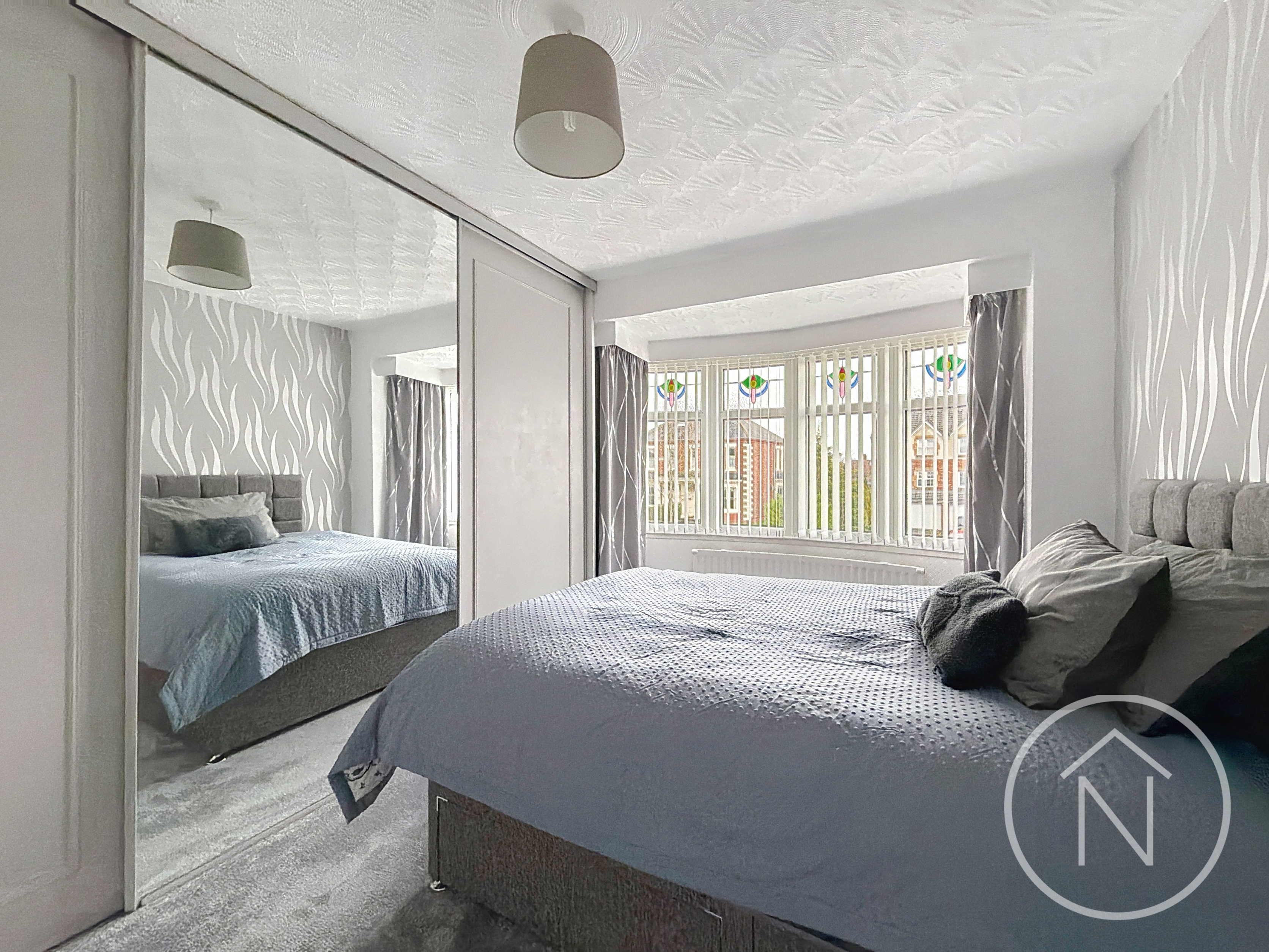 This stylish three-bedroom, mid-terraced house offers an impressive blend of modern finishes and period charm across three spacious reception rooms. The property features a contemporary kitchen equipped with sleek units, integrated appliances, ample countertop space, and abundant natural light, creating an inviting setting for home cooks and entertainers alike. The open plan dining area connects seamlessly to both the kitchen and a bright conservatory, which in turn provides direct access to the generous rear garden. The elegant living room boasts a decorative fireplace, modern chandelier, and a large bay window, flooding the space with natural light. Upstairs, three well-appointed bedrooms offer built-in wardrobes, bay windows, and tasteful décor, while the modern family bathroom is finished with tiled walls, a heated towel rail, and a bath with overhead shower.