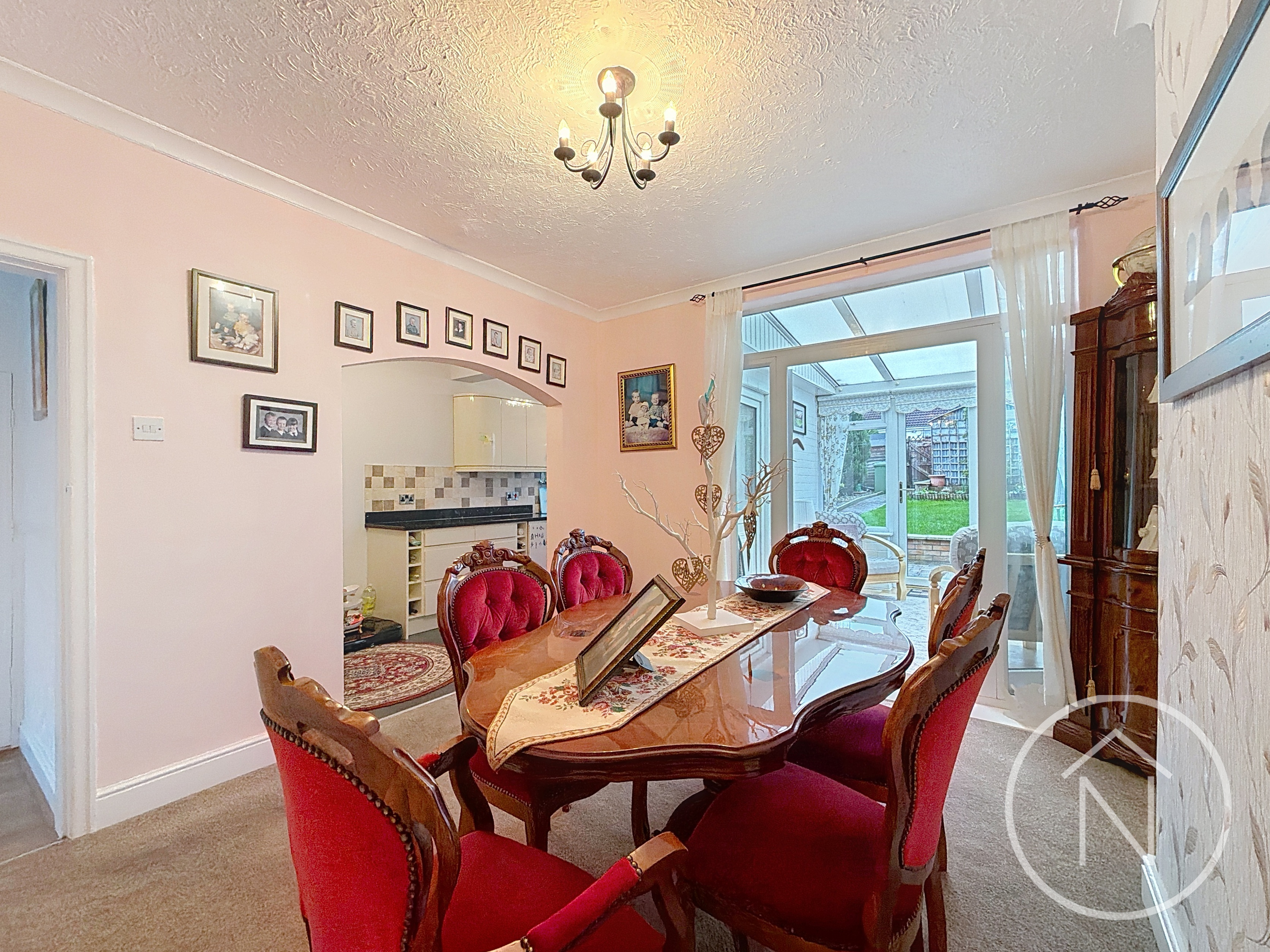 Additional highlights include a welcoming hallway, a spacious front garden with classic bay windows and a paved pathway, and a private, well-maintained rear garden featuring a patio, lawn, fenced boundaries, and a garage which is accessed from the rear. The property’s blend of indoor-outdoor living, abundant natural light, and thoughtful design details make it an ideal choice for families seeking comfort, style, and versatile living spaces.
