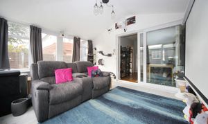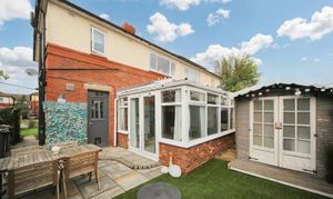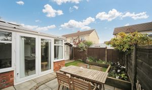 To the front there is a driveway providing parking for two cars. Inside, the entrance hall leads to a bright lounge, a well fitted kitchen and a separate dining room, creating a practical layout for everyday family life. The conservatory, which has been plastered and insulated on the inside, provides a versatile extra living space and opens onto the rear garden.