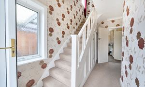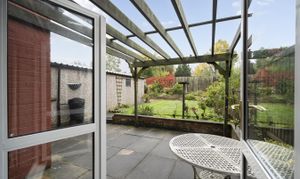 The property is approached via a private driveway which extends to the side of the house where the private garage can be found, alongside the EV car port. The front door opens into the bright entrance hallway which extends through to both the kitchen and the dining room. Both rooms provide access to the outdoors, the kitchen to the side driveway and the dining room out to the private rear garden, bordered by the garage on one side and fencing on the other. The garden is mostly laid to lawn with a patio section towards the rear of it and planting beds surrounding the lawn, providing a lovely area to relax in the outdoors.