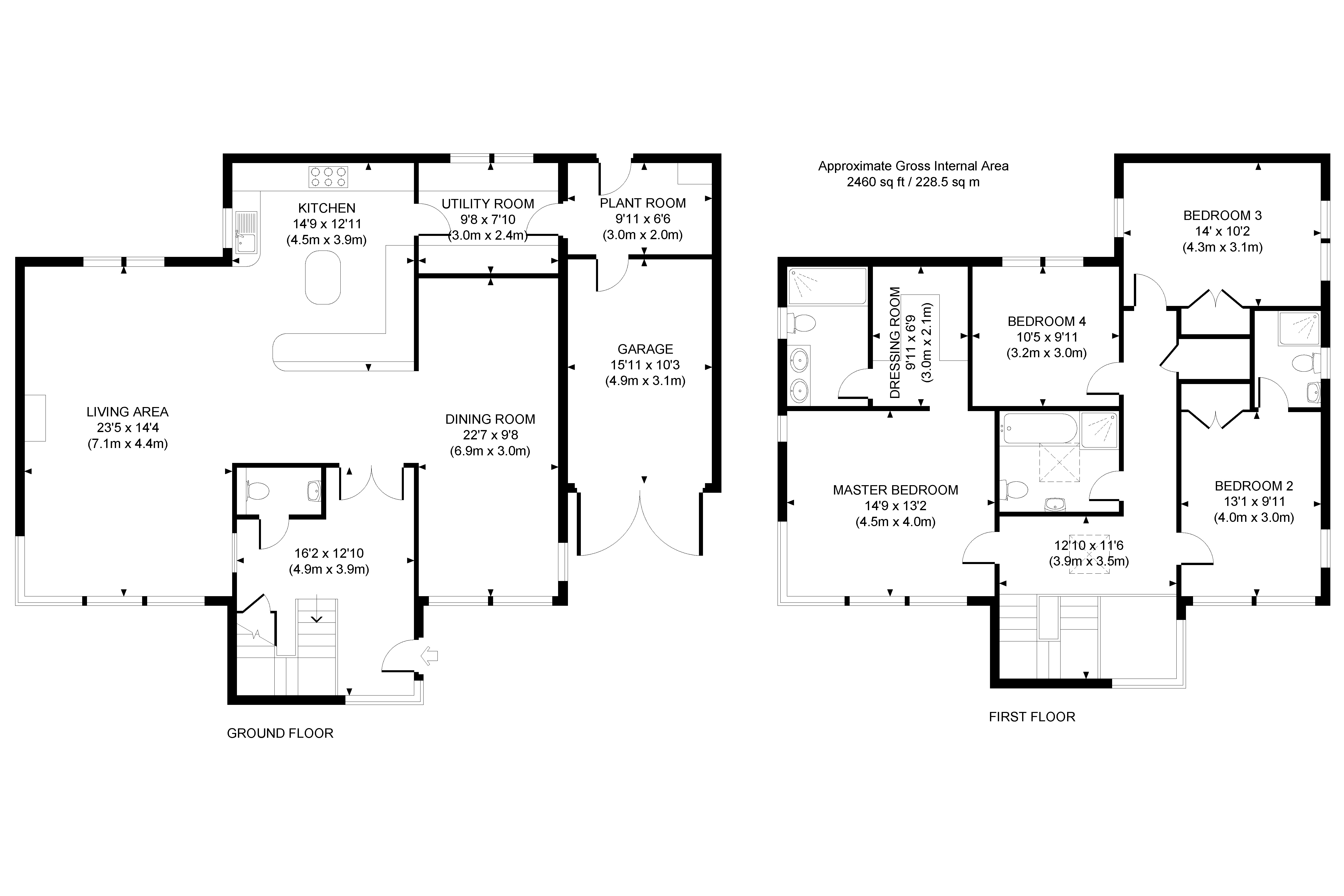 - Grand master suite with dressing room and bathroom - Guest bedroom suite, 2 further bedrooms and 3rd bathroom