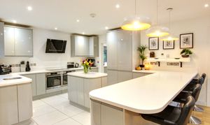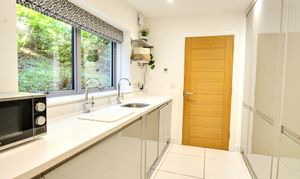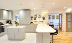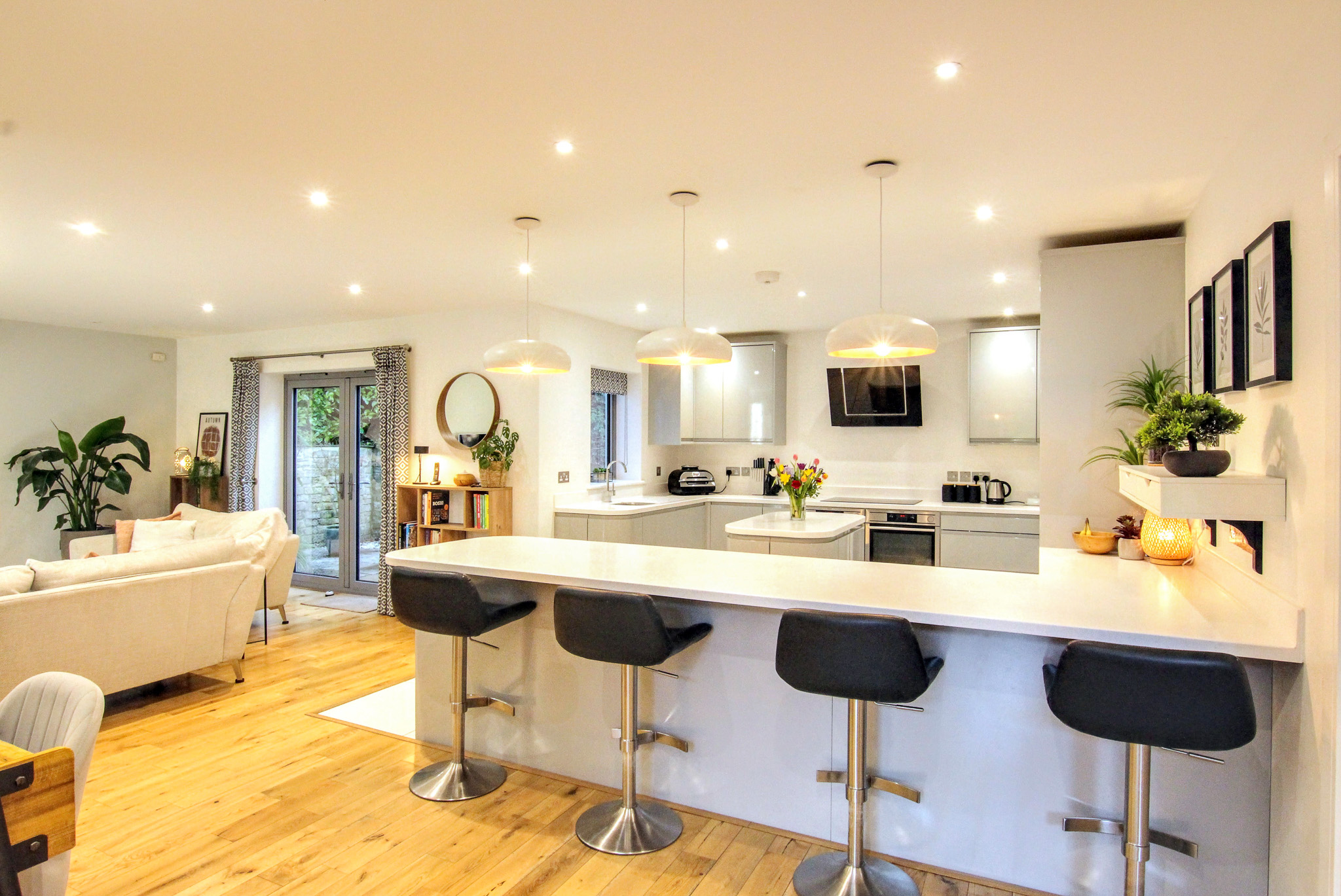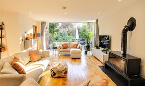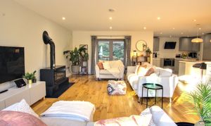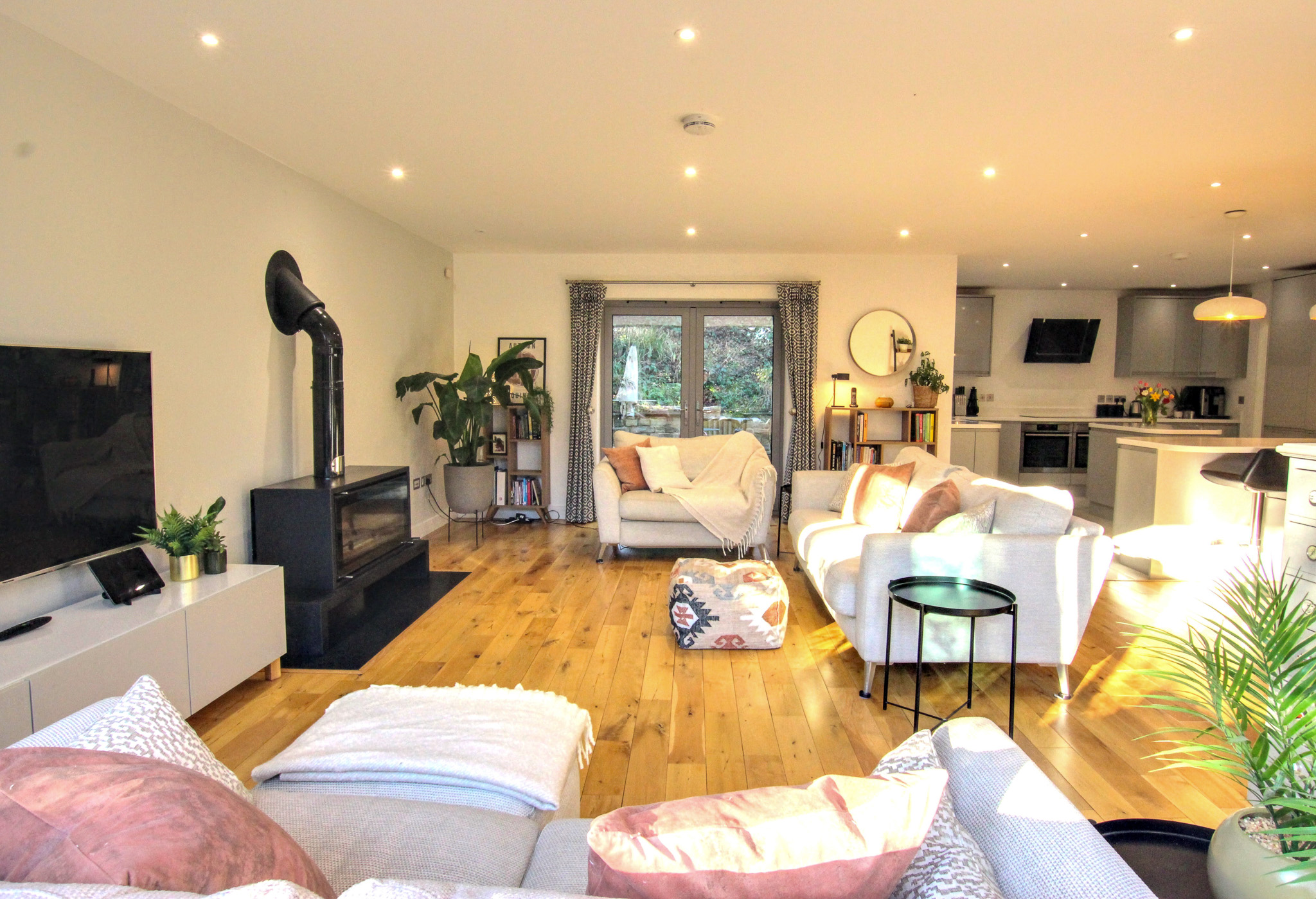 - Open plan living area with wood burner & bifold doors - Modern kitchen with integrated appliances & Corian tops