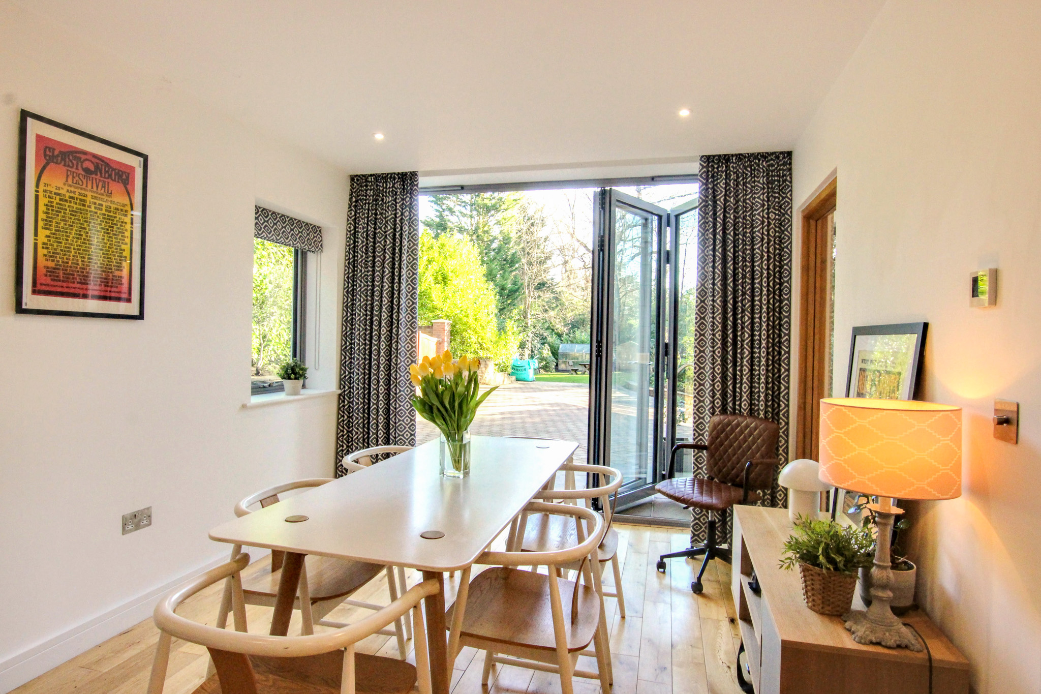 A fabulous, individual and ultra-modern detached family home occupying a secluded plot of almost 0.5 acres with beautiful gardens and a detached studio overlooking a pond within the Lewes Road conservation area on the town’s south eastern edge, offering bright accommodation and fitted out to a very high specification with excellent eco-qualities.