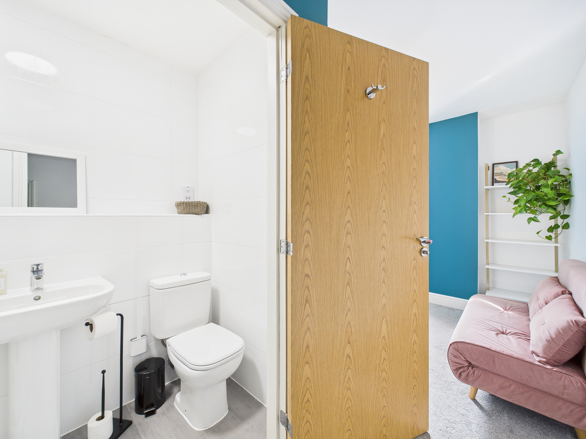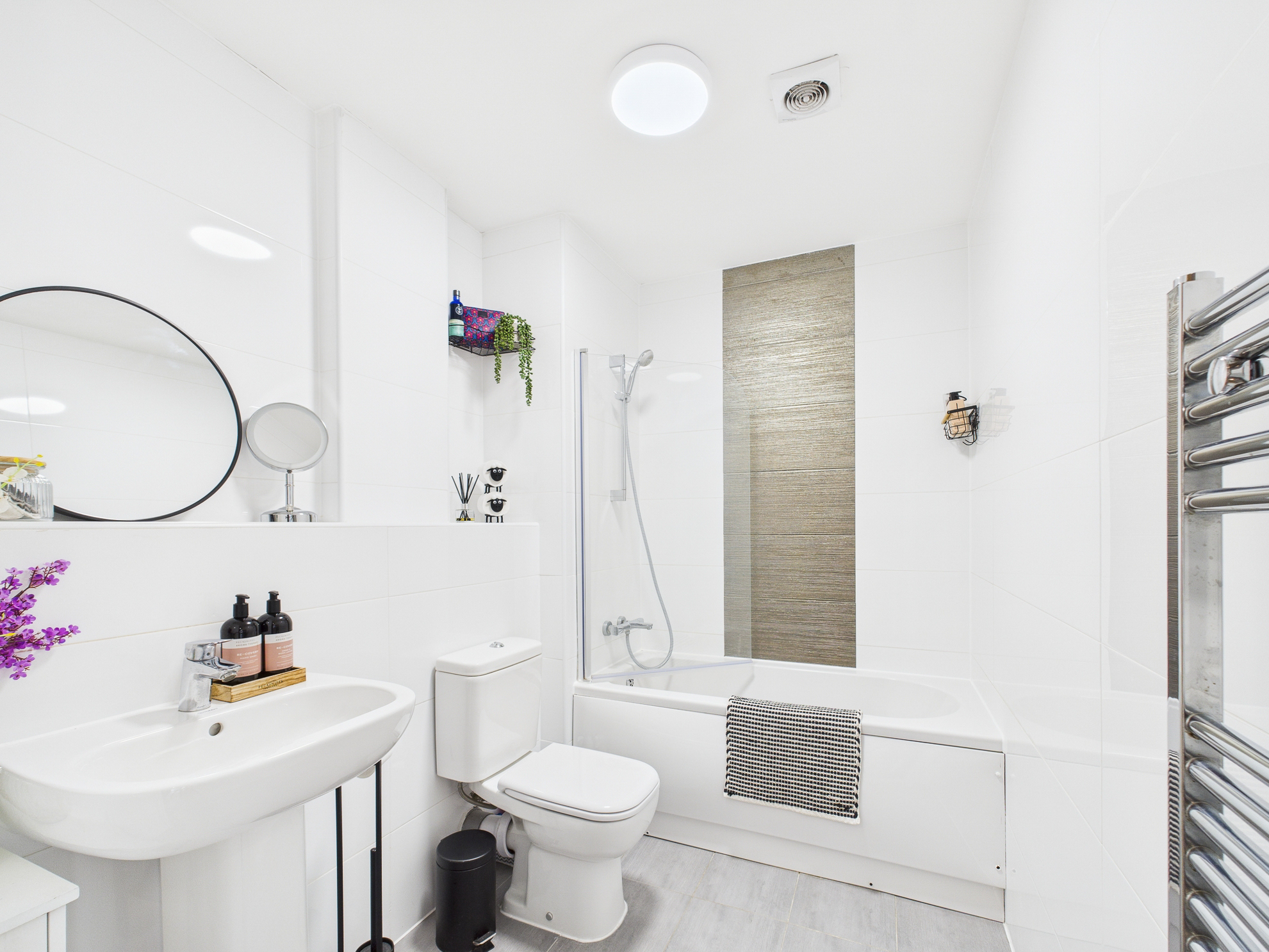 There are two double bedrooms, giving you all the flexibility you could want. The main bedroom is a calm retreat, while the second double comes with the bonus of an en-suite shower room. Currently used as a guest room/home office, it’s a versatile space that adapts to your lifestyle. The bathroom, complete with shower over bath, adds even more practicality with a touch of style.