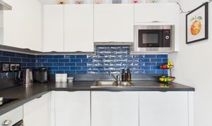 The living area is perfectly sized for a sofa and a table—ideal for relaxed evenings, catching up with friends, celebrating special occasions, or simply enjoying a lazy weekend brunch with the sun streaming in.