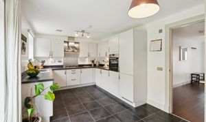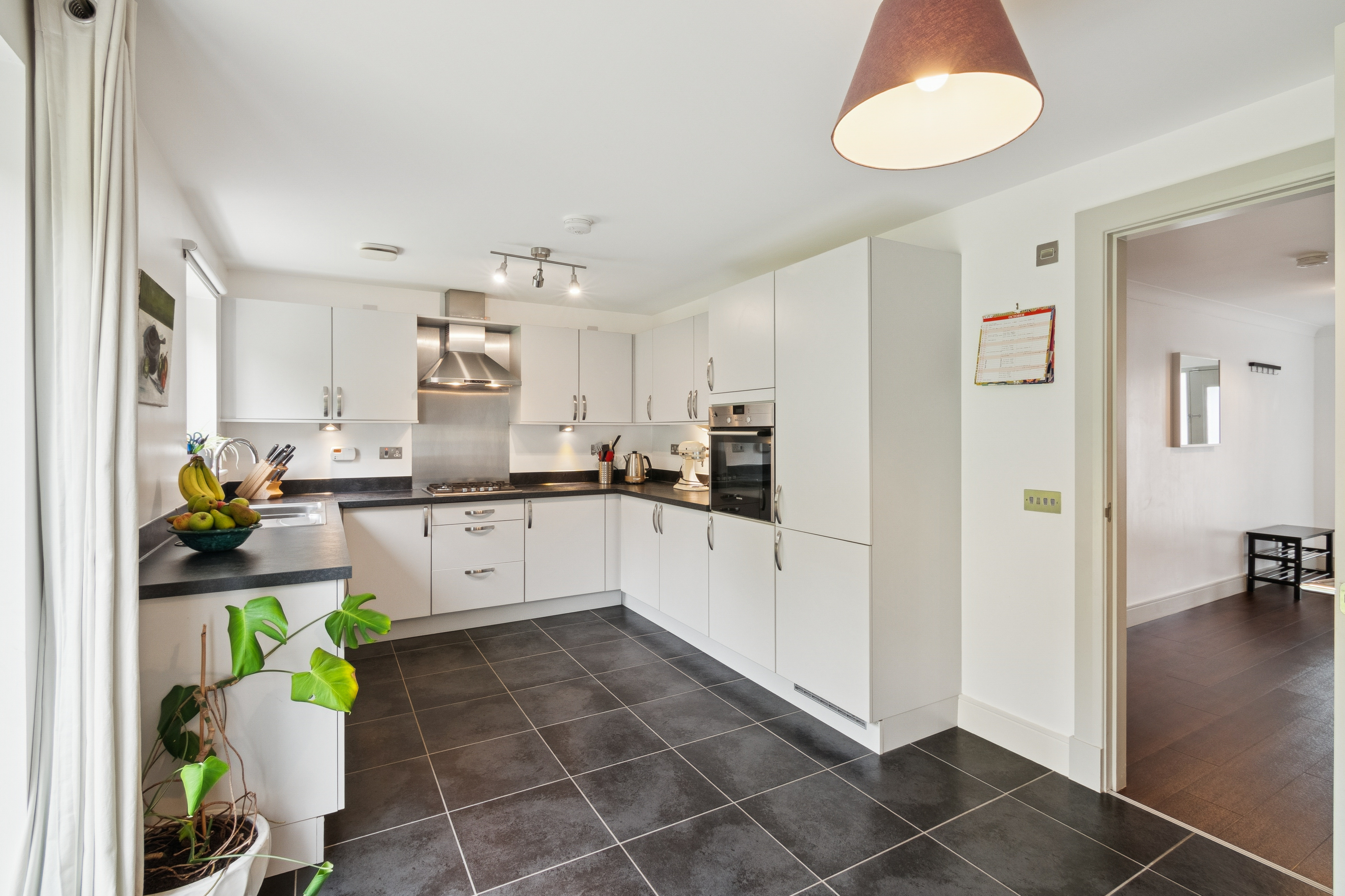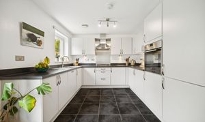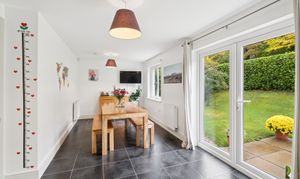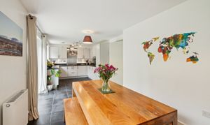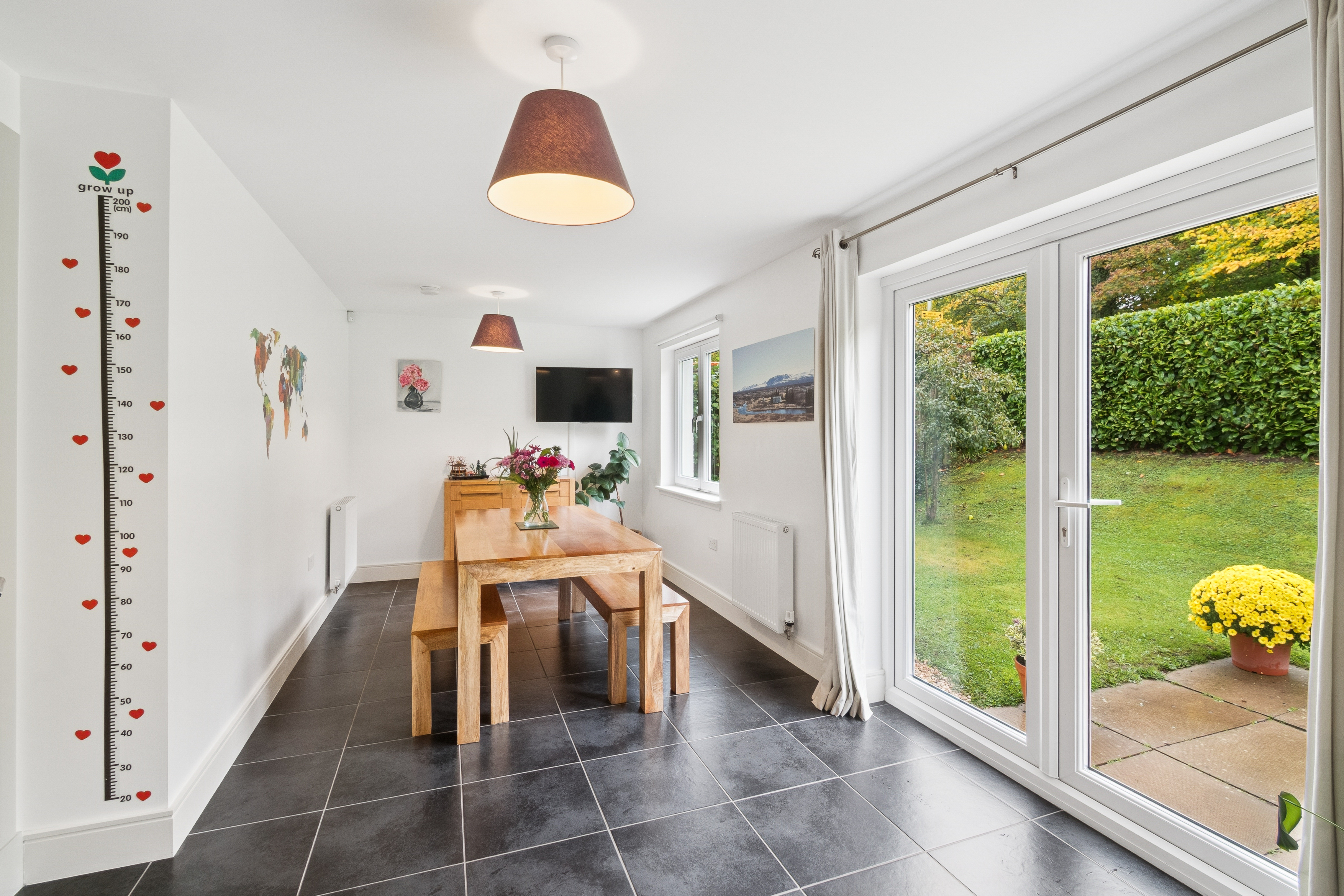 At the heart of this home is the impressive open-plan kitchen and dining area. Designed for both style and functionality, the kitchen is a chef’s dream, complete with a range of integrated appliances including an oven, hob, dishwasher, fridge and freezer. There is an abundance of worktop space, excellent storage, and a seamless flow into the dining area, which can comfortably seat 8–10 people. This space works beautifully as a live-in kitchen, ideal for family life or entertaining guests. The neutral décor makes it easy to personalise, while large windows provide a lovely outlook to the rear garden.
