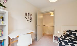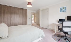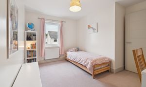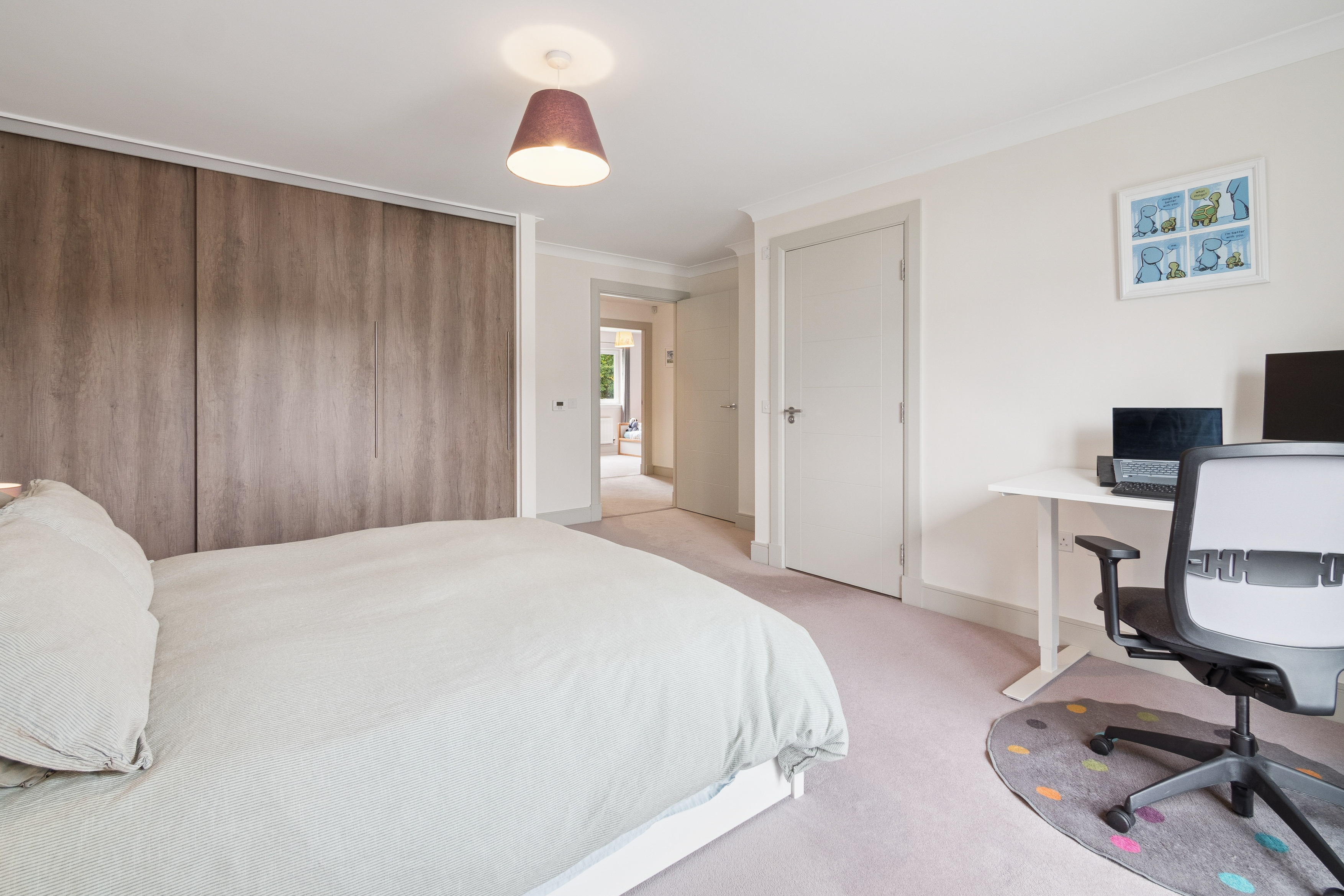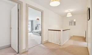Upstairs, the sense of space continues. The bright, airy landing leads to four beautifully proportioned bedrooms, all finished in fresh, neutral tones. The main bedroom is a superb size, comfortably accommodating a super king bed with ample room for freestanding furniture. It also benefits from large fitted wardrobes and a stylish en-suite complete with walk-in shower and sleek, modern finishes. Bedrooms two and three both feature fitted wardrobes, offering excellent storage, while the fourth bedroom big enough to fit a double bed provides versatility as a home office, nursery or guest room.