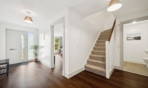 You are welcomed by an incredibly spacious hallway that sets the tone for the rest of the home. Neutral and stylish, it creates an inviting first impression and offers a true sense of openness. The lounge is the showstopper of this property. With three large front-facing windows flooding the room with natural light, the space feels bright and airy. Its generous layout can comfortably accommodate multiple large sofas and freestanding furniture, while still maintaining a relaxed, homely atmosphere. It strikes the perfect balance between a statement living area and a cosy family retreat.