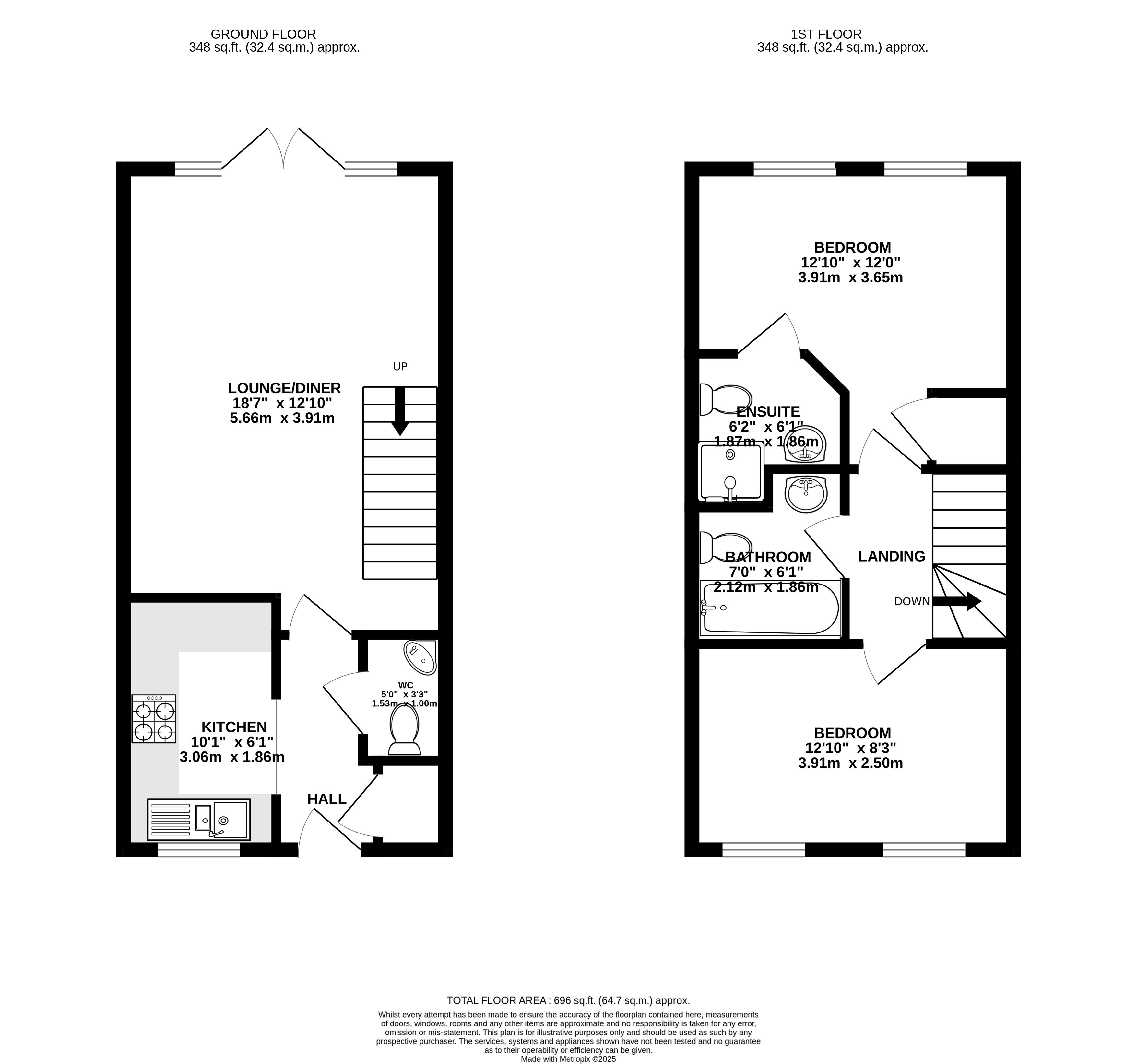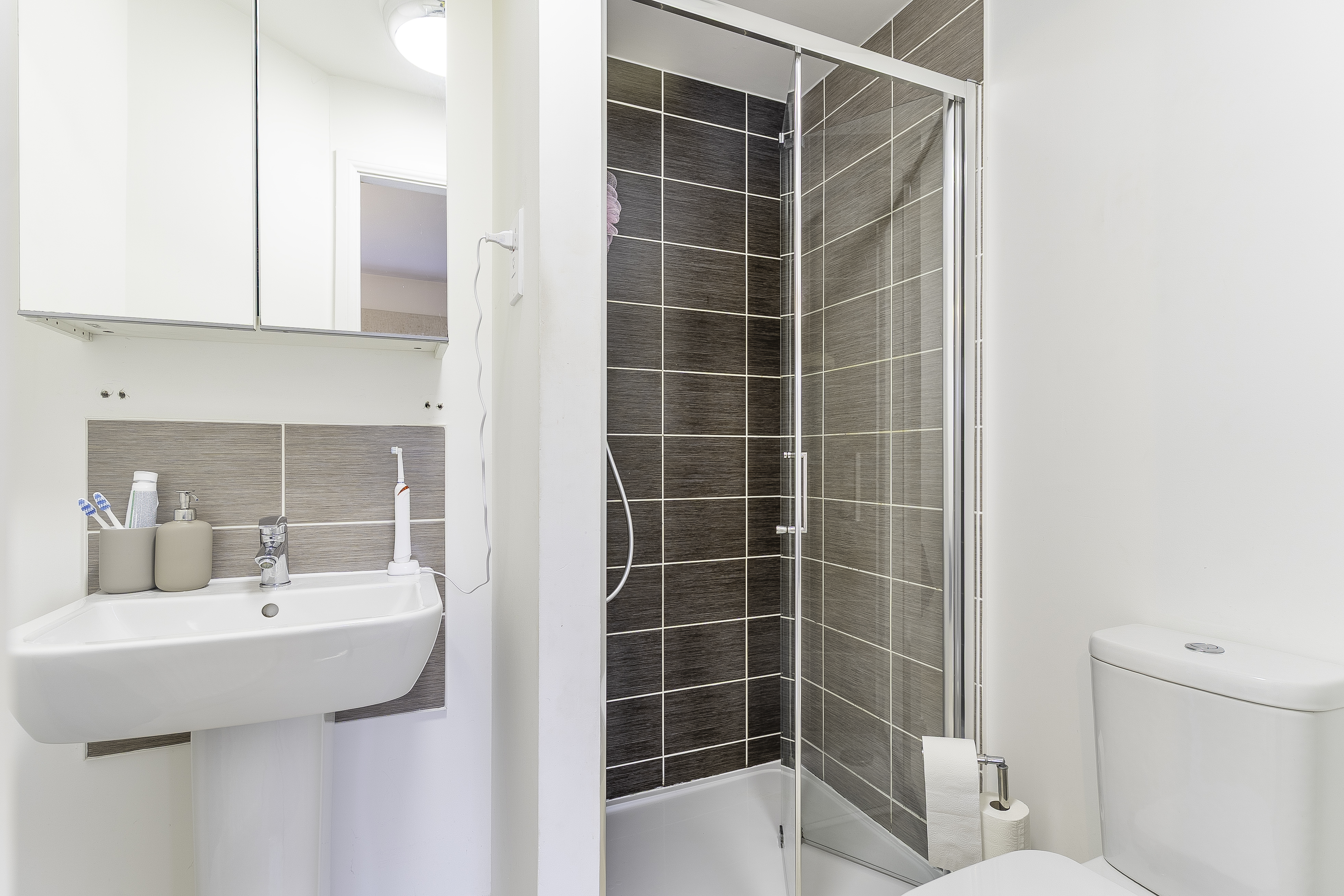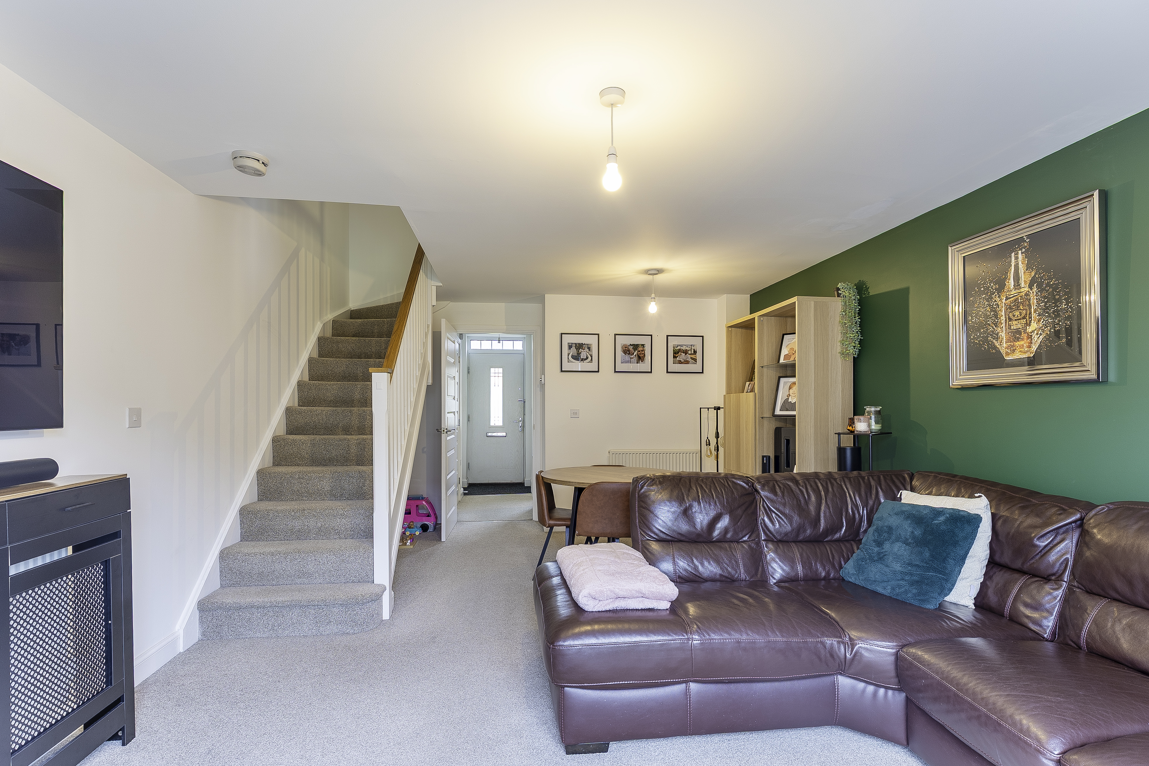 Upstairs, the first floor is home to two generous double bedrooms, both offering plenty of space and natural light. The primary bedroom boasts the added benefit of an en-suite shower room, providing privacy and convenience. A family bathroom, featuring a neutral suite, completes the first-floor layout.