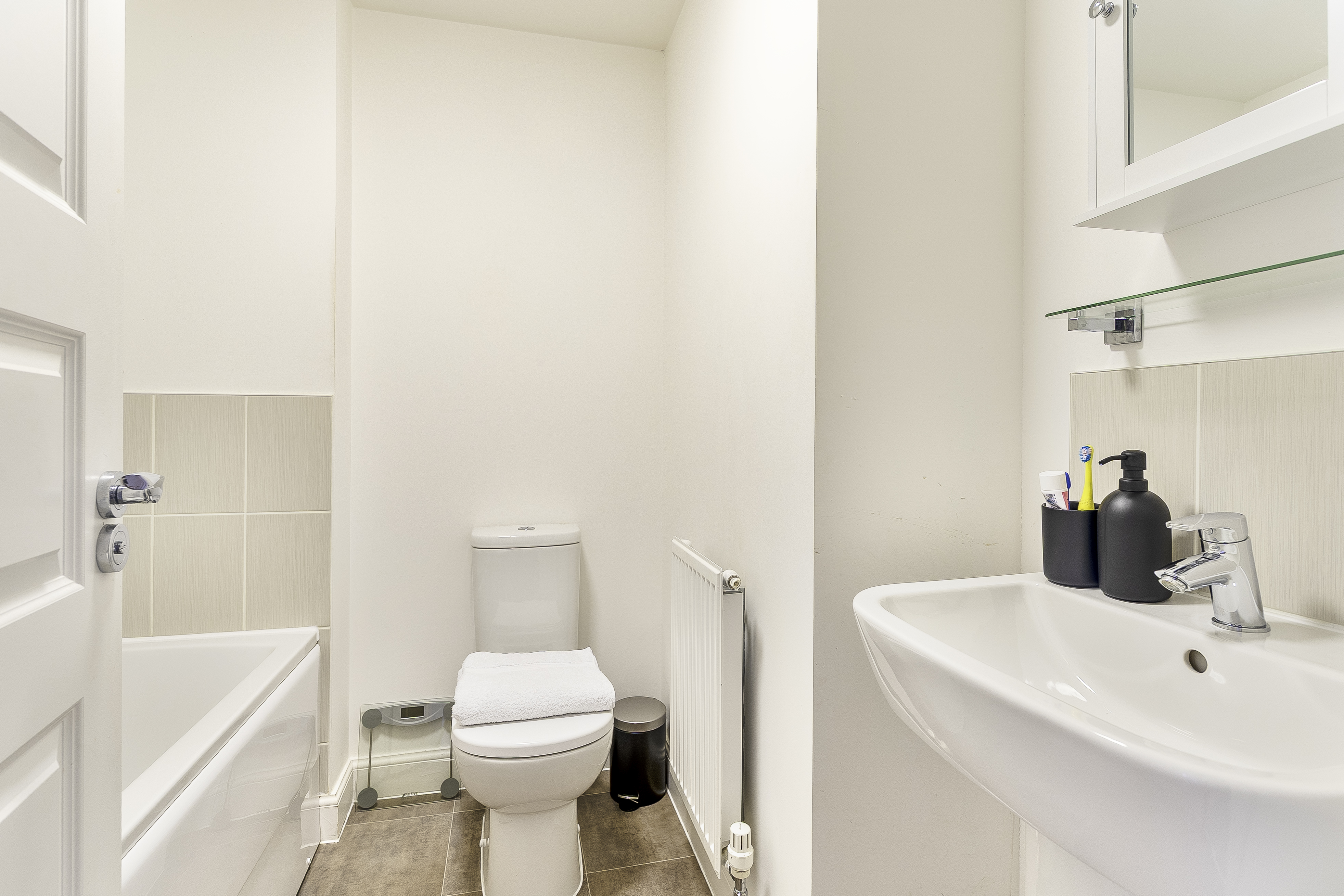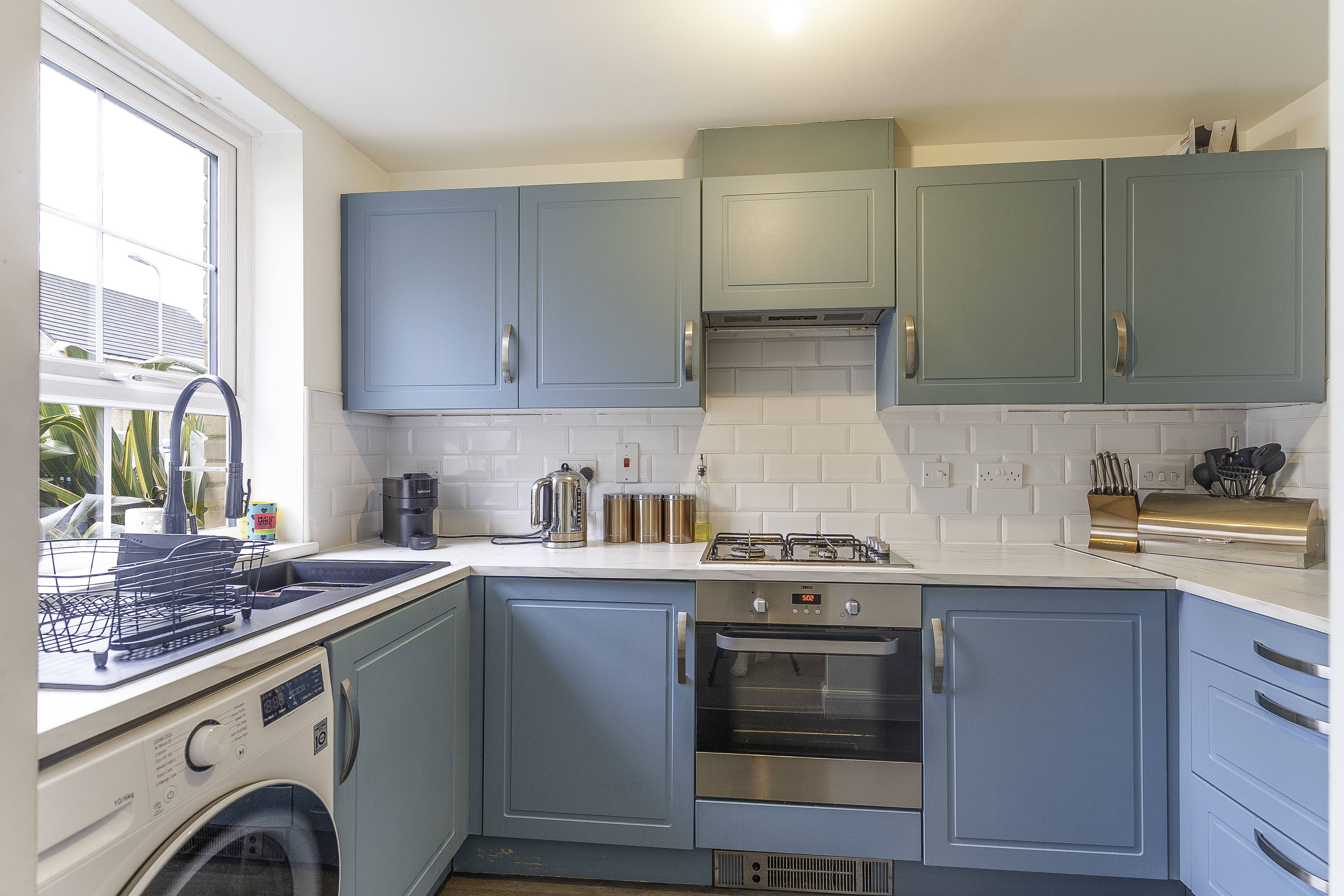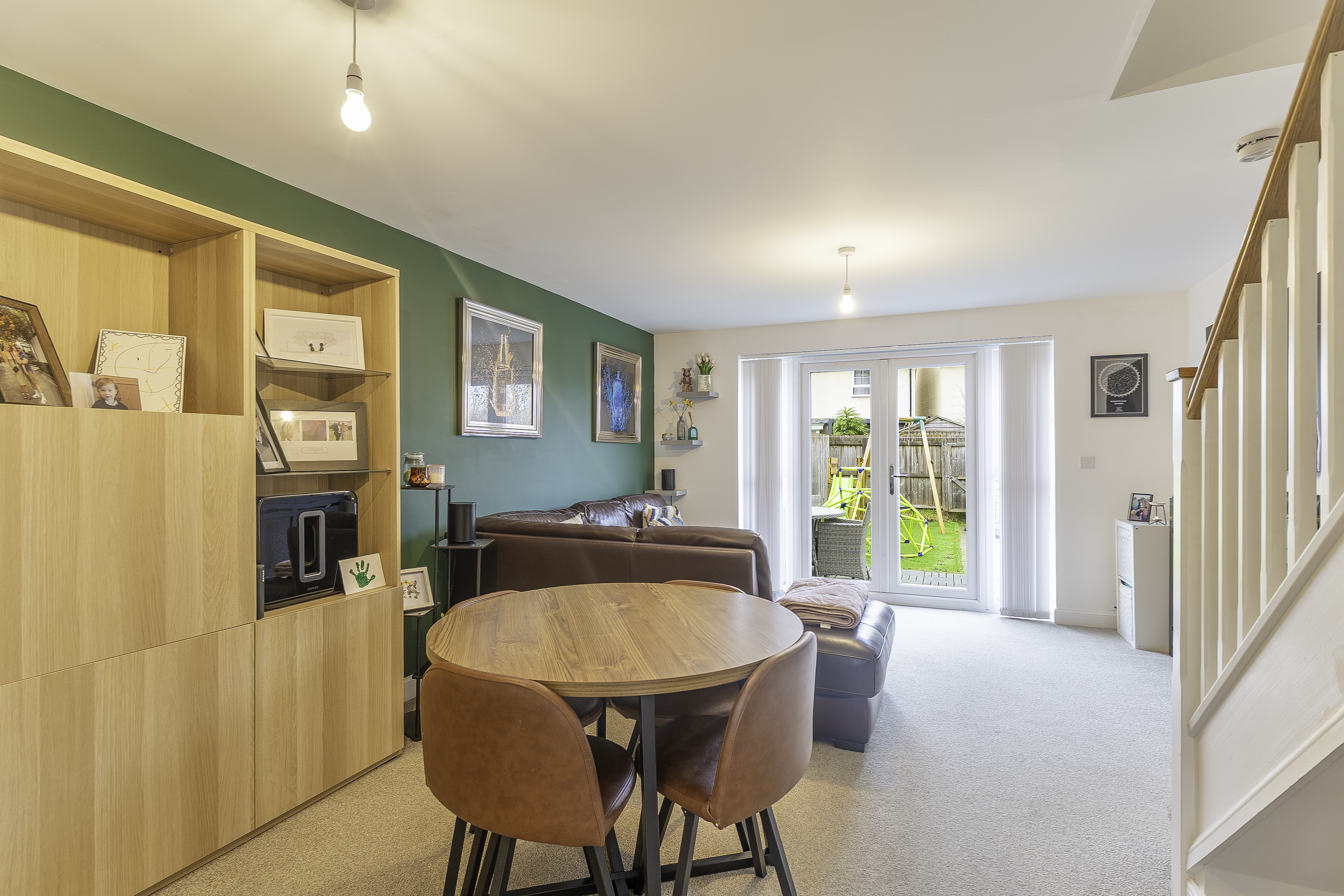 The rear garden is fully enclosed, offering a private and low-maintenance outdoor space. It features a cosy seating area, perfect for relaxing, and rear access for added convenience.