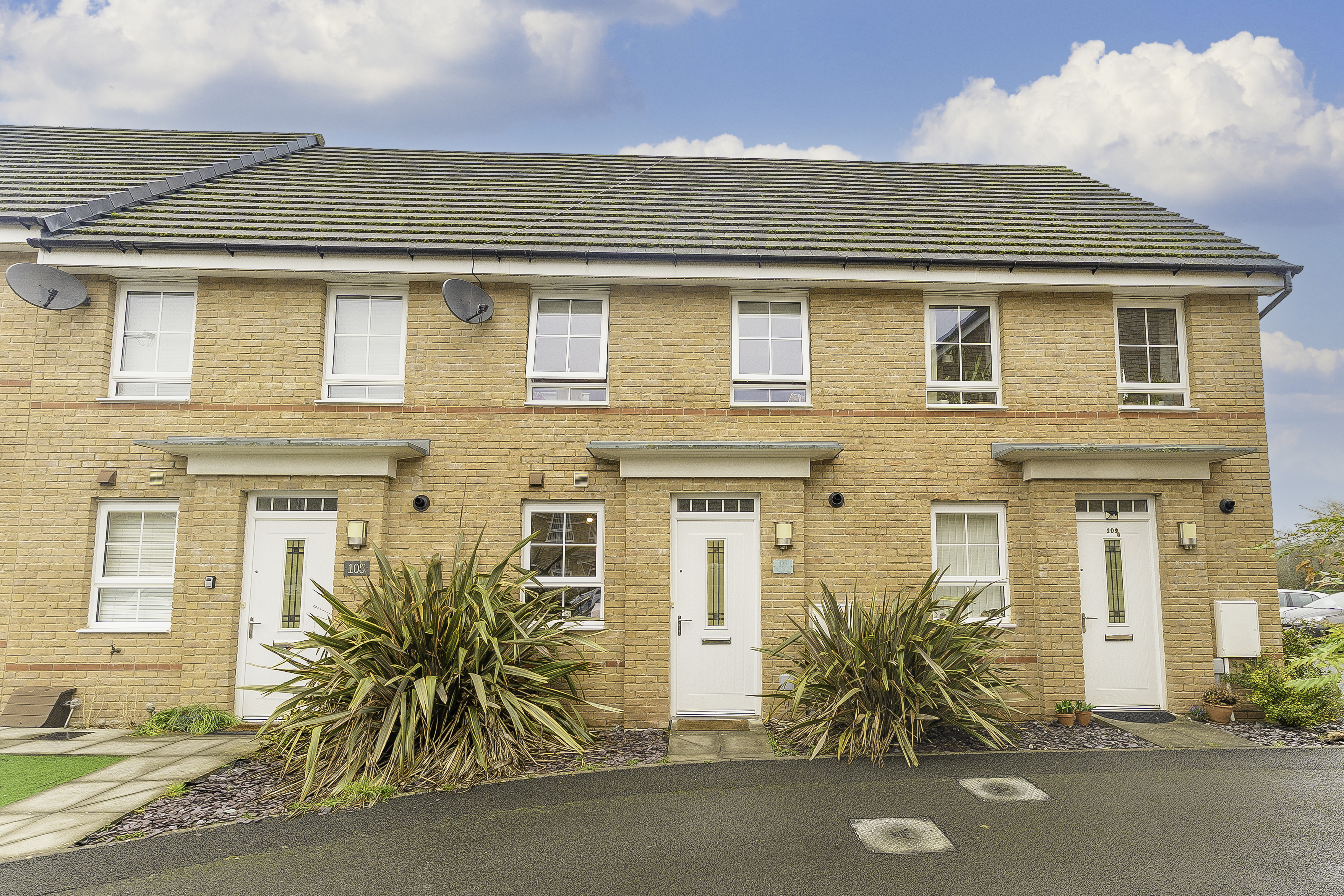To the right of the property, there are two allocated parking spaces, ensuring off-road parking for residents.
