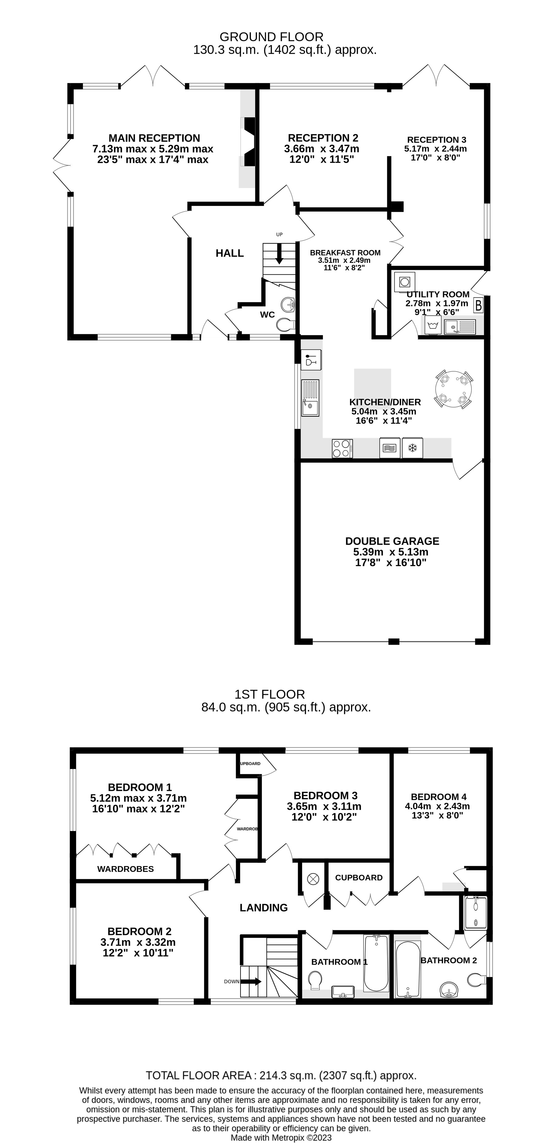 - Sunny double aspect main bedroom over 16 ft x 12 ft with generous range of fitted wardrobes : Bedroom 2 also double aspect : Inbuilt wardrobe cupboards to bedrooms 3 & 4.