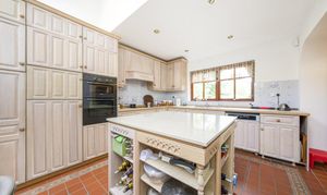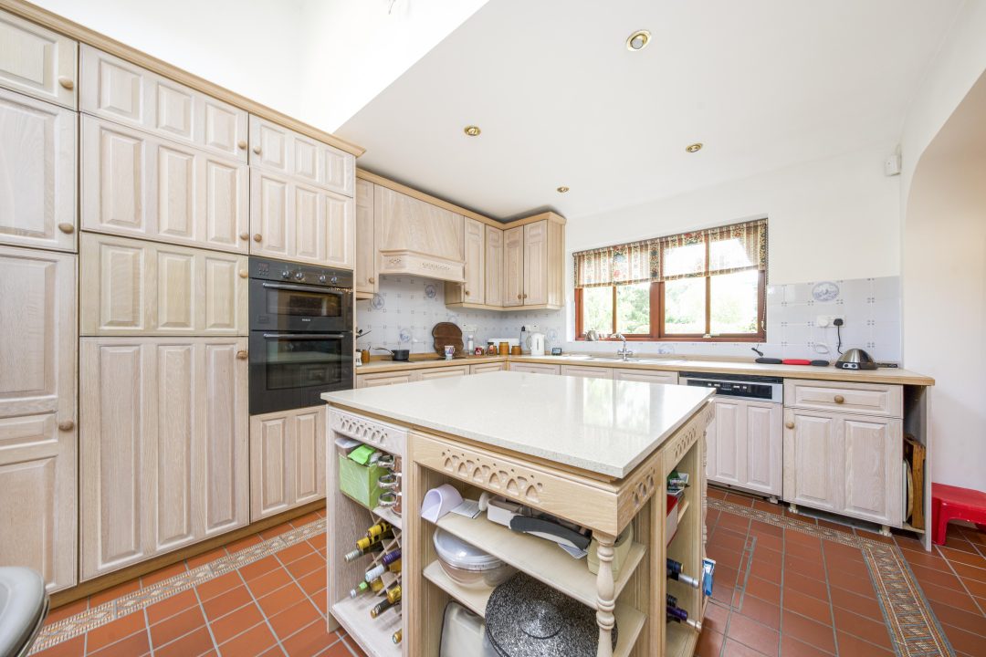 - Wide kitchen/diner over 16 ft across with integral appliances, island unit,+ space for table & chairs. Additional 11 ft breakfast area and separate utility room with sink, worktops, and side access.
