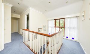 Staircase from hall to airy 1st floor landing with balustrade and floor to celling windows overlooking Ham Common woods to the front. Trap door to loft. A spur of the landing leads off to the bathrooms and Bedroom 4 with a radiator and twin double doors to useful storage cupboards.
