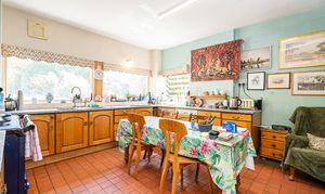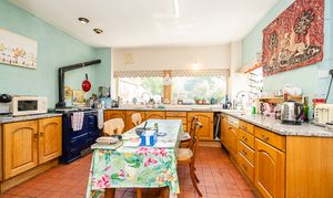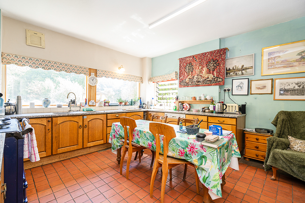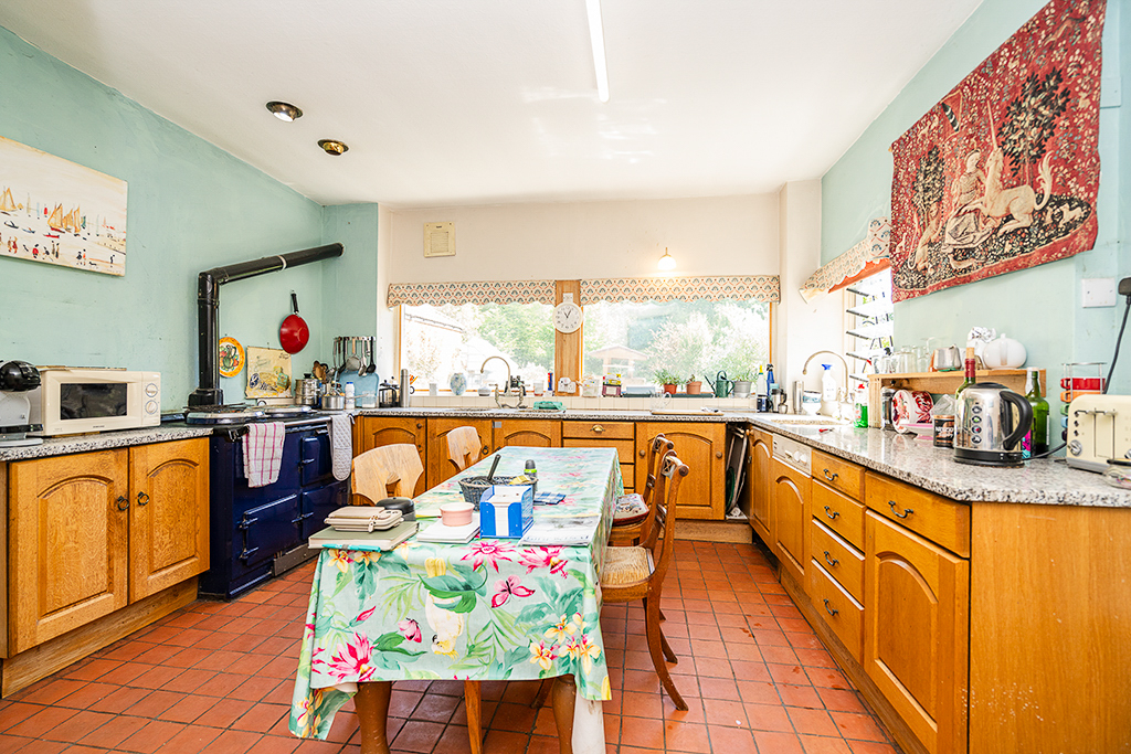 Large window overlooking the garden. Aga cooker, quarry tiled floor.