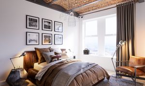 Presenting a truly unique two-bedroom flat that seamlessly blends historic architectural charm with modern luxury. This spacious property is thoughtfully designed with an open plan kitchen and living area, where exposed brick ceilings and large windows create a bright, airy ambience. The stylish kitchen boasts sleek white units, integrated appliances, and flows effortlessly into a welcoming reception space, complete with elegant chandelier lighting and a comfortable leather sofa. Both bedrooms are generously proportioned, featuring striking exposed brick ceilings, modern chandeliers, and plush bedding for the ultimate in comfort and relaxation. The flat includes a contemporary bathroom equipped with a spacious walk-in shower enclosed in glass, an illuminated mirror, and stylish subway tile walls, as well as a second bath and shower combination with elegant fixtures and a large backlit mirror.