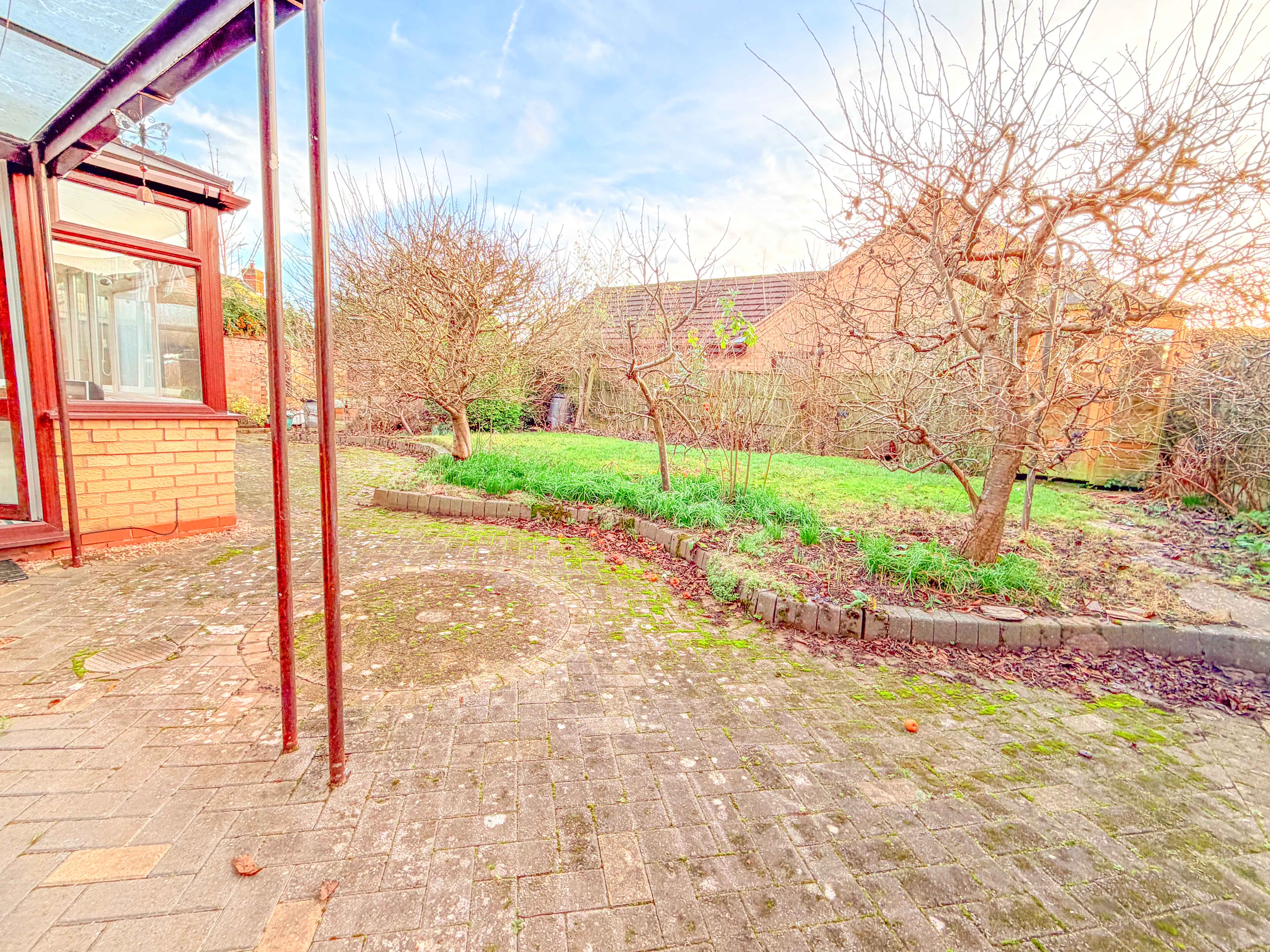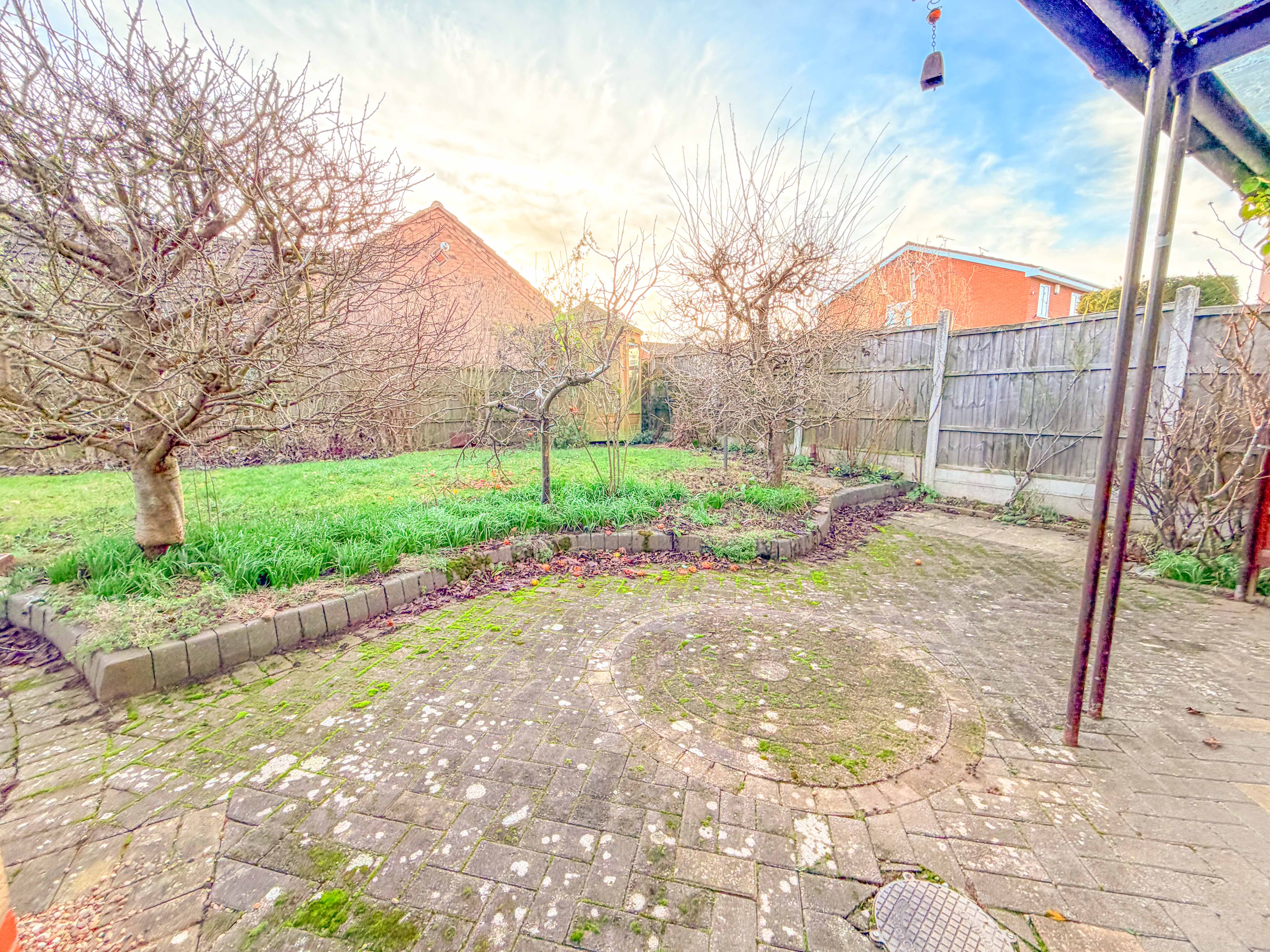 Externally, the rear garden features a block-paved patio area, partially covered to allow for year-round use, leading onto a neatly maintained lawn. The garden is fully enclosed, offering a good degree of privacy and an ideal space for outdoor relaxation.