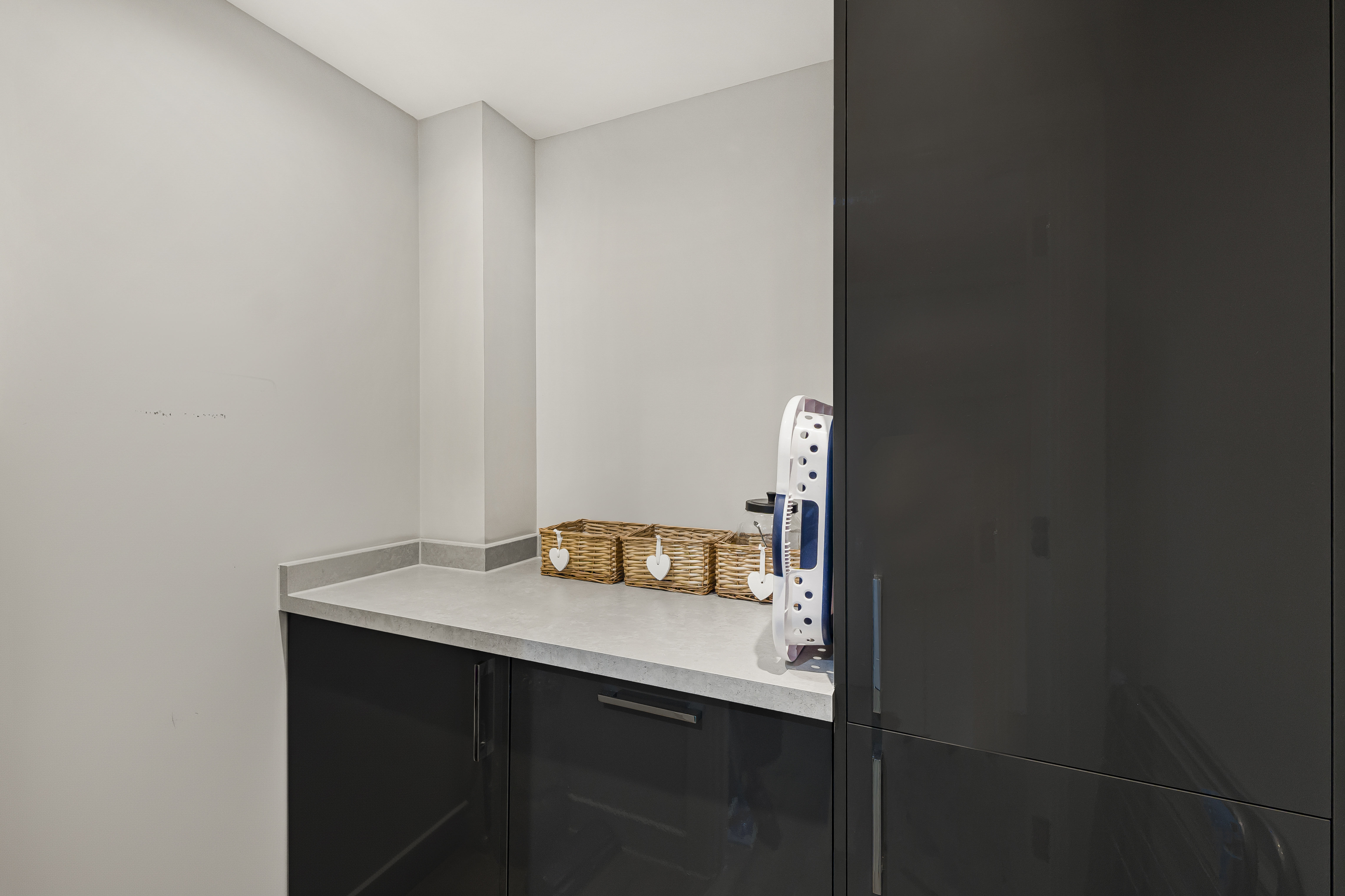 The accommodation begins with a spacious L-shaped entrance hall, providing excellent built-in storage and access to all rooms, along with a separate utility room offering plumbing for a washing machine and additional storage - a rare and highly practical feature.