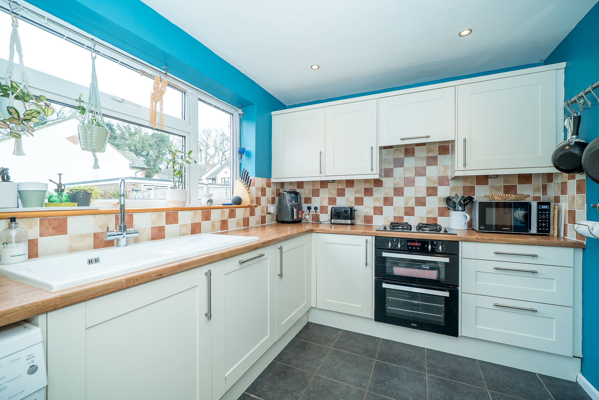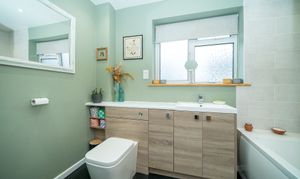Upstairs, there are three generously sized bedrooms, two of which are comfortable doubles and benefit from built-in wardrobes. The well-appointed family bathroom serves the first floor, offering practicality for busy households.