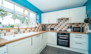 The property is entered via an enclosed porch leading into a welcoming entrance hall. The lounge features a charming brick fireplace, creating a cosy focal point, while the separate dining room provides an ideal space for entertaining guests or enjoying family meals. The fitted kitchen offers ample storage and direct access to the rear garden. The ground floor also benefits from a convenient cloakroom.