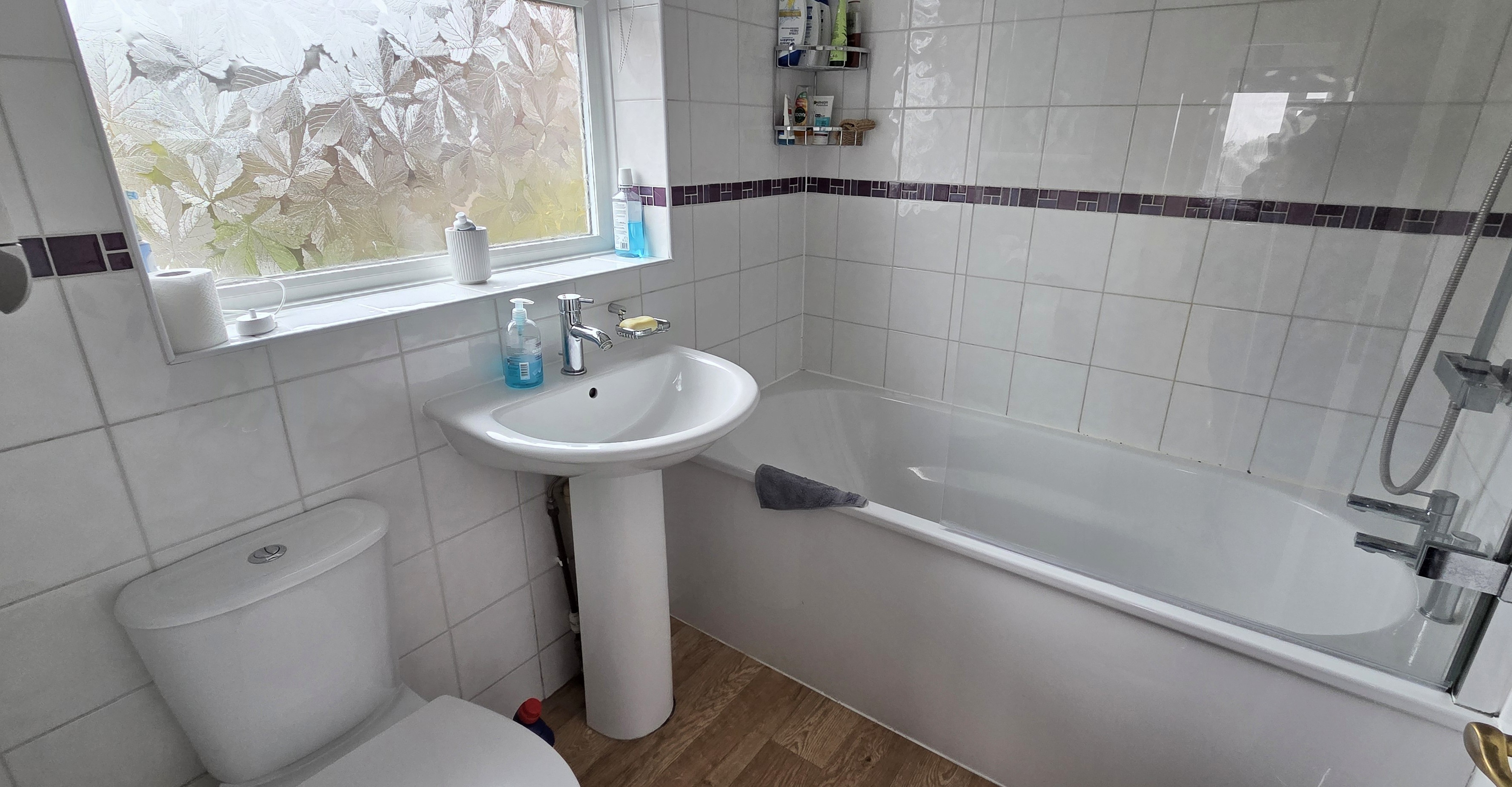 - Generous First Floor landing + storage + Family Bathroom with white suite