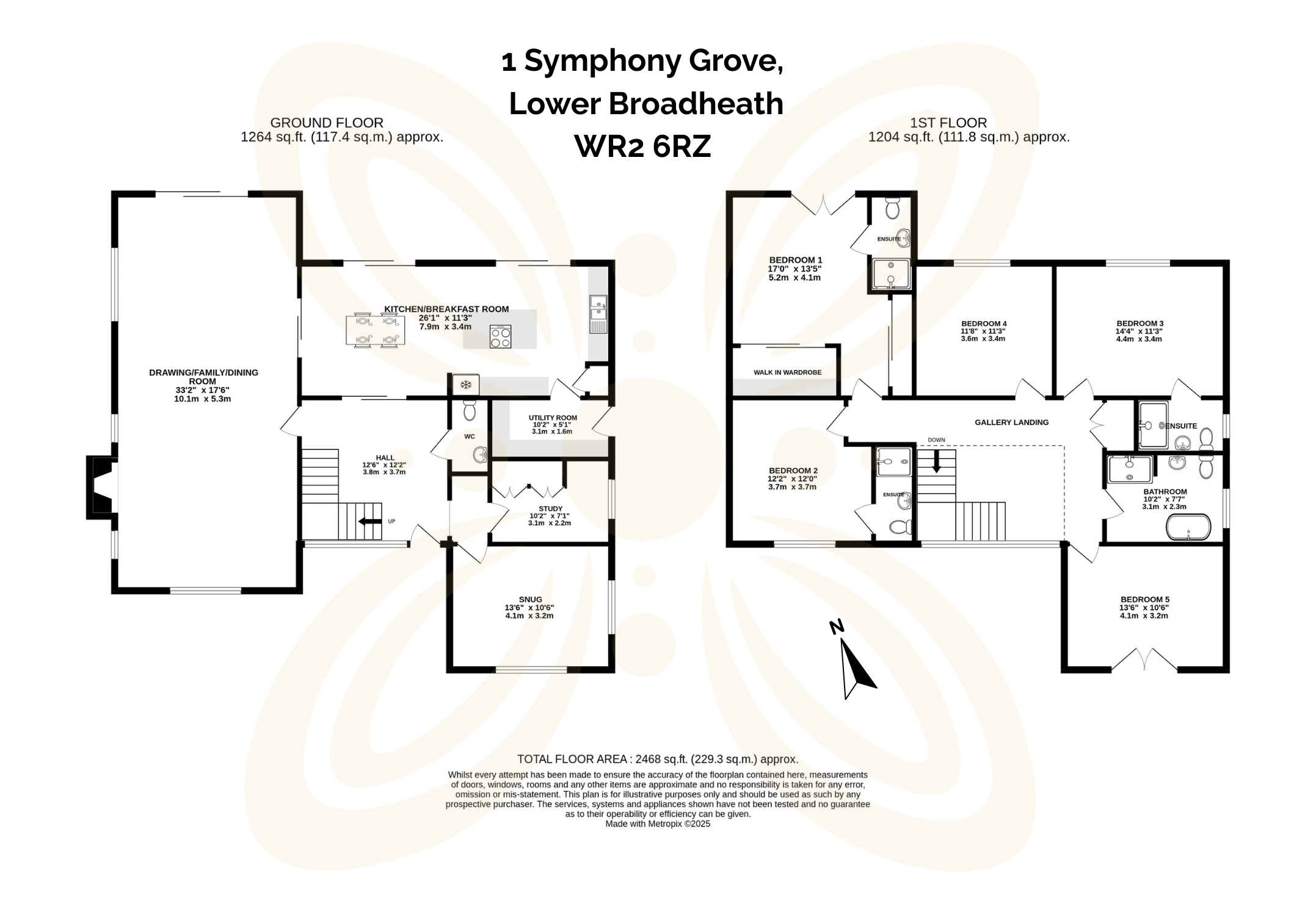 Upstairs, the home boasts five double bedrooms, including a luxurious principal suite with garden-view double doors, double wardrobes and a private en suite shower. With a family bathroom plus two further en suite shower rooms, the house is perfectly set up for families and guests alike.