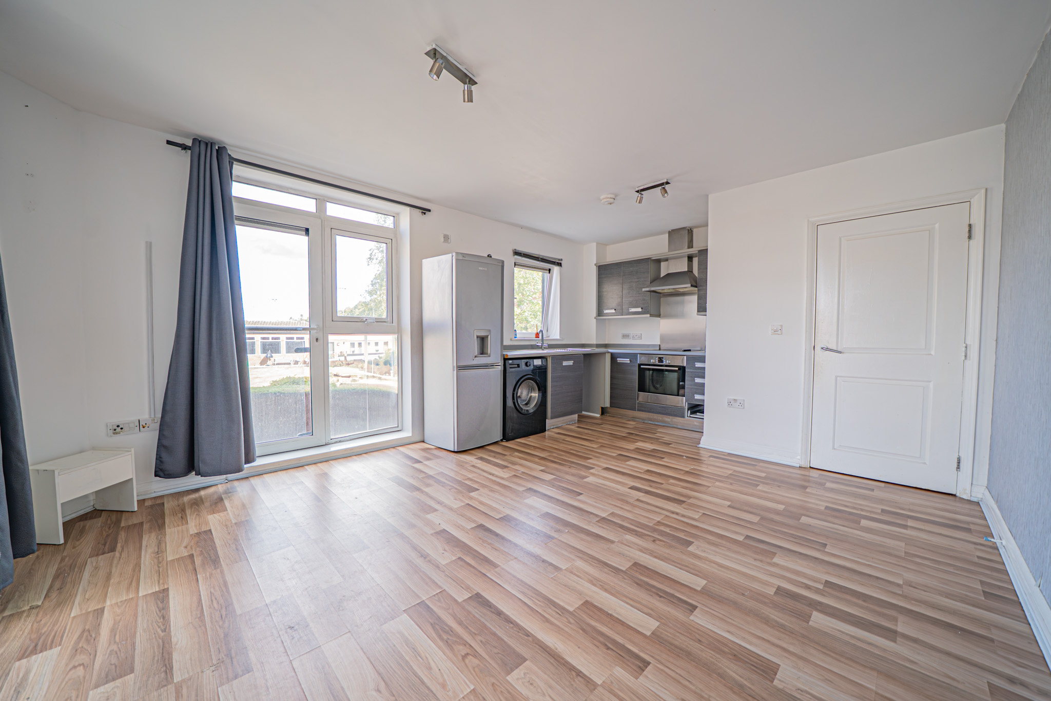 Integrated oven, integrated hob, extractor, some curtains and blinds, all light fittings and CCTV.