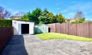 Externally, the lawned rear garden offers a great outdoor space and includes useful storage sheds, providing additional practicality.