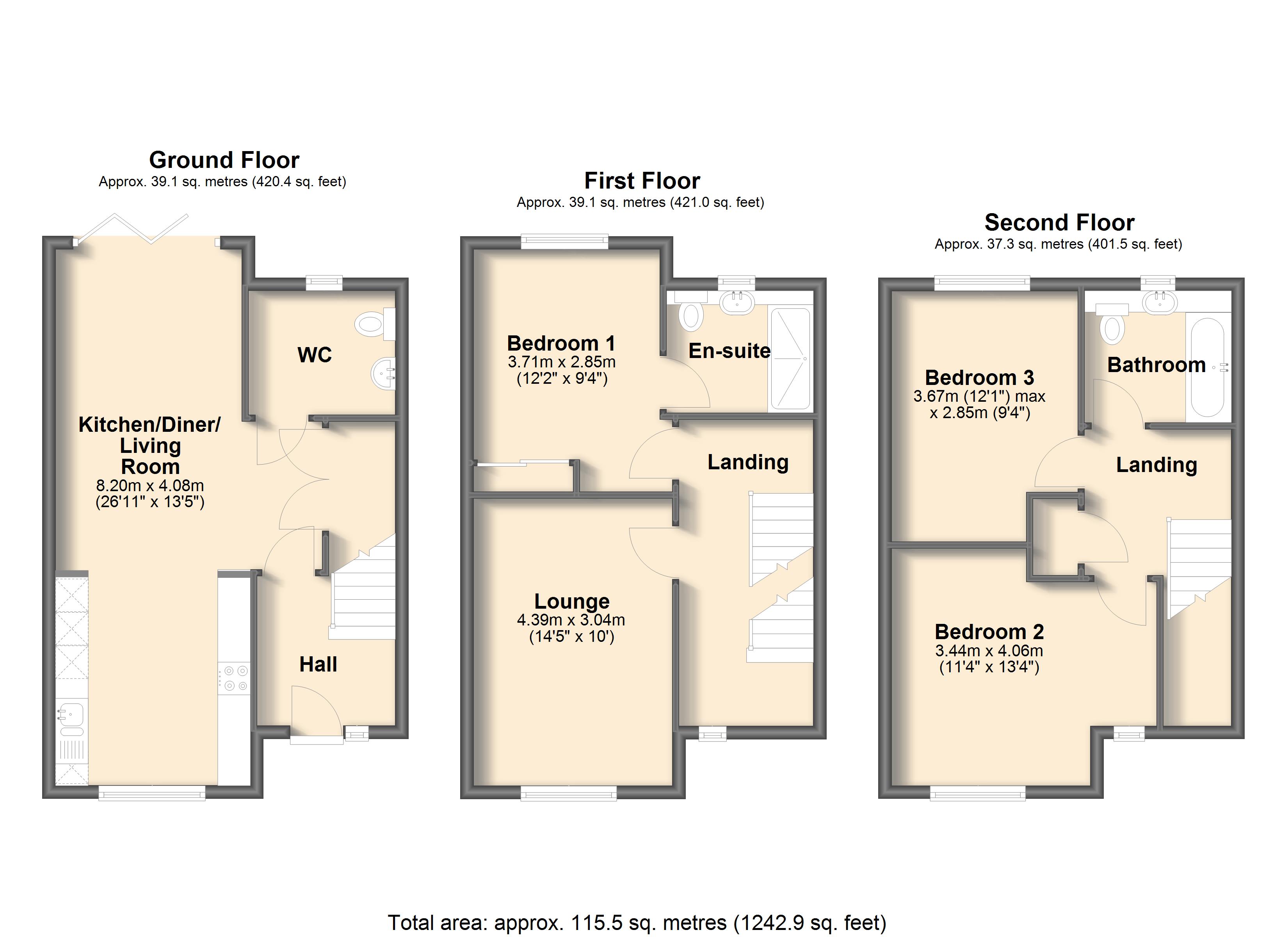 The first floor houses the principal bedroom with an en-suite shower room, while the second floor is serviced by a family bathroom. A downstairs W.C completes the accommodation.