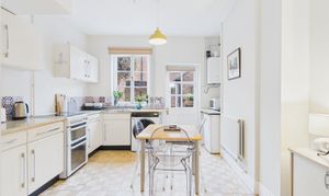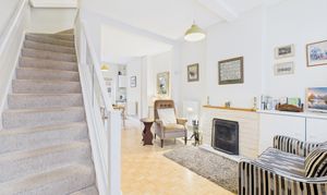The property is entered via a solid wooden front door into a light and airy open-plan living, dining and kitchen space. The living area enjoys an open fireplace which provides a cosy addition to the gas fired central heating system, sash window to the front elevation, and attractive wooden block flooring, which flows seamlessly throughout the ground floor. The kitchen/dining area is fitted with a range of wall, base and drawer units with complementary work surfaces, incorporating sink facilities and space and plumbing for appliances. The Vaillant gas central heating boiler was installed in November 2024 and carries a transferable 10 year warranty. There is a Hive central heating and hot water control system.