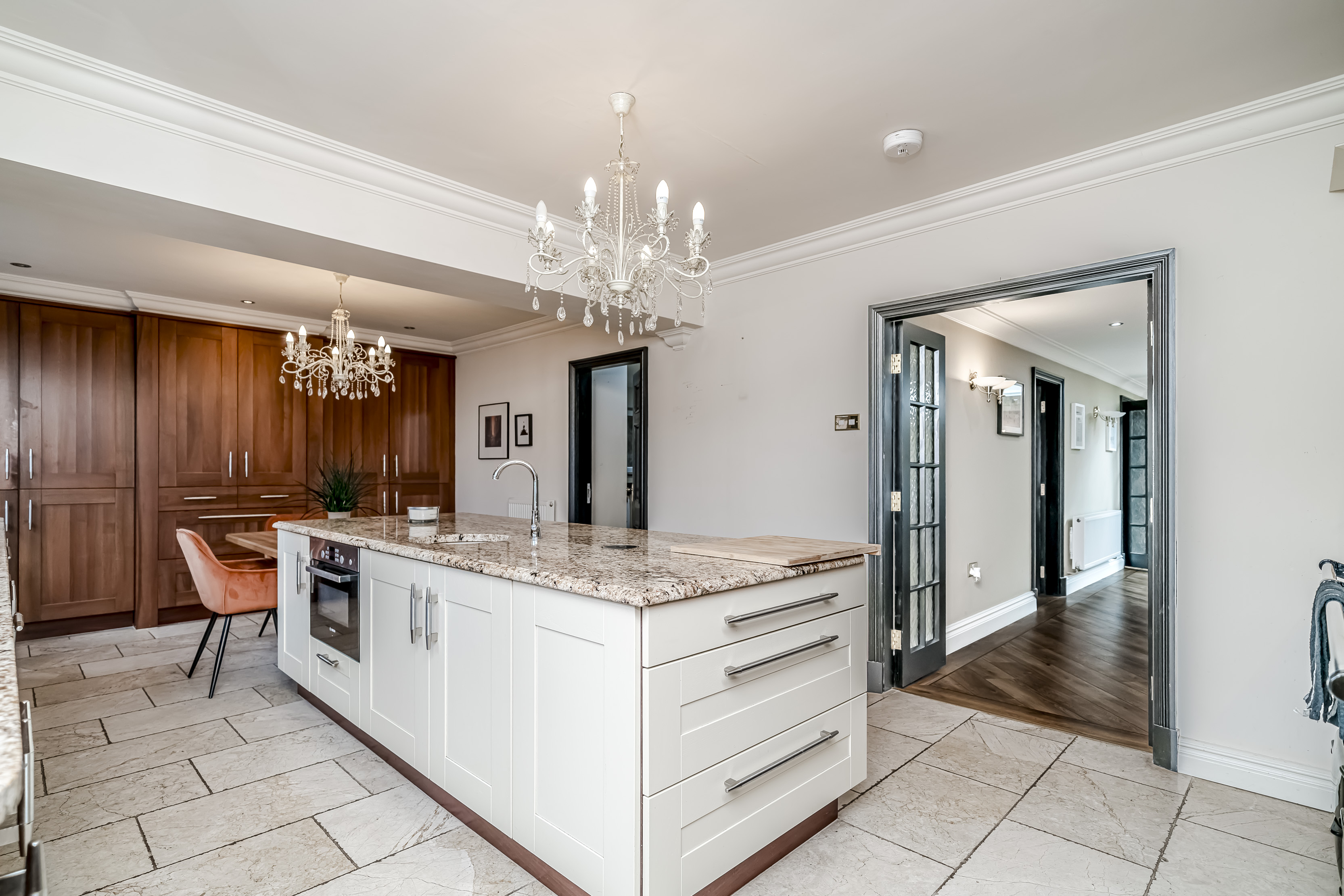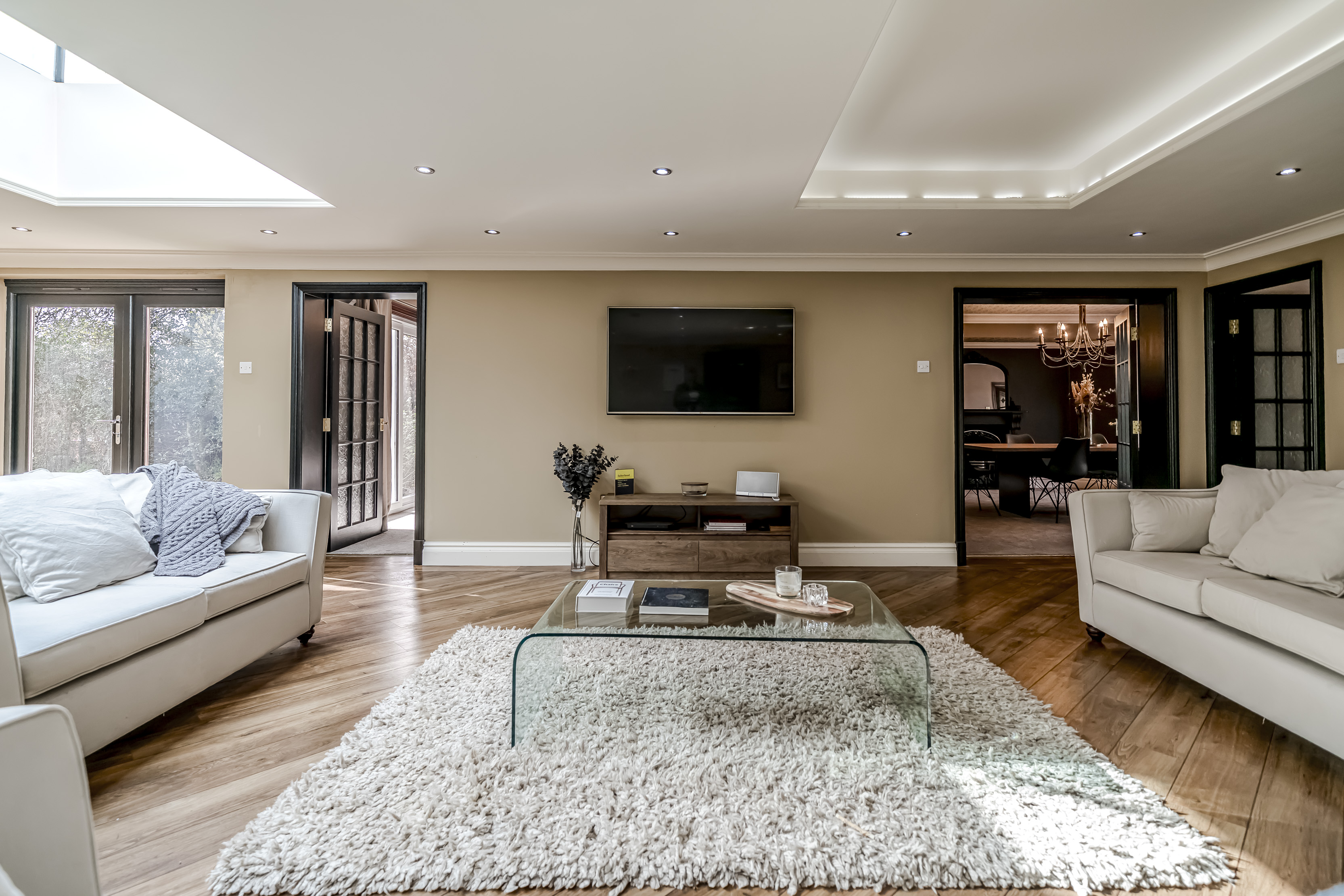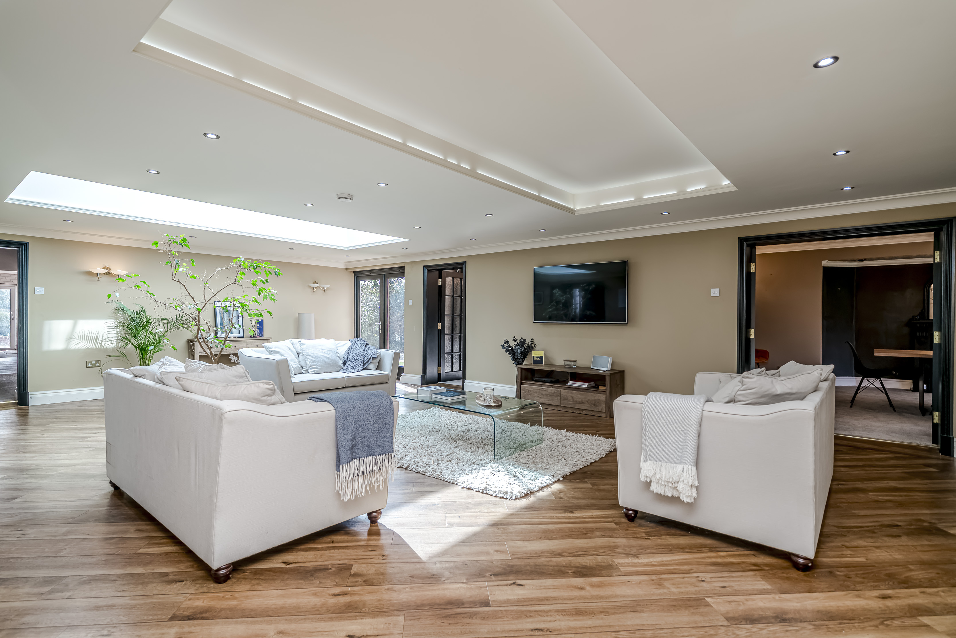 Extending to 5589 square feet, this is a home designed for those seeking both presence and versatility. On entering through the double door entrance and inner lobby you are presented with the double height galleried main hallway, from here, access is provided into the main living spaces. At the heart of the home, lies a magnificent principal living room, a striking central space of superb proportions that provides an immediate sense of openness and occasion. Ideal for both relaxed family living and larger-scale entertaining.