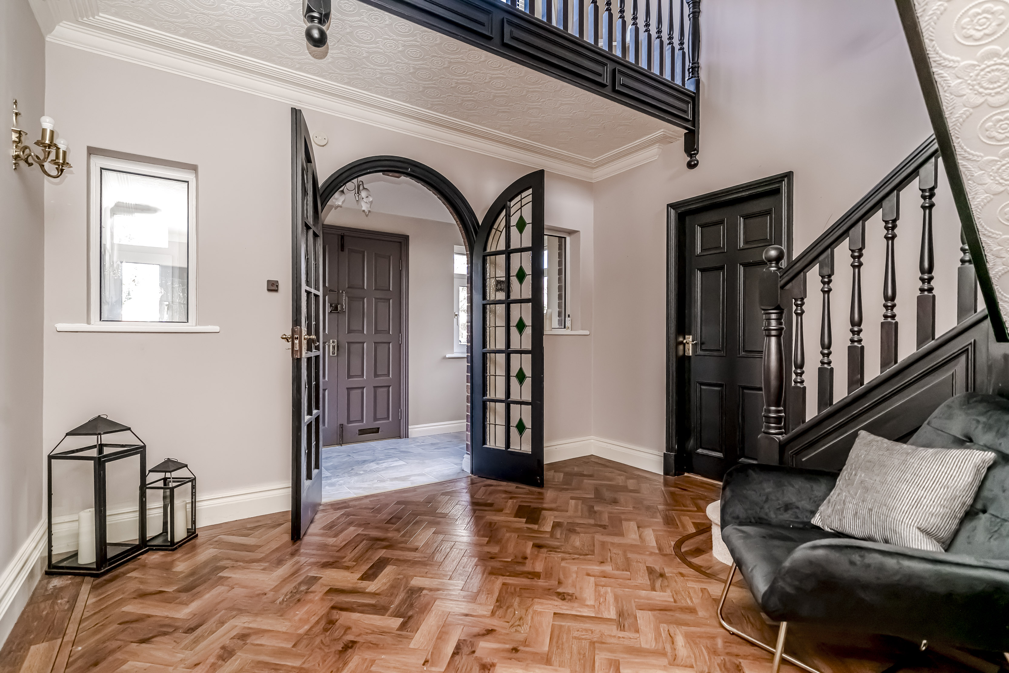 From the moment of arrival, the property conveys a strong sense of stature and privacy. A sweeping driveway leads to an impressive frontage, setting the tone for the accommodation beyond, where elegant proportions, lifestyle-led spaces and practical family living have been combined with success.