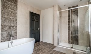 Particularly impressive is the home’s exceptional lifestyle offering. A substantial family/games room creates a superb multi-purpose environment, whilst the dedicated entertainment/bar room adds a rare and distinctive feature, perfectly suited to hosting, celebrations, or simply enjoying the flexibility afforded by such a substantial residence. Accessed from the entertainment zone, there are 2 bedrooms together with a walk in wet room.