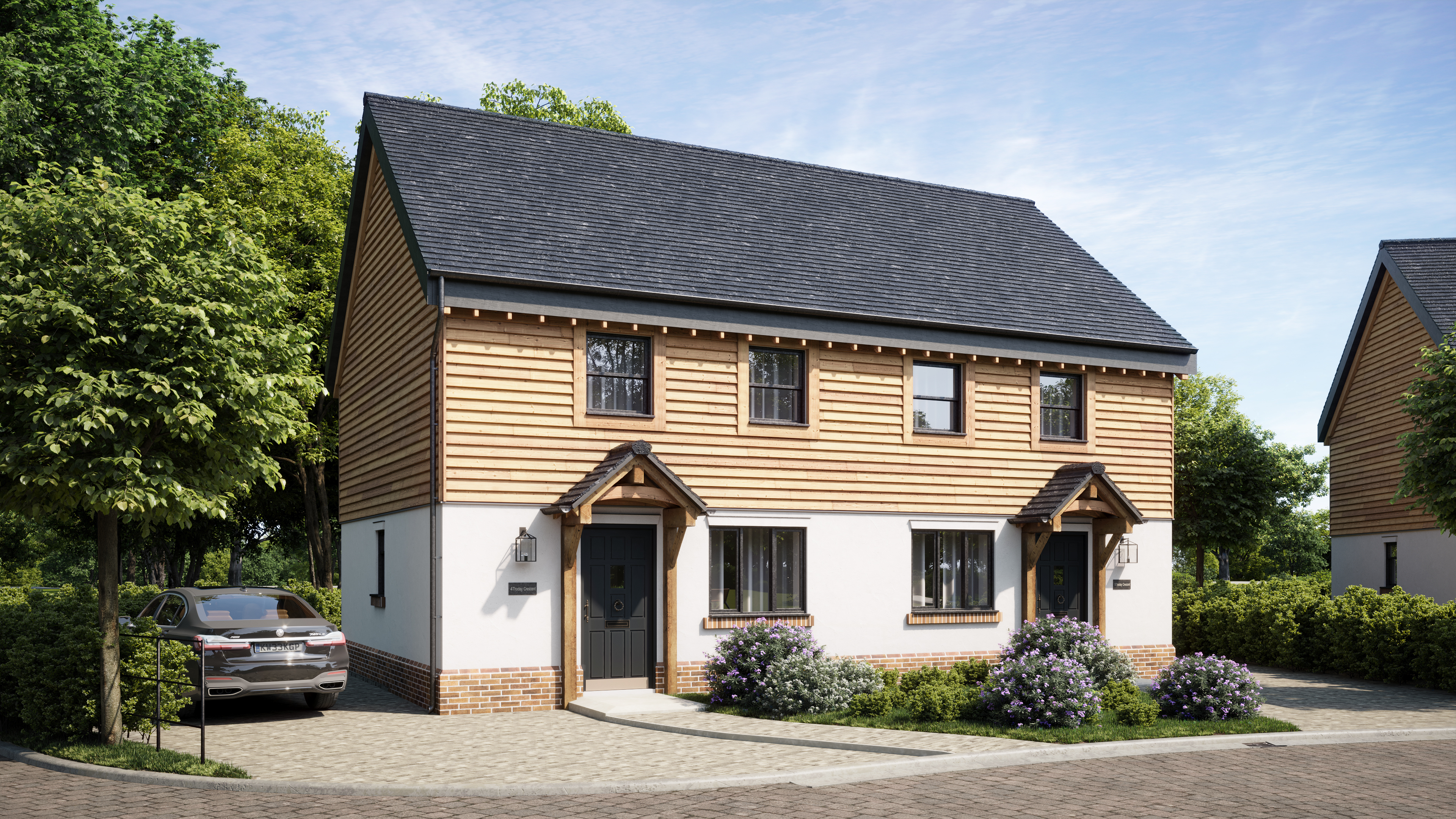Each of the eight residences features a thoughtfully designed modern farmhouse exterior, seamlessly complementing the charm of the surrounding village. A carefully curated blend of brick and cladding enhances the architectural beauty of this exceptional development, centred around a tranquil natural pond. By seamlessly integrating classic farmhouse elements with modern, sustainable living, Thoday Crescent offers residents the perfect balance of a character home with contemporary comforts.
