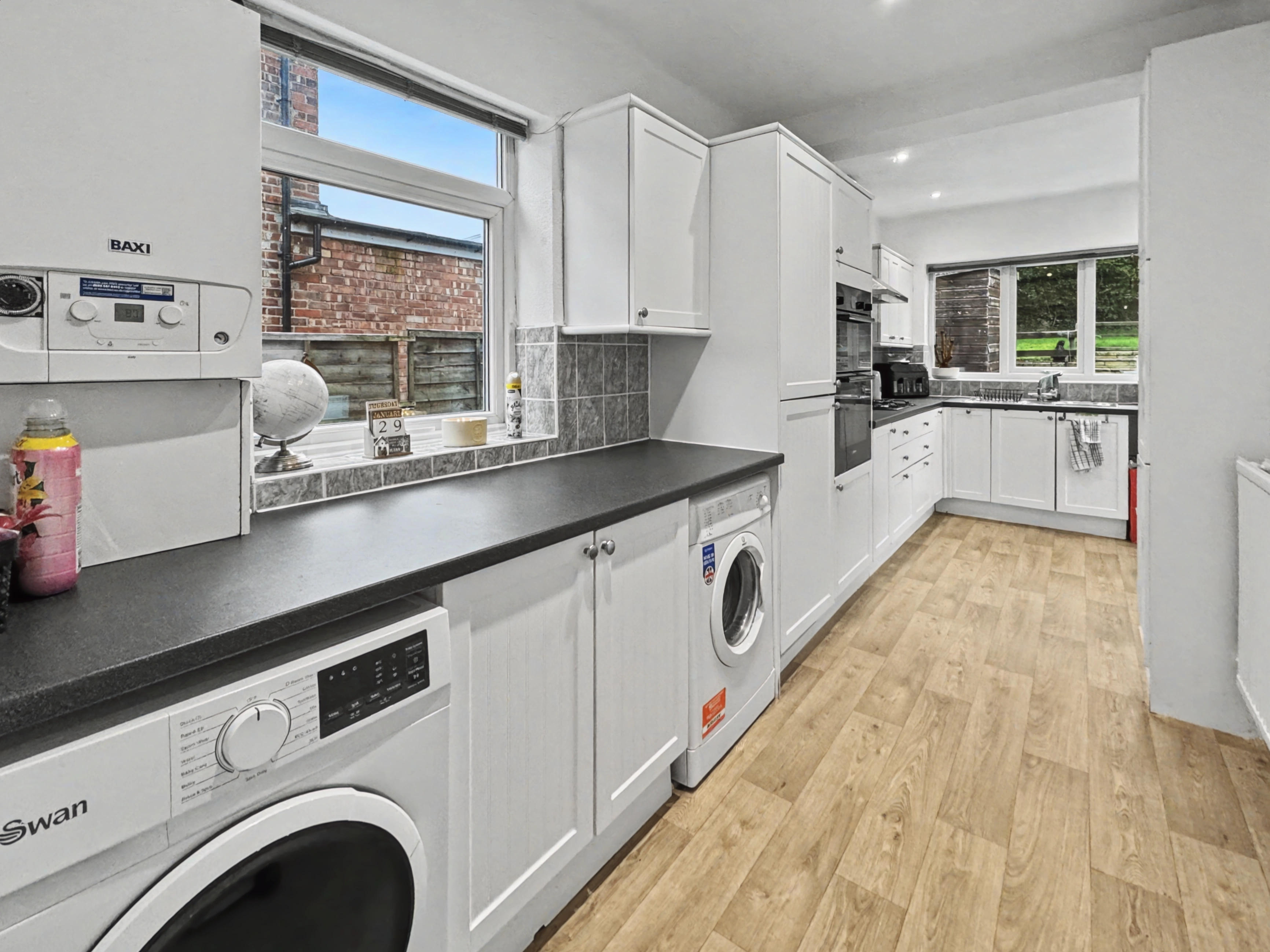 This beautifully extended three-bedroom semi-detached home enjoys open views across the fields of Whitefield and is positioned on one of the area’s most sought-after residential streets. The property offers a stylish and well-balanced layout with a contemporary open-plan feel, making it an ideal choice for modern family living.