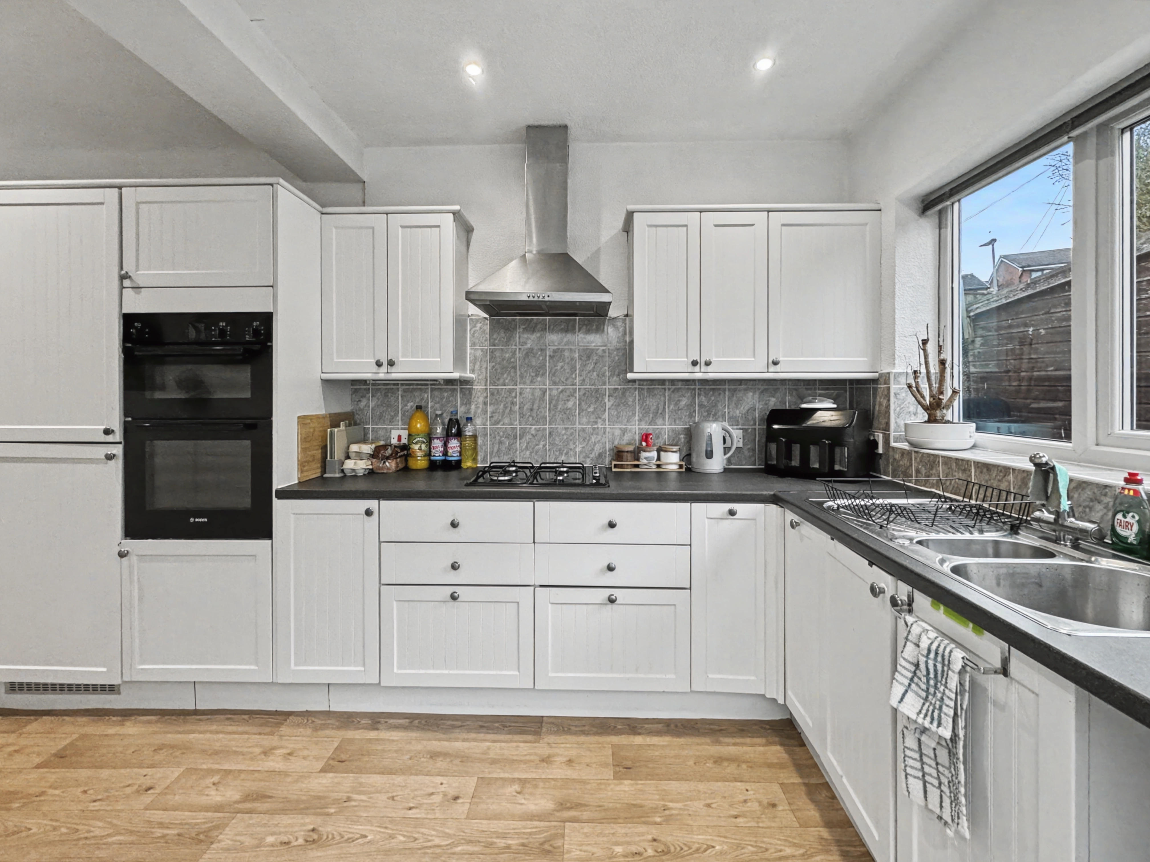 The accommodation has been thoughtfully designed to maximise both space and functionality, featuring a generous rear extension, a large kitchen diner and open plan lounge & dining room that creates a seamless flow of light-filled living space. Further highlights include a downstairs WC, a landscaped rear garden and a driveway providing off-road parking. There is also potential for further extension, subject to the usual planning permissions.