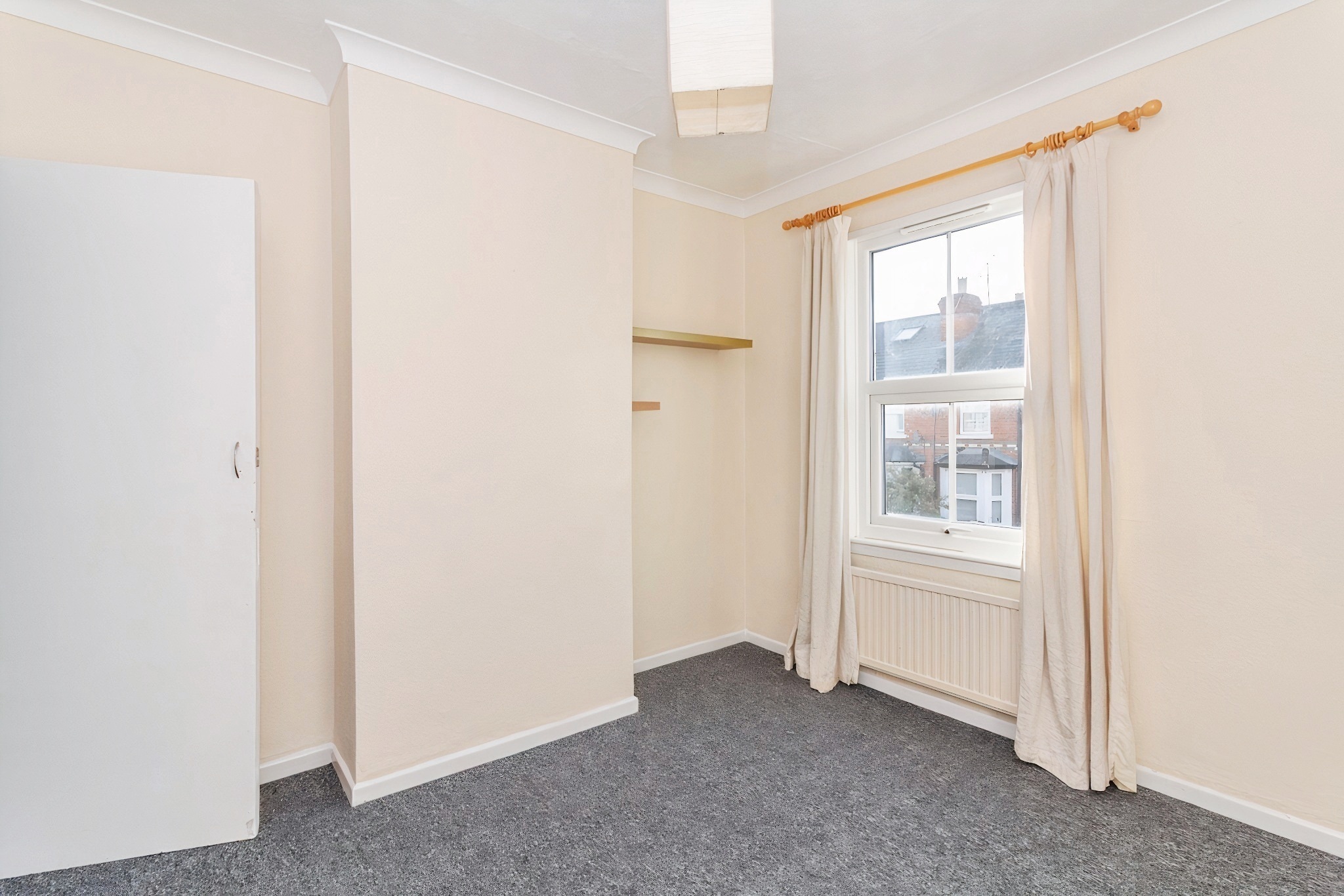 Bedroom 2 is another good-sized double room, positioned at the rear of the property. It features a large window overlooking the garden and neighbouring homes, allowing plenty of natural light into the space. The room includes a built-in wardrobe for convenient storage, along with neutral décor and ample space for bedroom furniture, making it a versatile second bedroom.