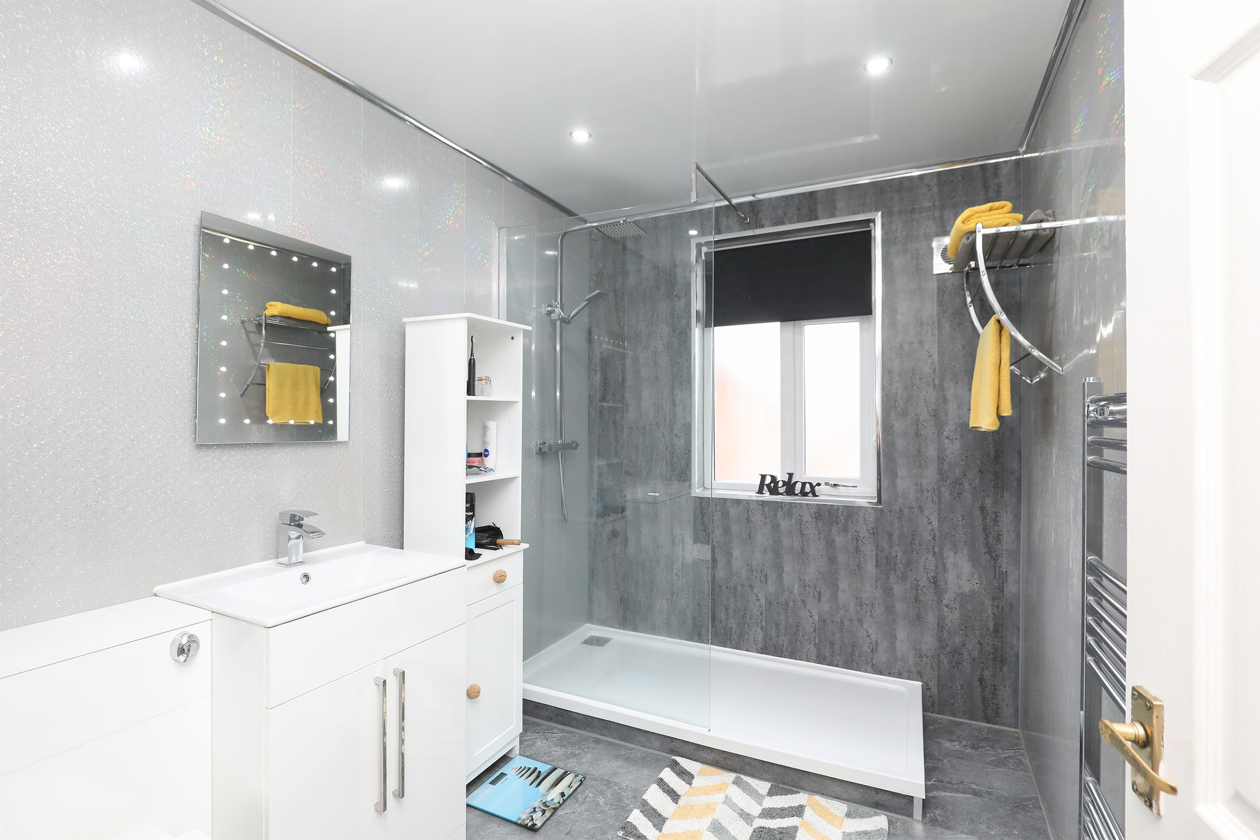 - Contemporary Designed Shower Room With A Three-Piece Suite