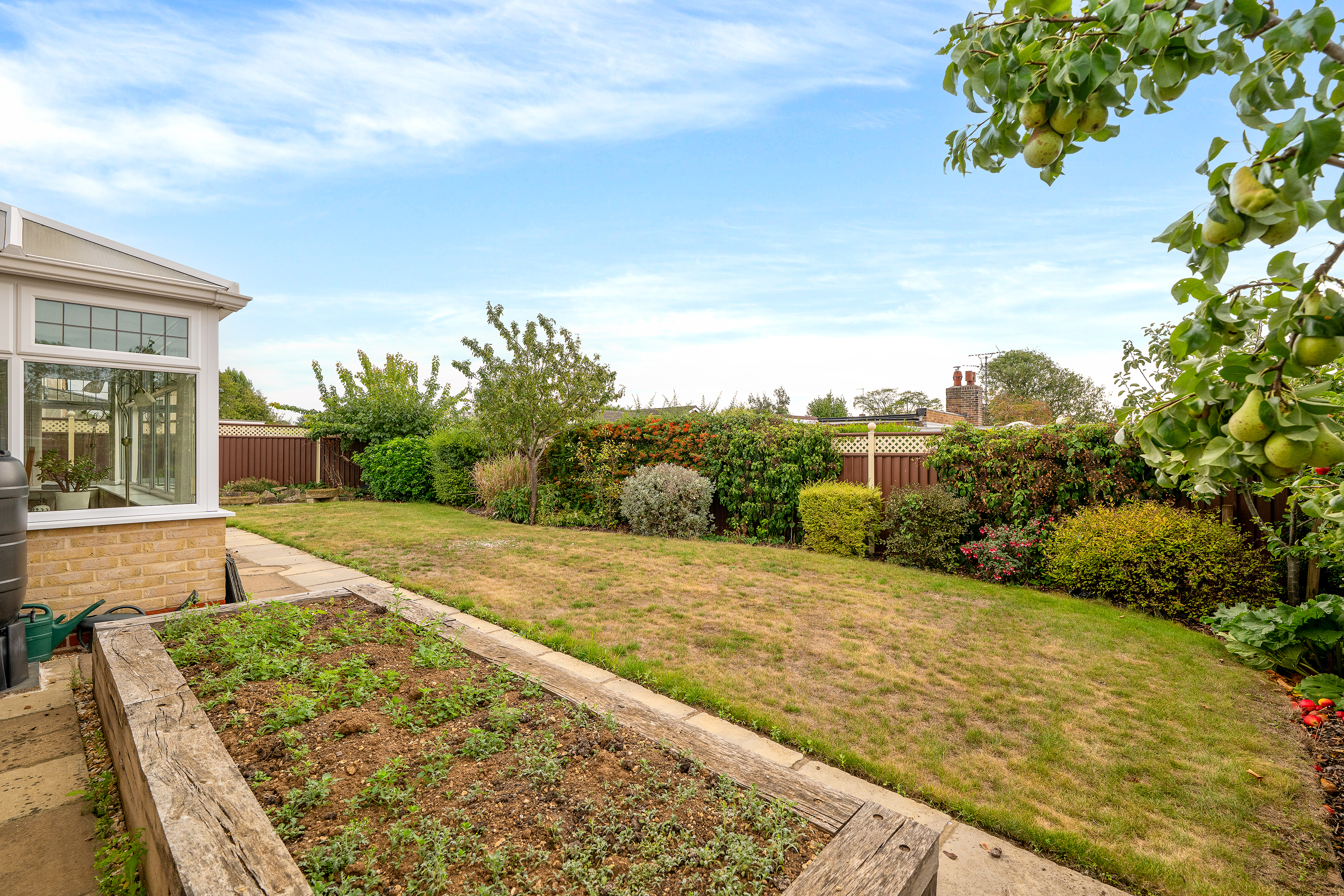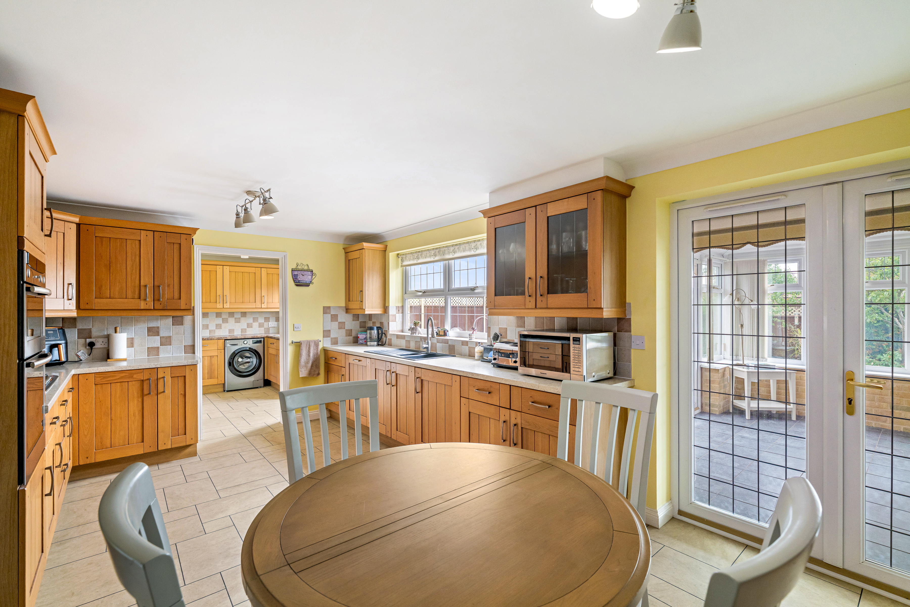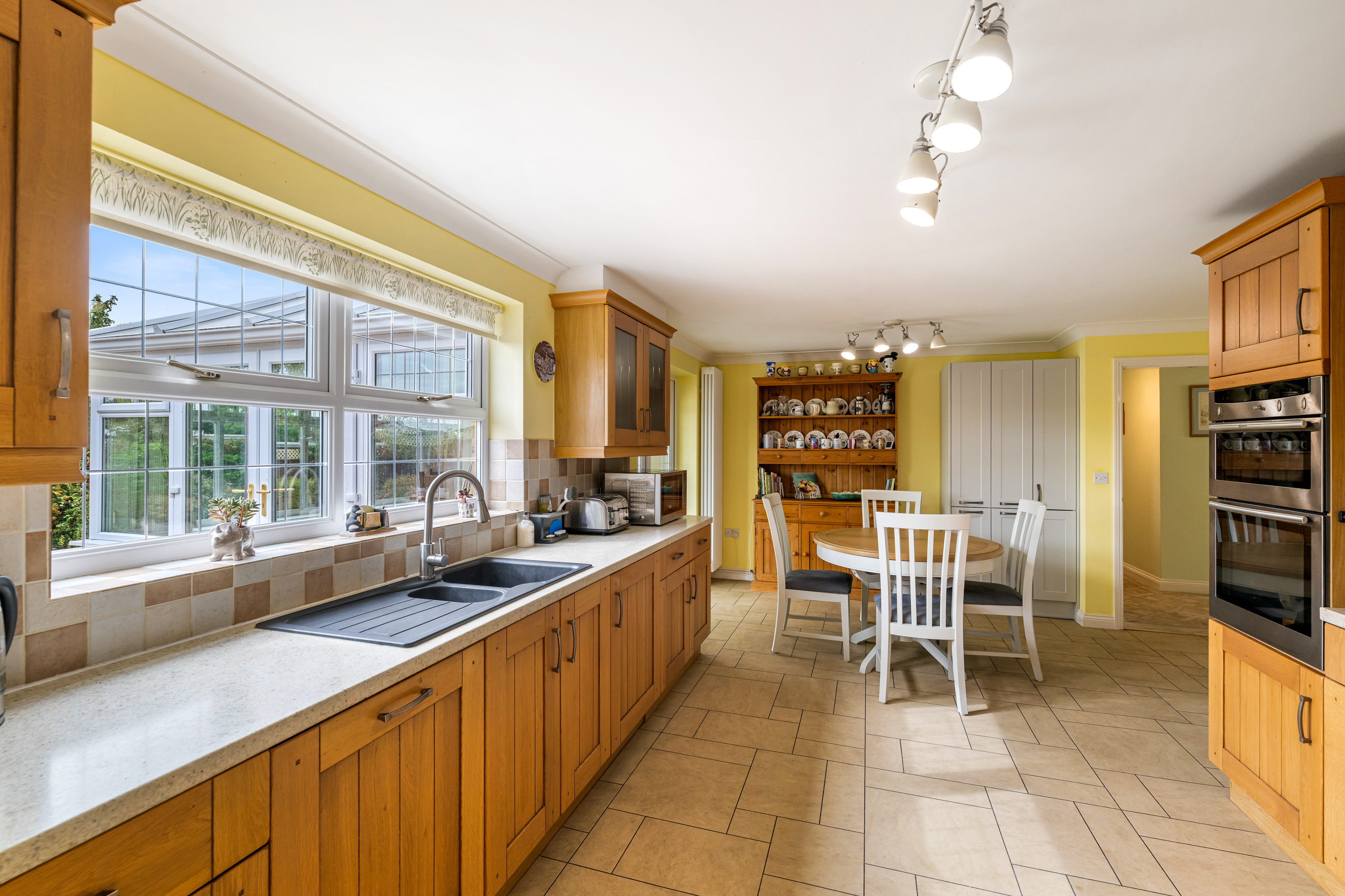 - Open plan kitchen/dining room: Double doors to a bright conservatory, perfect for year-round use
