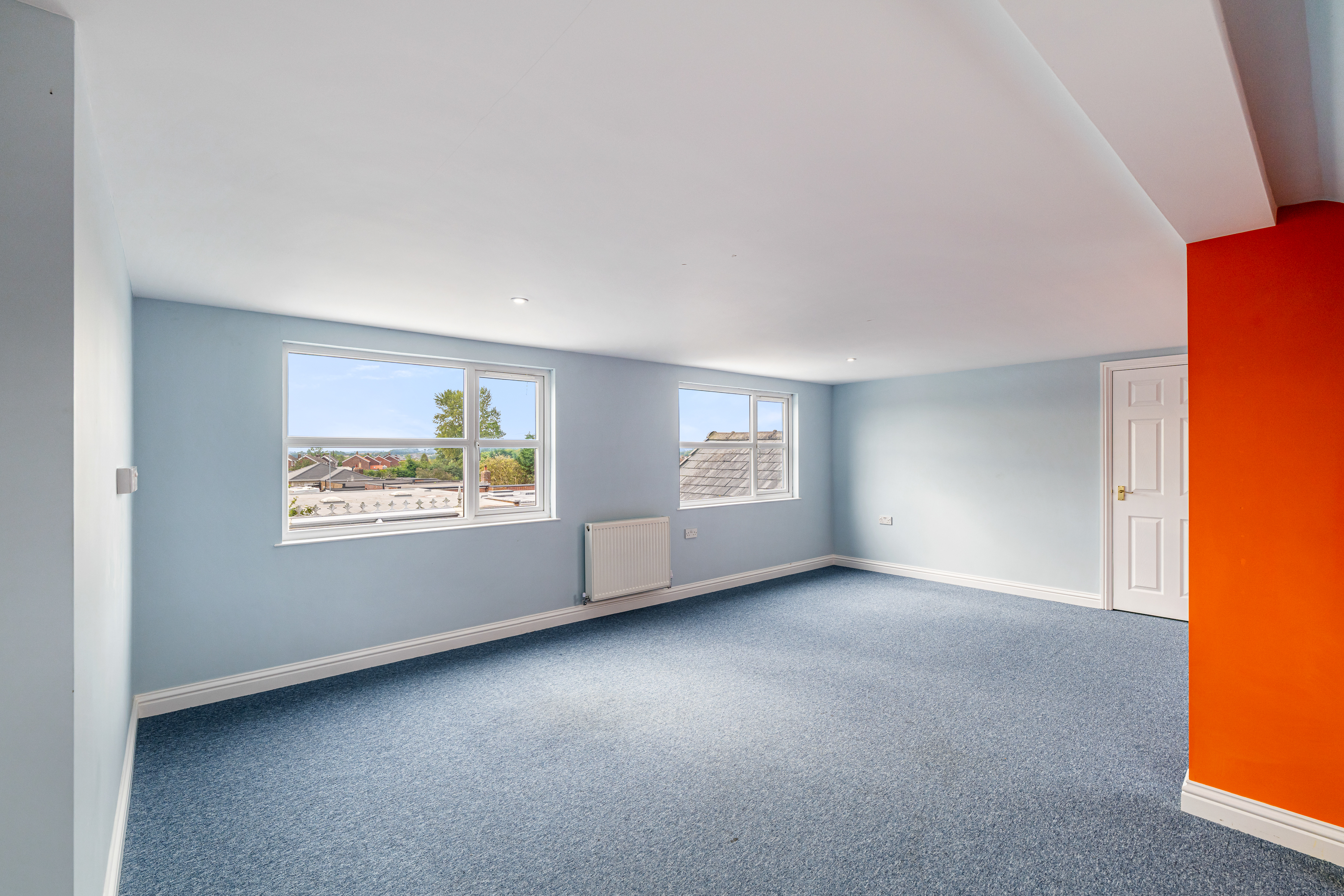 Upstairs, you’ll find a bright master bedroom with an adjoining dressing room, a further bedroom with fitted wardrobes, and a modern shower room for convenience. The layout offers excellent flexibility for family life, guests, or working from home.