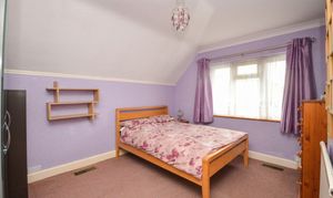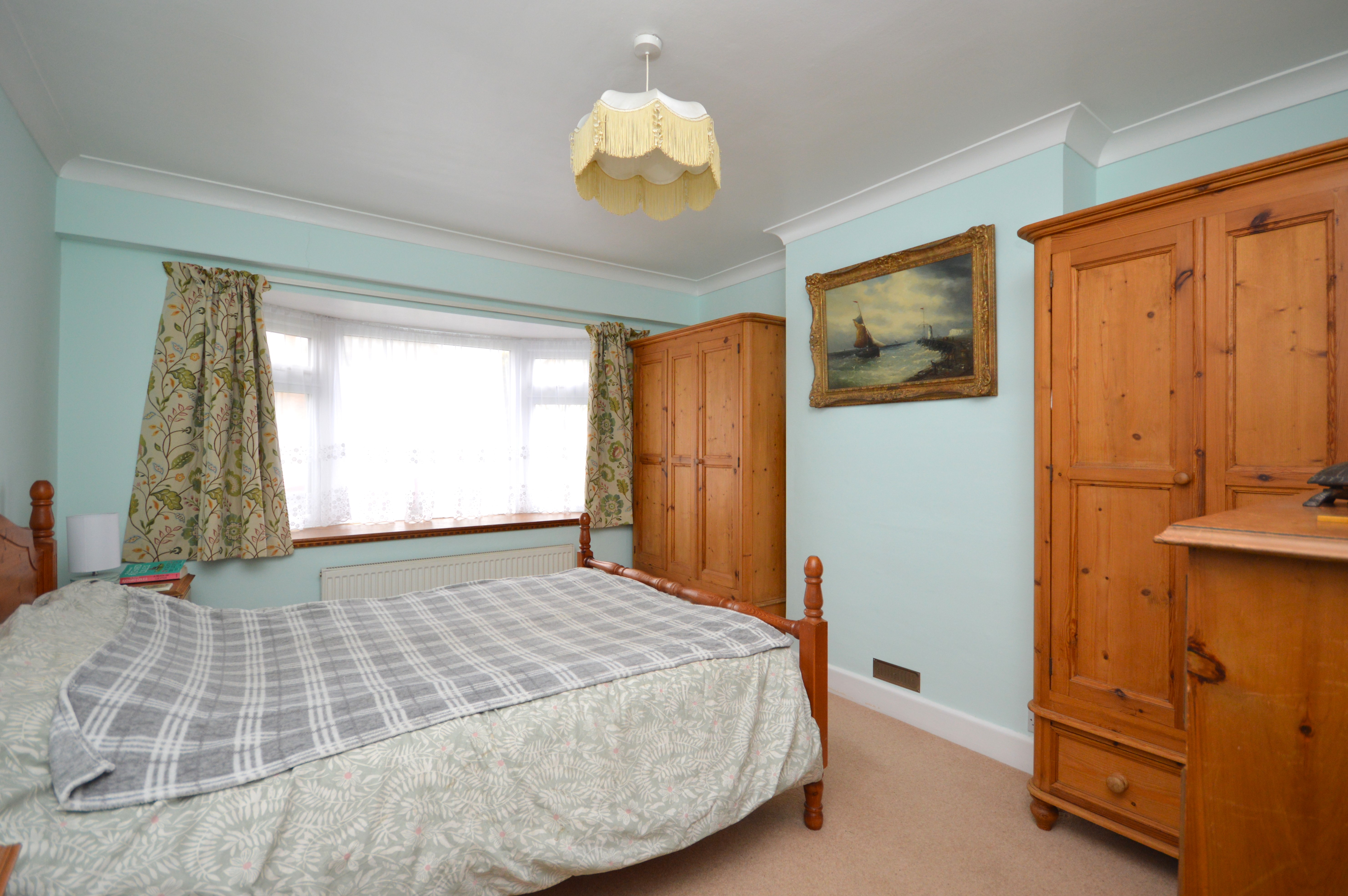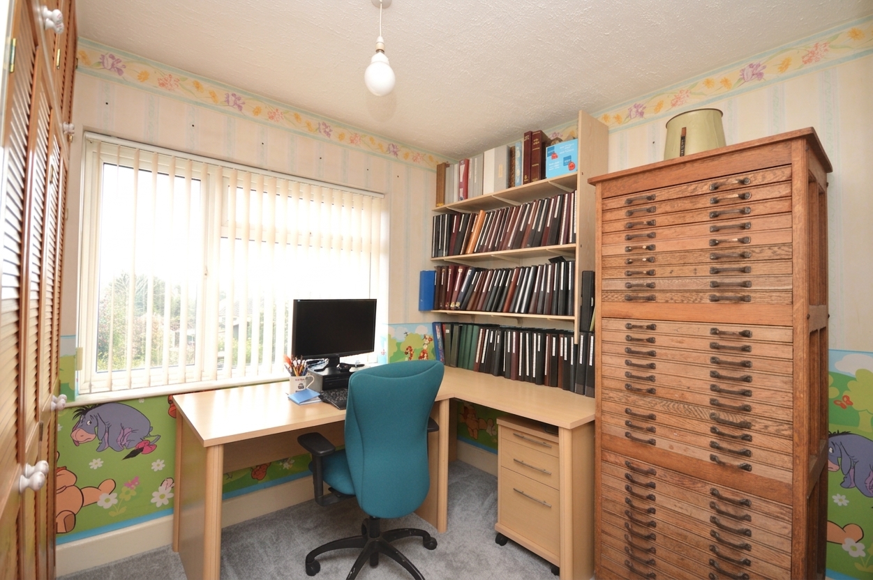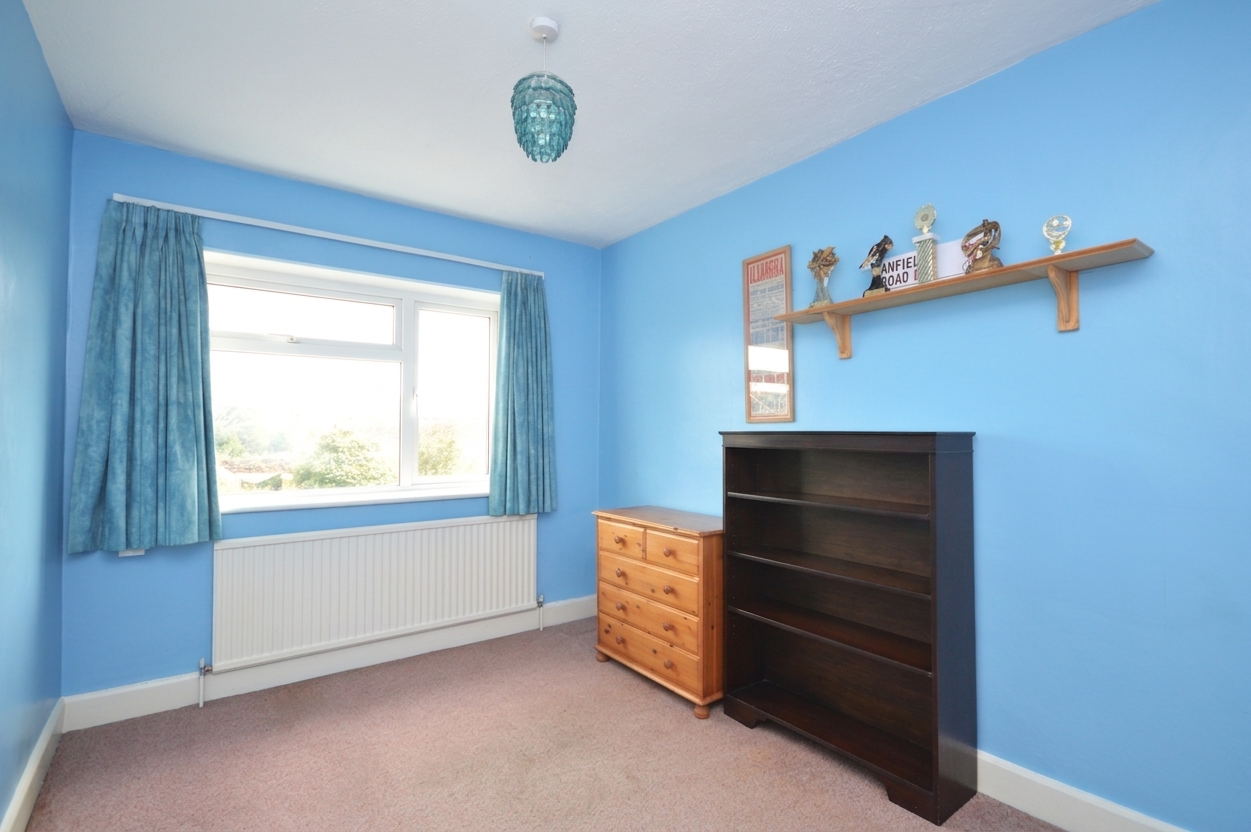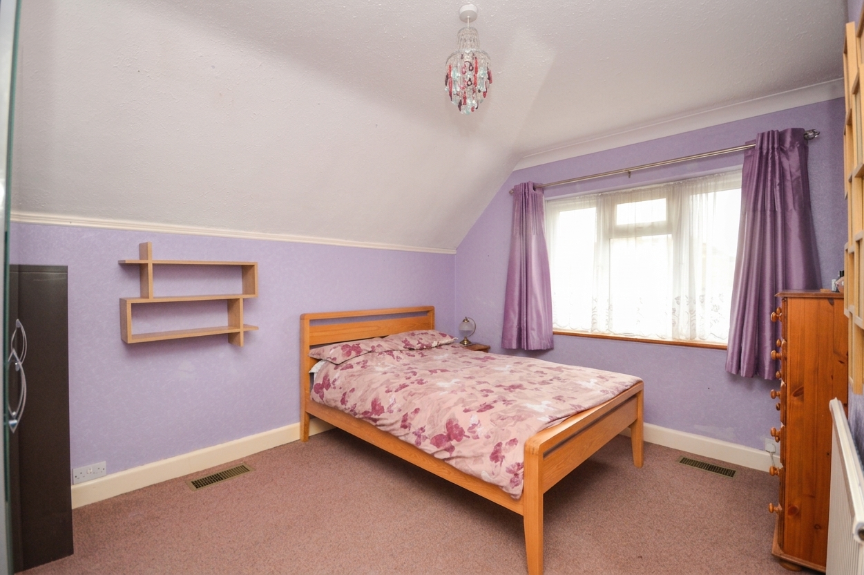 UPVC double glazed window to the rear, overlooking the garden, carpeted floor coverings, a radiator and large built in wardrobes. One of the wardrobes has access into the eves storage.